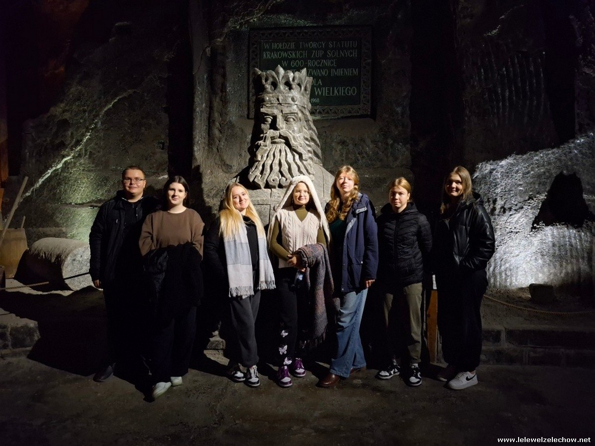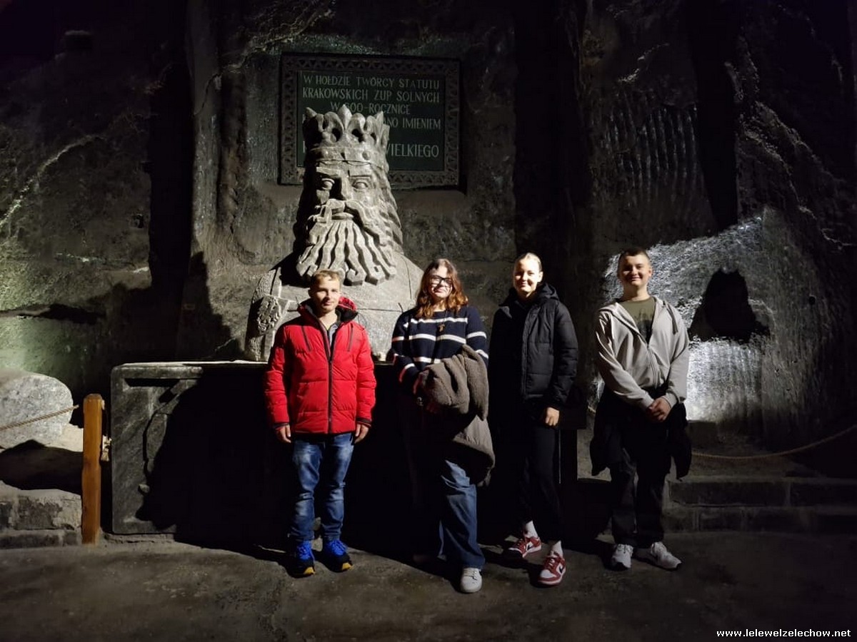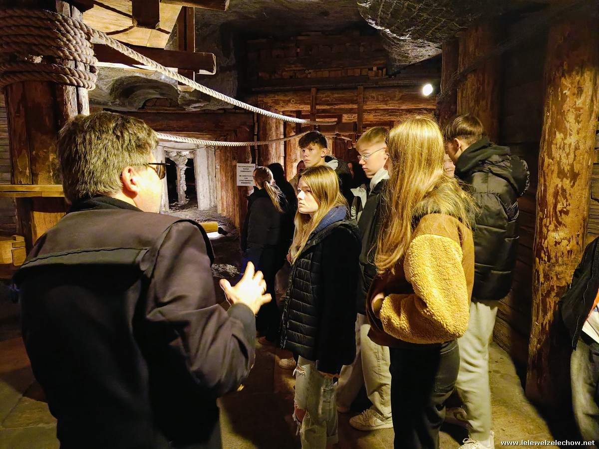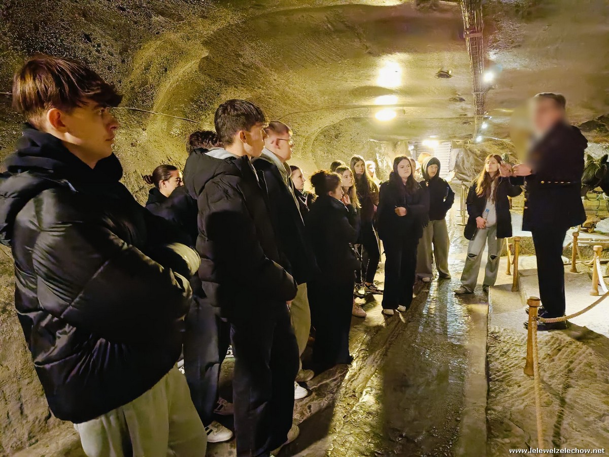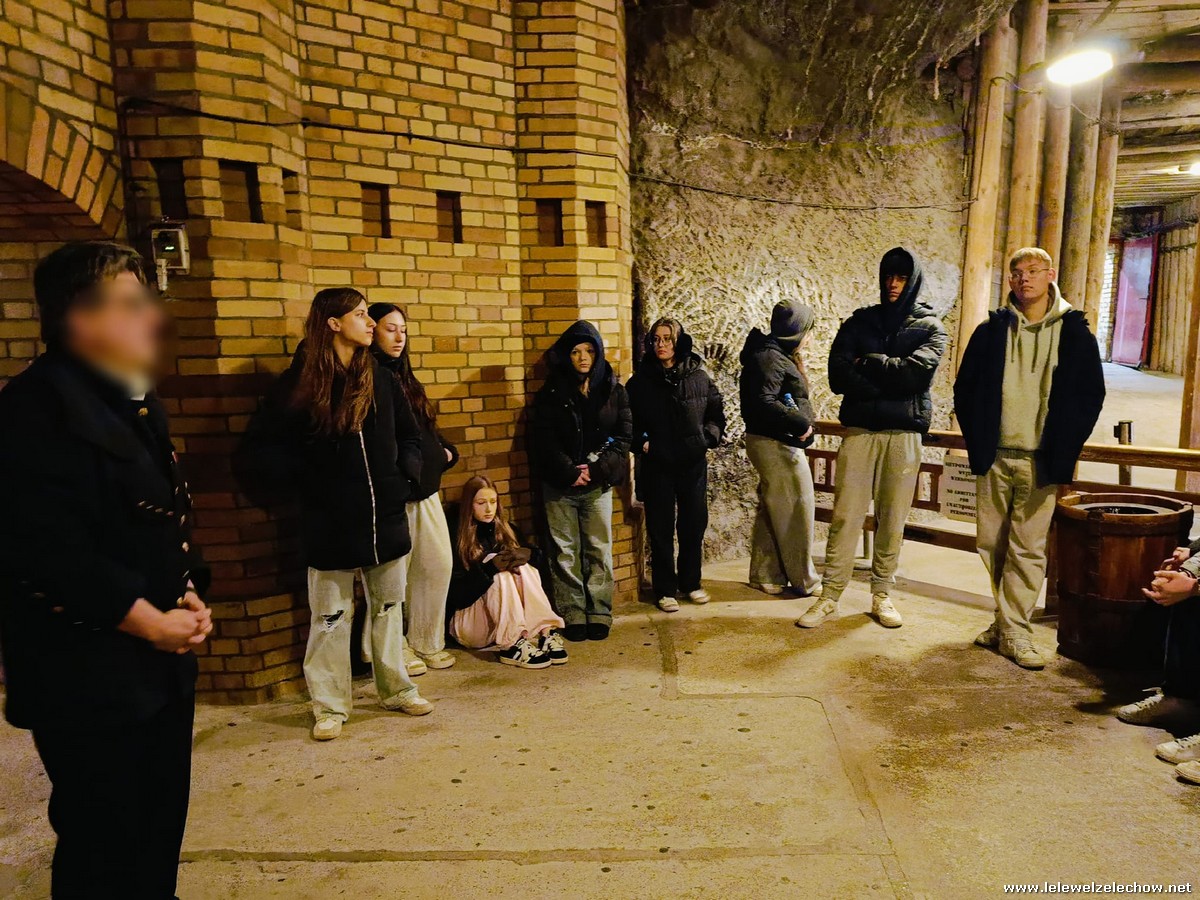 Trzeciego dnia Podróży z klasą trzecioklasiści z Lelewela zwiedzili Kopalnię Soli w Wieliczce, w tym Muzeum Żup Krakowskich. Zeszliśmy po 380 stopniach na poziom pierwszy na głębokość 64 m pod powierzchnią. Po pokonaniu kolejnych 700 stopni znaleźliśmy się na głębokości 135 m i przemierzając kolejne komory, chodniki i jaskinie solankowe poznawaliśmy historię sposobów wydobycia soli na ziemi krakowskiej. Przewodnicy opowiedzieli nam legendę o świętej Kindze, węgierskiej królewnie poślubionej przez księcia Bolesława Wstydliwego. Kinga, pragnąc podarować swym nowym poddanym sól, wrzuciła swój zaręczynowy pierścień do jednego z szybów kopalni, który miał zostać wydobyty wraz z pierwszą bryłką soli na ziemiach polskich. W Wieliczce znajduje się kaplica poświęcona właśnie św. Kindze. Na zakończenie zwiedzania odwiedziliśmy Muzeum Żup Krakowskich z obszerną panoramą miasta Wieliczka.