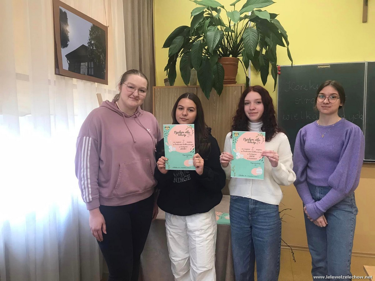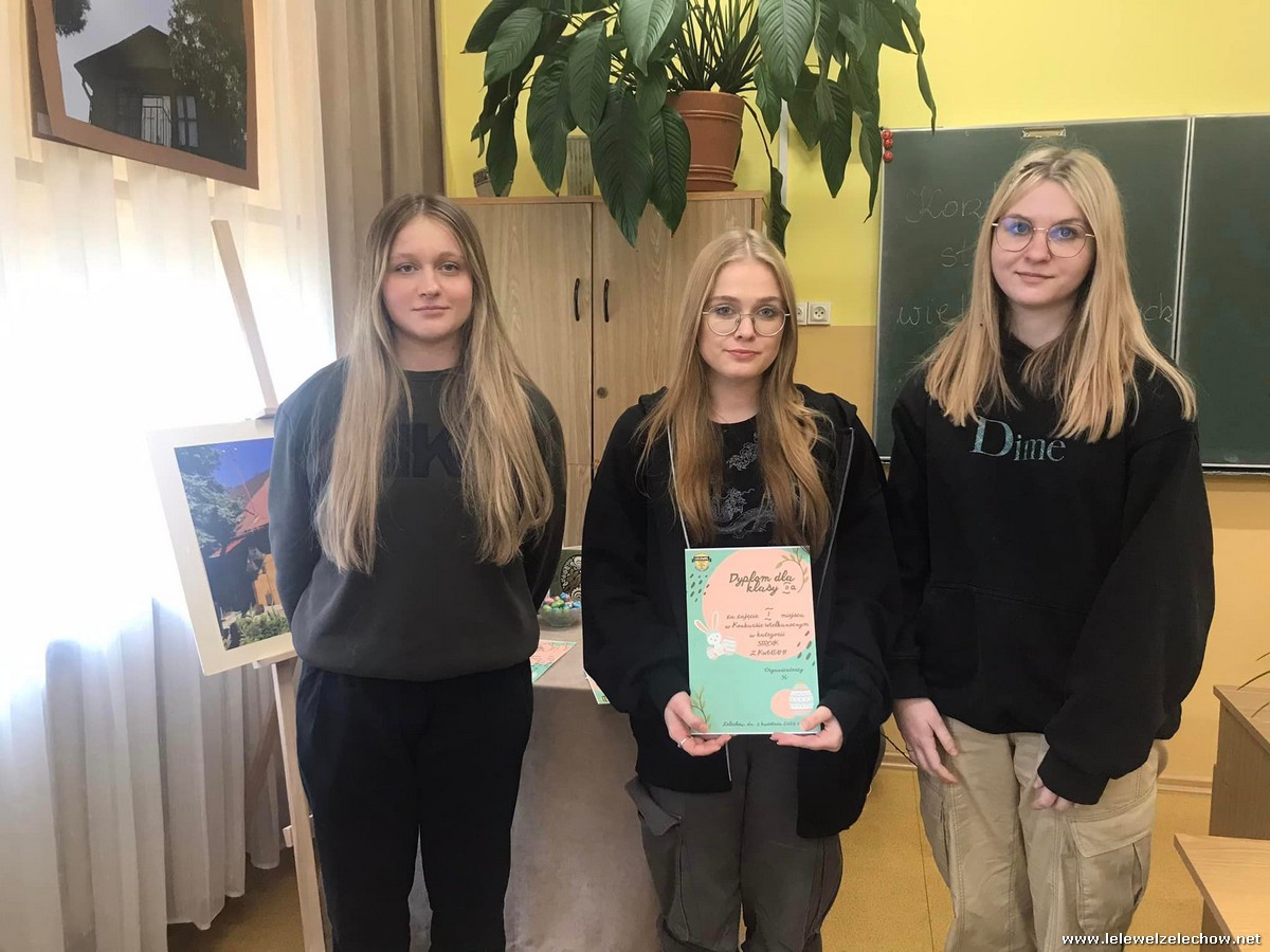 Po zakończeniu konkursu wielkanocnego odbyło się spotkanie Samorządu Uczniowskiego z przedstawicielami klas, którzy uczestniczyli w Konkursie Wielkanocnym. Najlepsi otrzymali dyplomy za wykonane prace , wręczone przez Patrycję i Oliwię- przewodniczącą i wiceprzewodniczącą SU. Uczniowie symbolicznie podzielili się czekoladowymi pisankami i złożyli sobie życzenia wielkanocne.