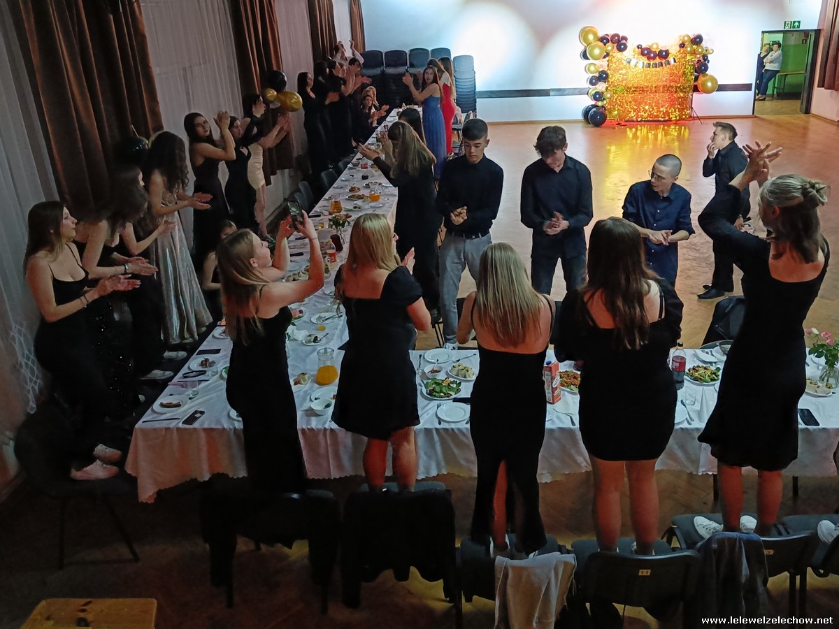 Pięknie ubrani i w doskonałych humorach uczniowie klas drugich zebrali się o godzinie 19, aby wspólną zabawą podkreślić ten ważny moment w ich edukacji. Wspaniałą atmosferę tworzyła muzyka, którą zapewniał Dj Dziaku, a o bezpieczeństwo młodzieży, pyszne jedzenie i dekorację sali zadbali nieocenieni rodzice. W półmetkowej zabawie uczniom towarzyszyły wychowawczynie oraz pani dyrektor. Impreza trwała do godziny 24. Tym radosnym akcentem zakończona została nasza przedłużona (dzięki egzaminom maturalnym) przerwa majowa. Teraz drugoklasiści oczekują na kolejny ważny bal w ich życiu – studniówkę - która już za niecałe 2 lata.