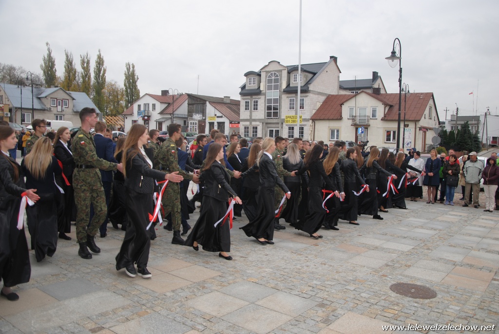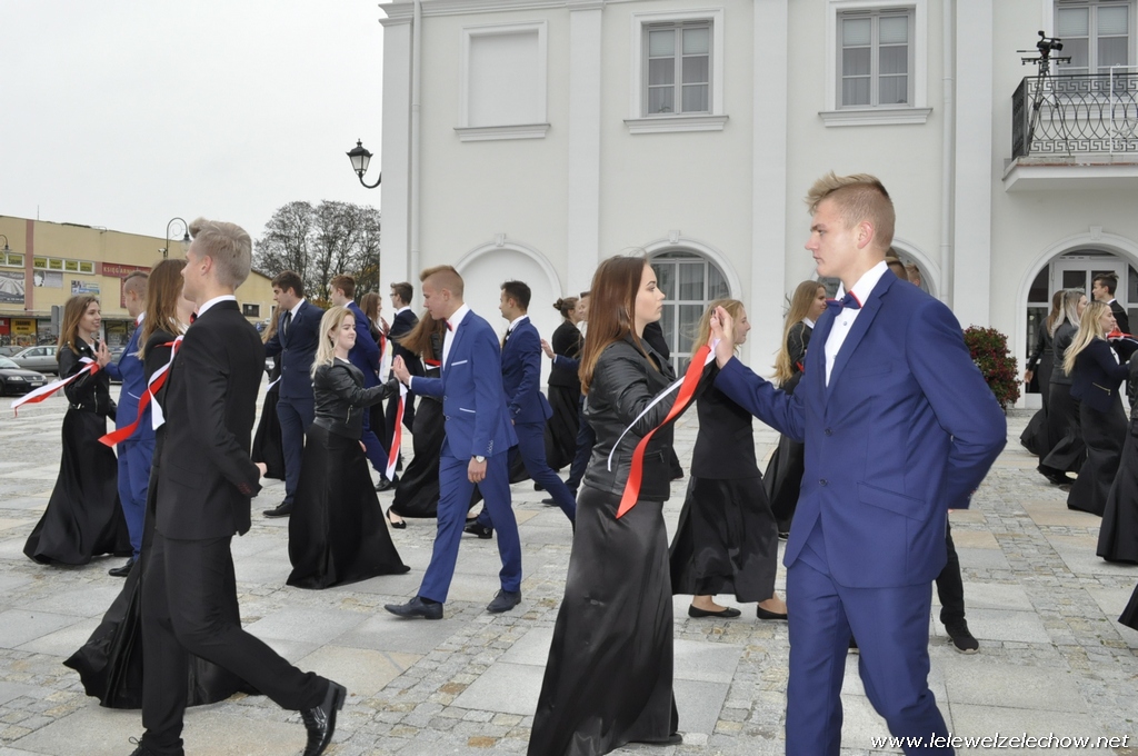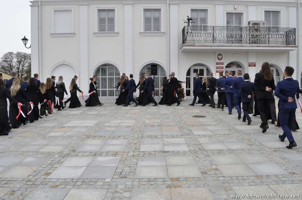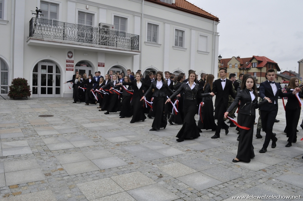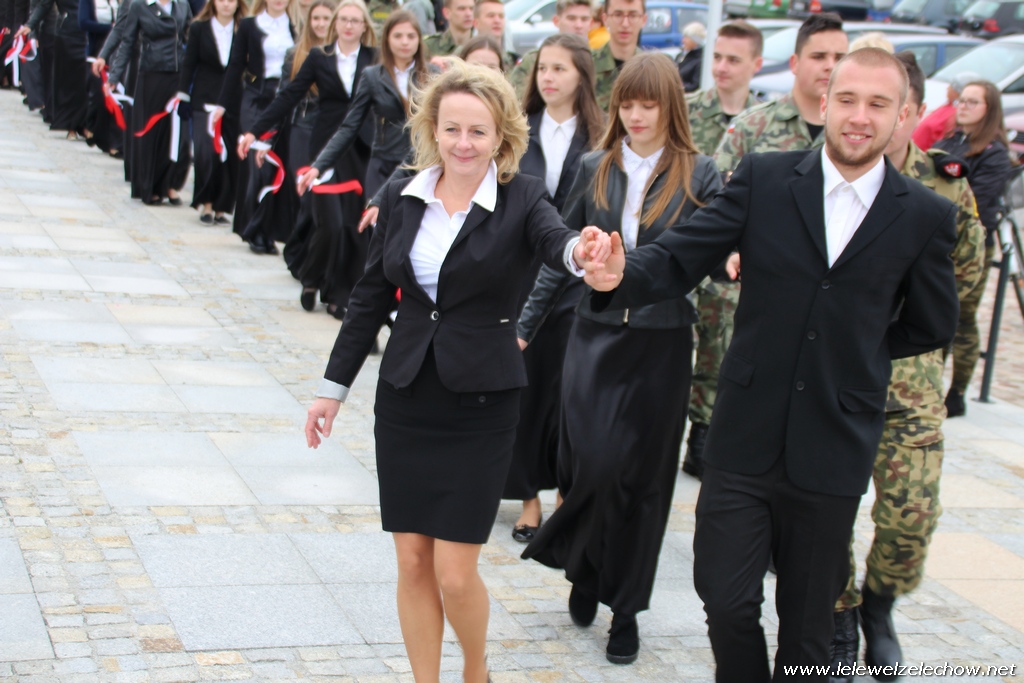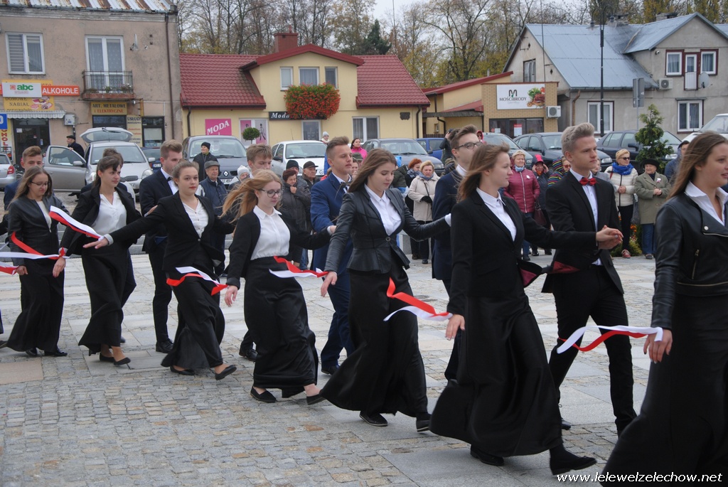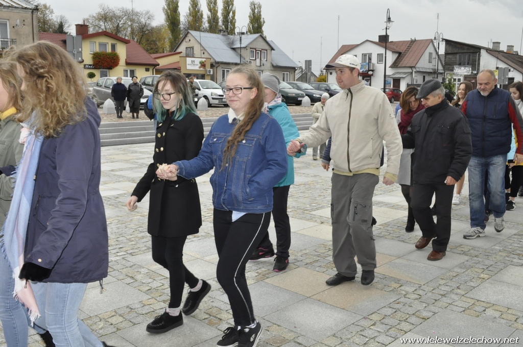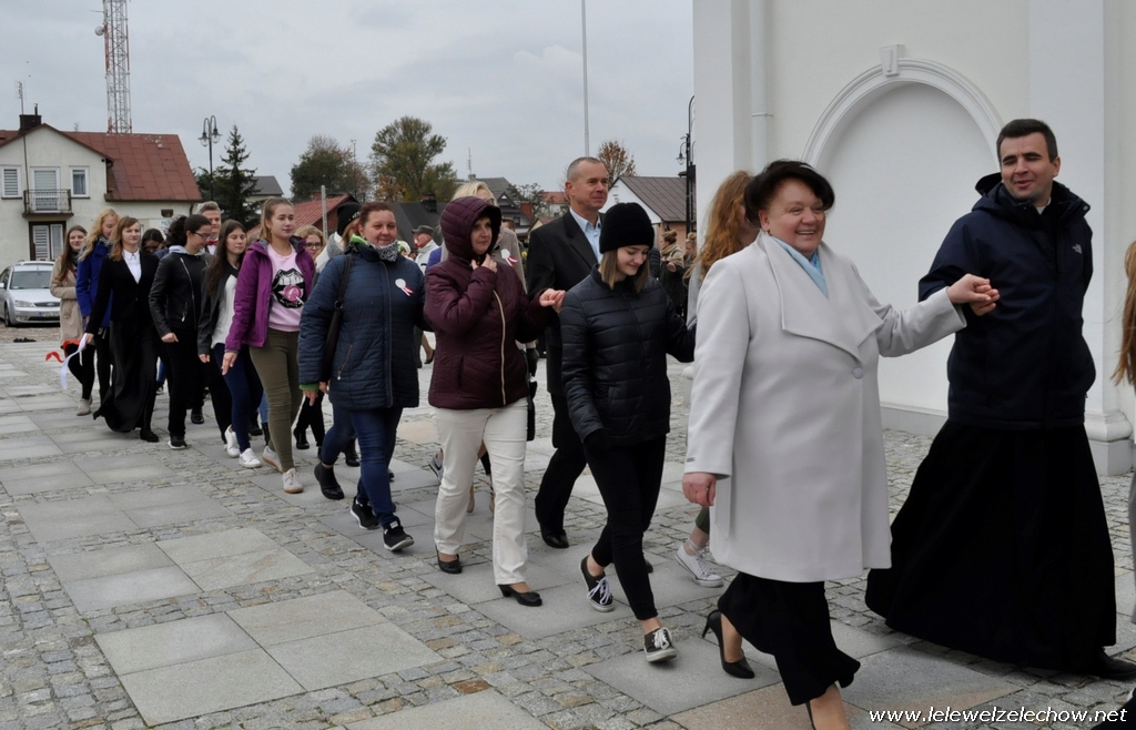 Po zaprezentowaniu układu tanecznego wszyscy zgromadzeni,pod kierunkiem pani Joanny Włodarczyk, ruszyli w uroczystym korowodzie wokół ratusza. Wśród uczestników byli: dzieci i młodzież żelechowskich szkół wraz z nauczycielami, licznie zgromadzeni rodzice, nauczyciele – emeryci,uczestnicy Warsztatów Terapii Zajęciowej oraz mieszkańcy Żelechowa i okolic.