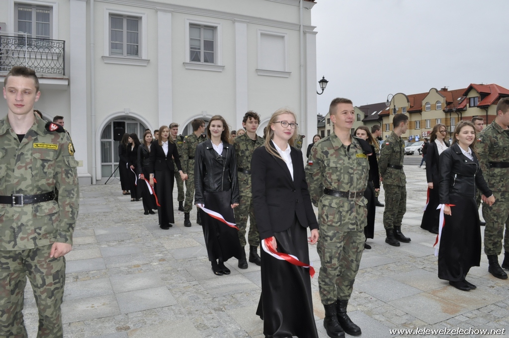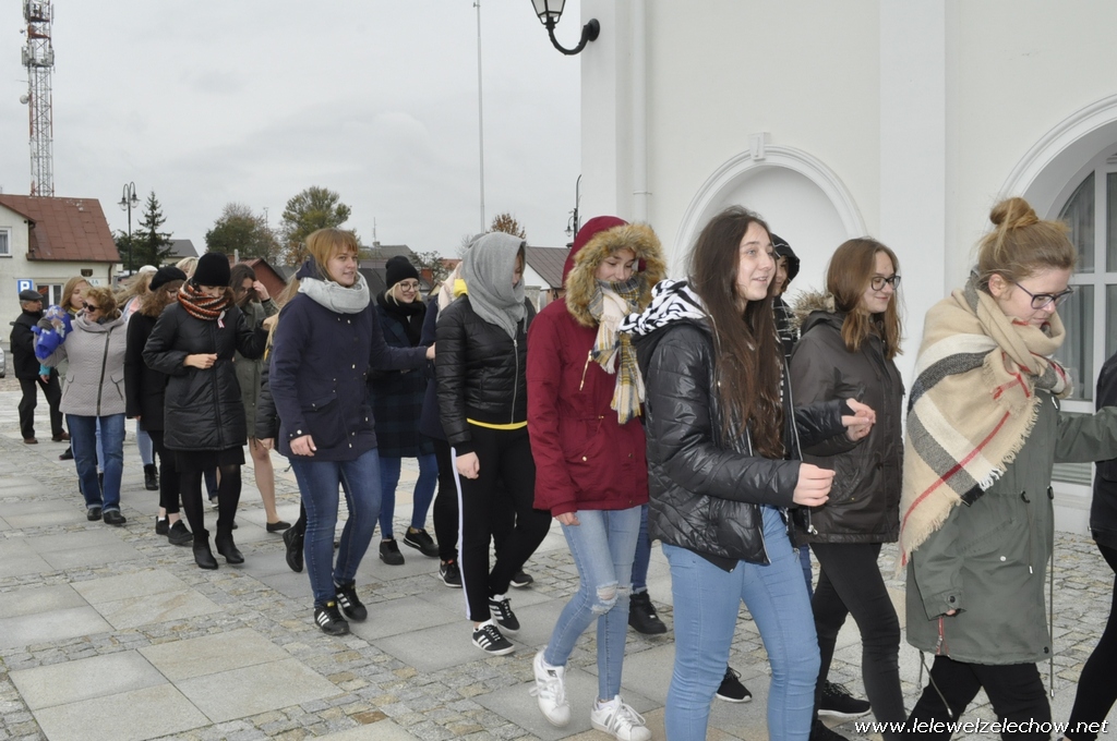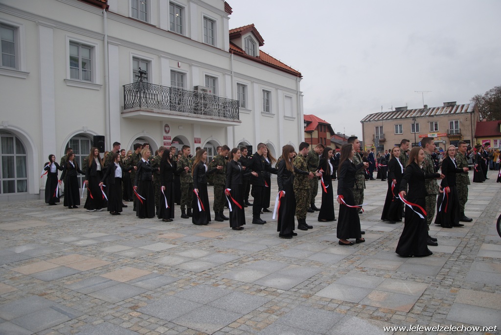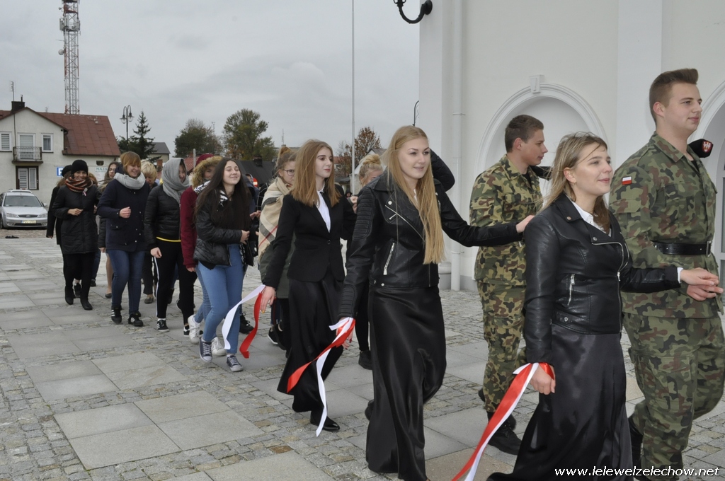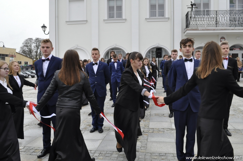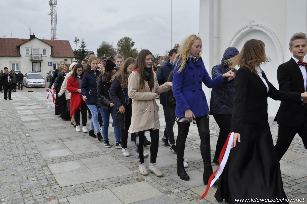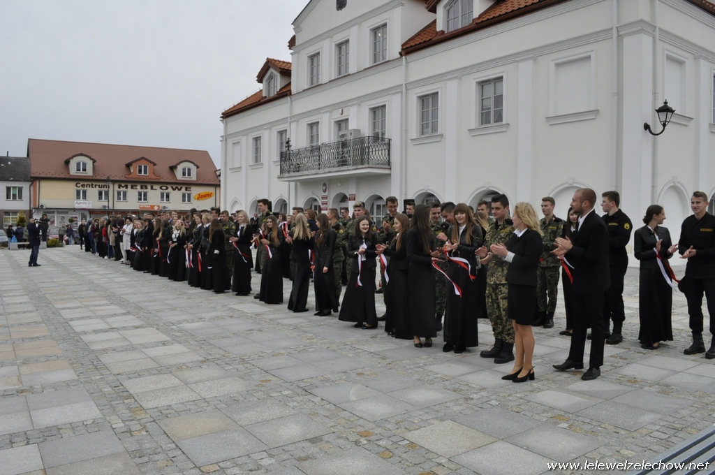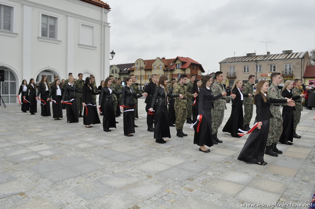 Po zaprezentowaniu układu tanecznego wszyscy zgromadzeni,pod kierunkiem pani Joanny Włodarczyk, ruszyli w uroczystym korowodzie wokół ratusza. Wśród uczestników byli: dzieci i młodzież żelechowskich szkół wraz z nauczycielami, licznie zgromadzeni rodzice, nauczyciele – emeryci,uczestnicy Warsztatów Terapii Zajęciowej oraz mieszkańcy Żelechowa i okolic.