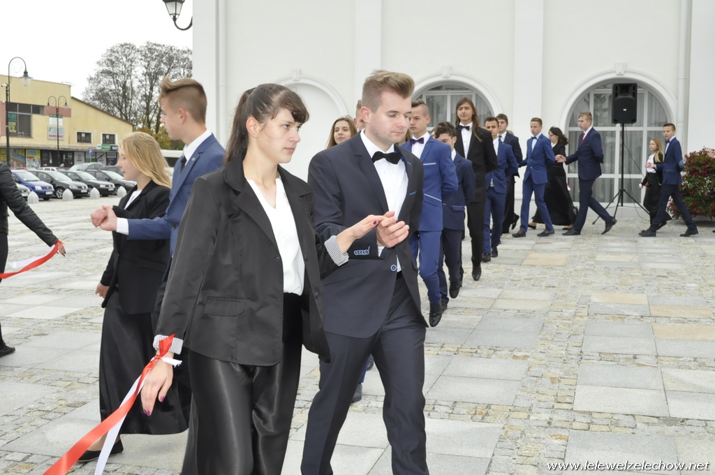 Pani Sylwia Tomaszek poprosiła panią Dyrektor oraz zaproszonych Gości do rozpoczęcia poloneza: panią Mirosławę Miszkurkę Burmistrz Żelechowa, pana Grzegorza Szymczaka dyrektora ZSP, panią Elżbietę Odalską dyrektor Szkoły Podstawowej.