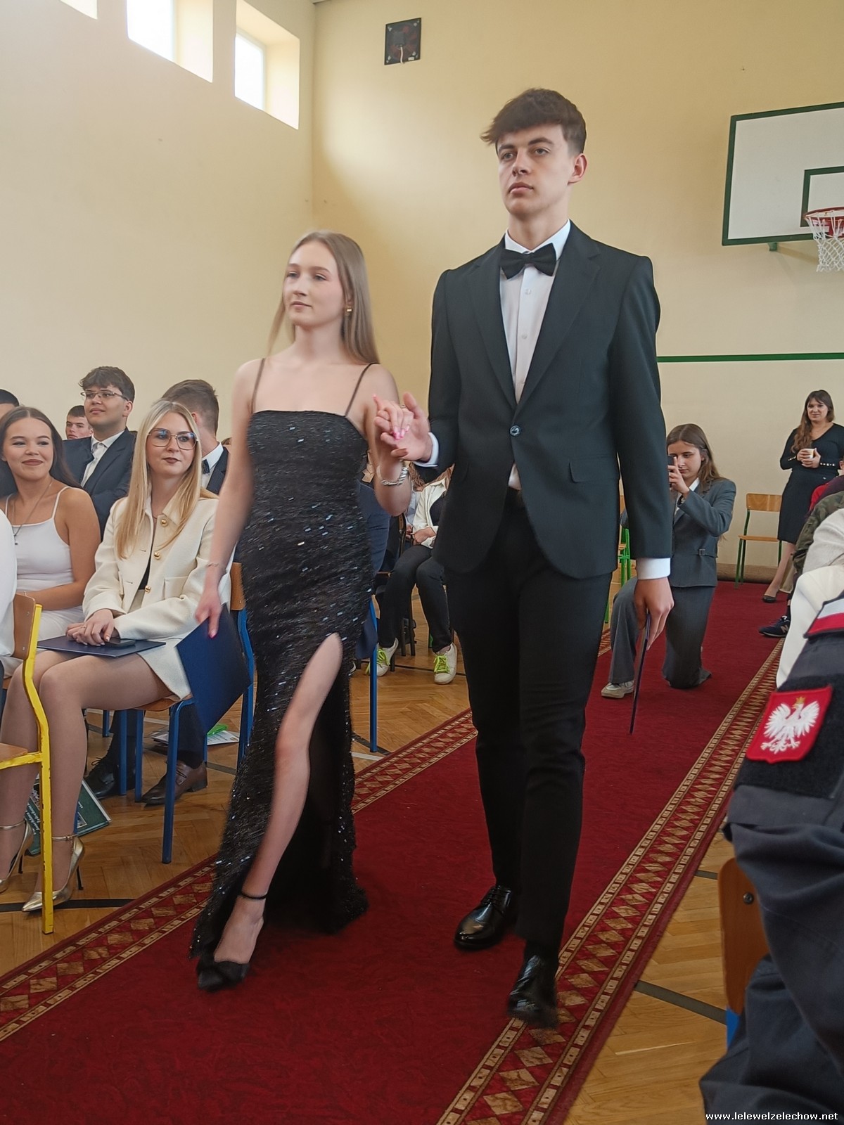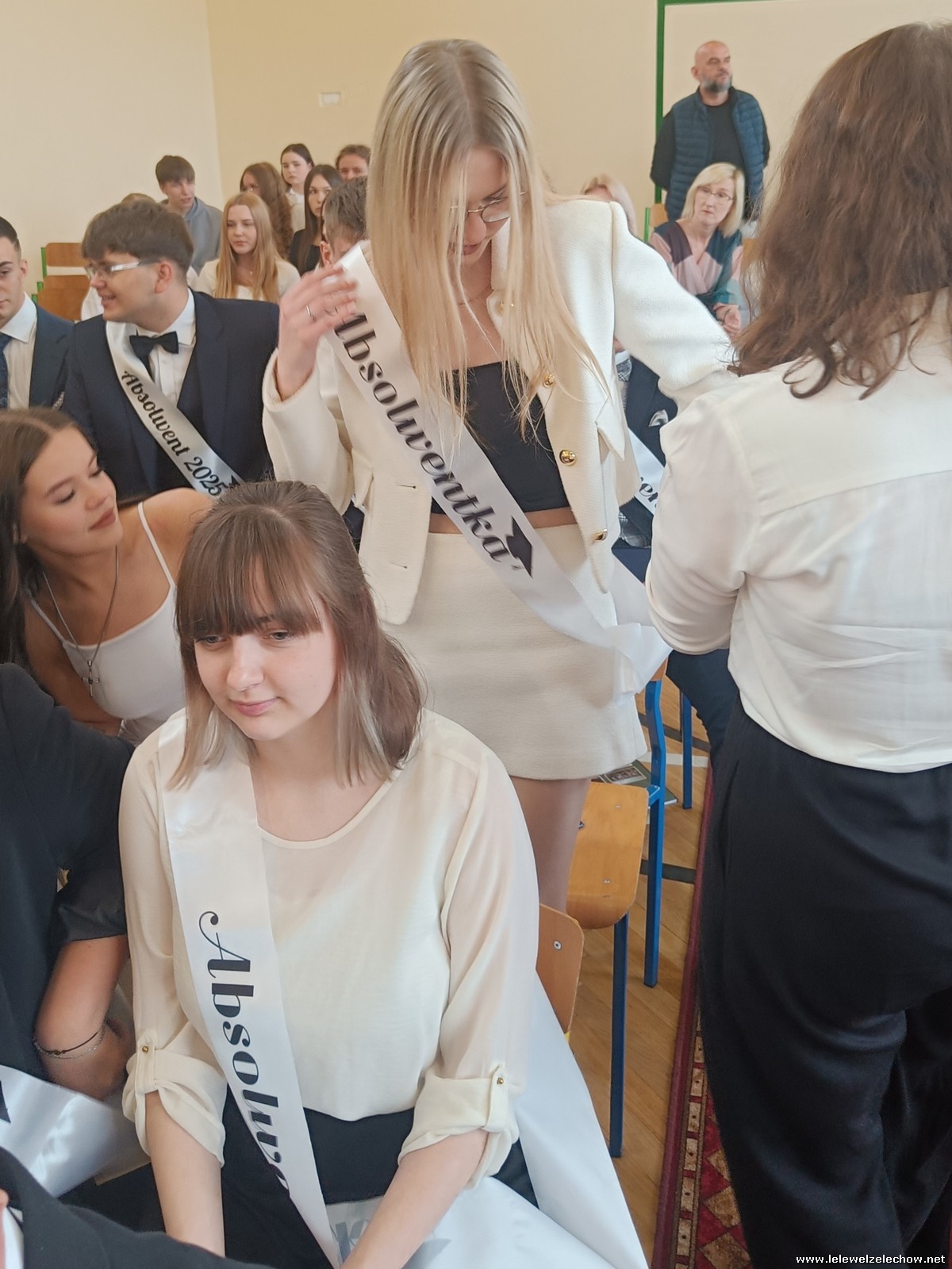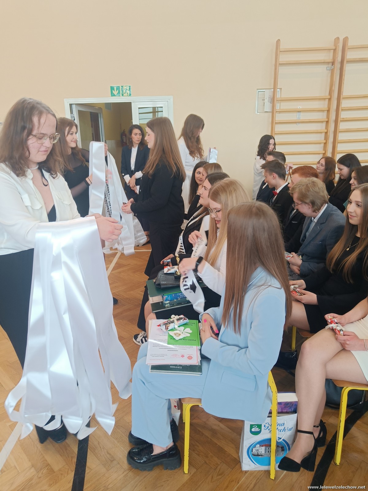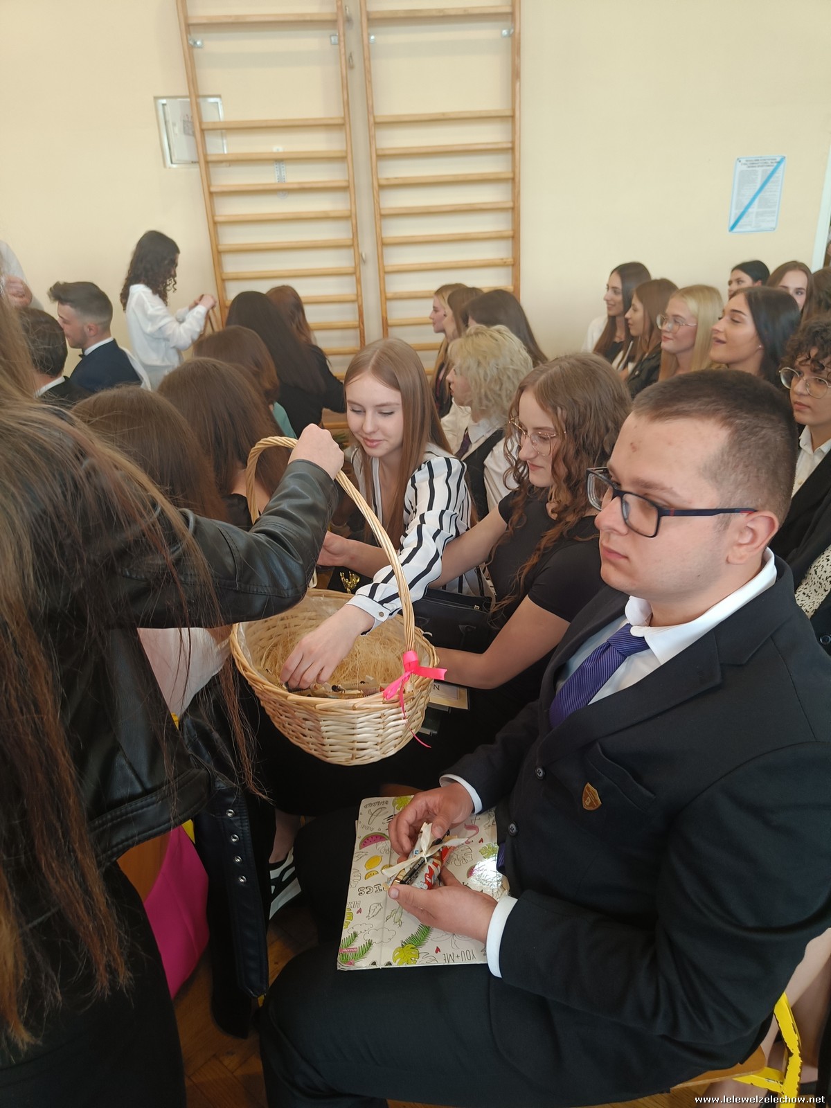 Po części oficjalnej klasy trzecie pożegnały Koleżanki i Kolegów pięknym programem artystycznym. Występy, recytacje, scenka kabaretowa, piosenki z ważnym przesłaniem sprawiły, że maturzyści na przemian wzruszali się i śmiali. Nie mogło również zabraknąć tradycyjnej Gali Leleweli, która zawsze wzbudza wiele pozytywnych emocji i jest jednym z najbardziej wyczekiwanych punktów programu artystycznego. Podczas gali doceniono tych, którzy swoim zachowaniem, postawą czy wyglądem wyróżniali się spośród grona uczniów. Cały program zakończyły życzenia, jakie trzecioklasiści złożyli absolwentom, oraz wręczenie upominków.