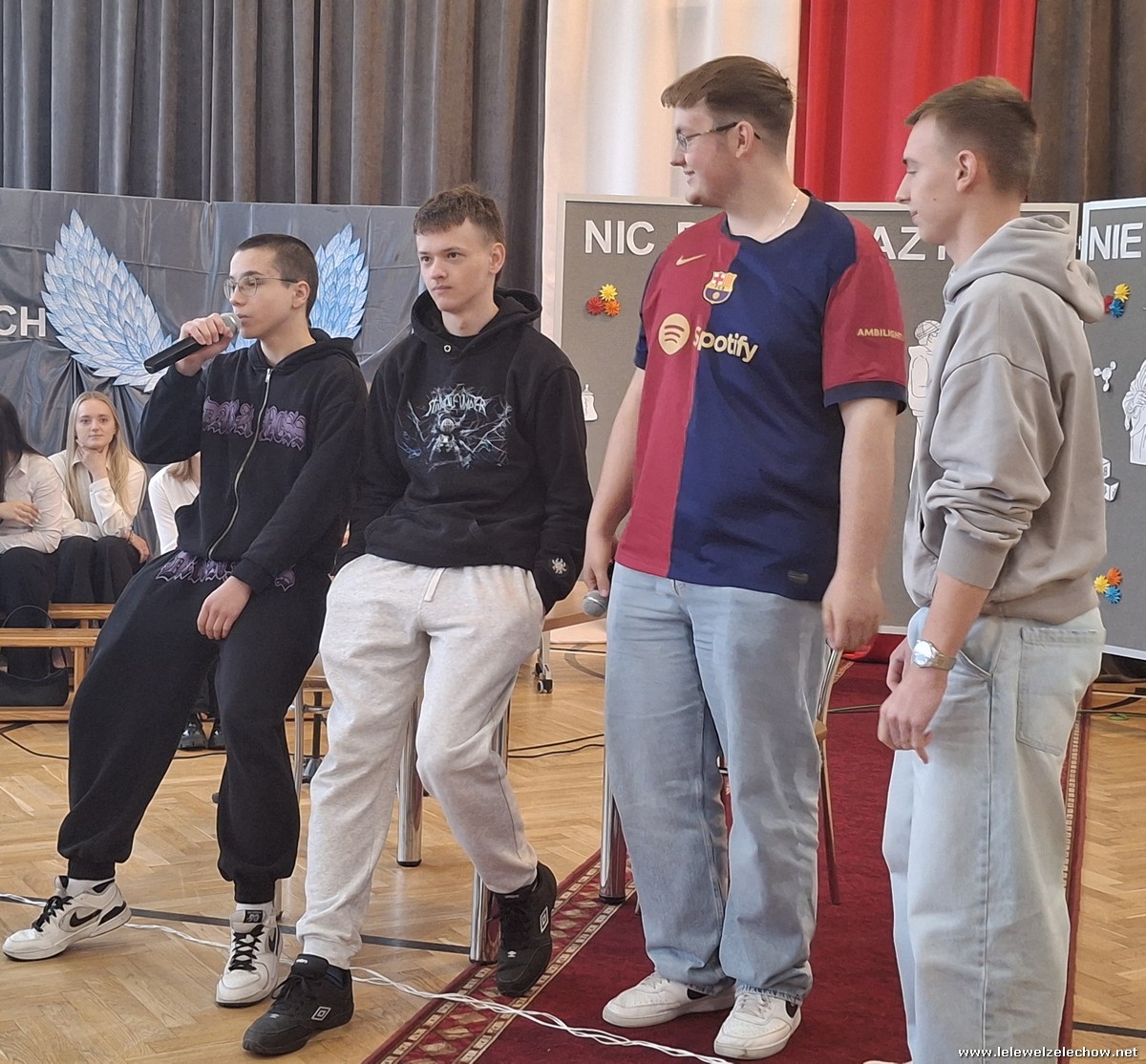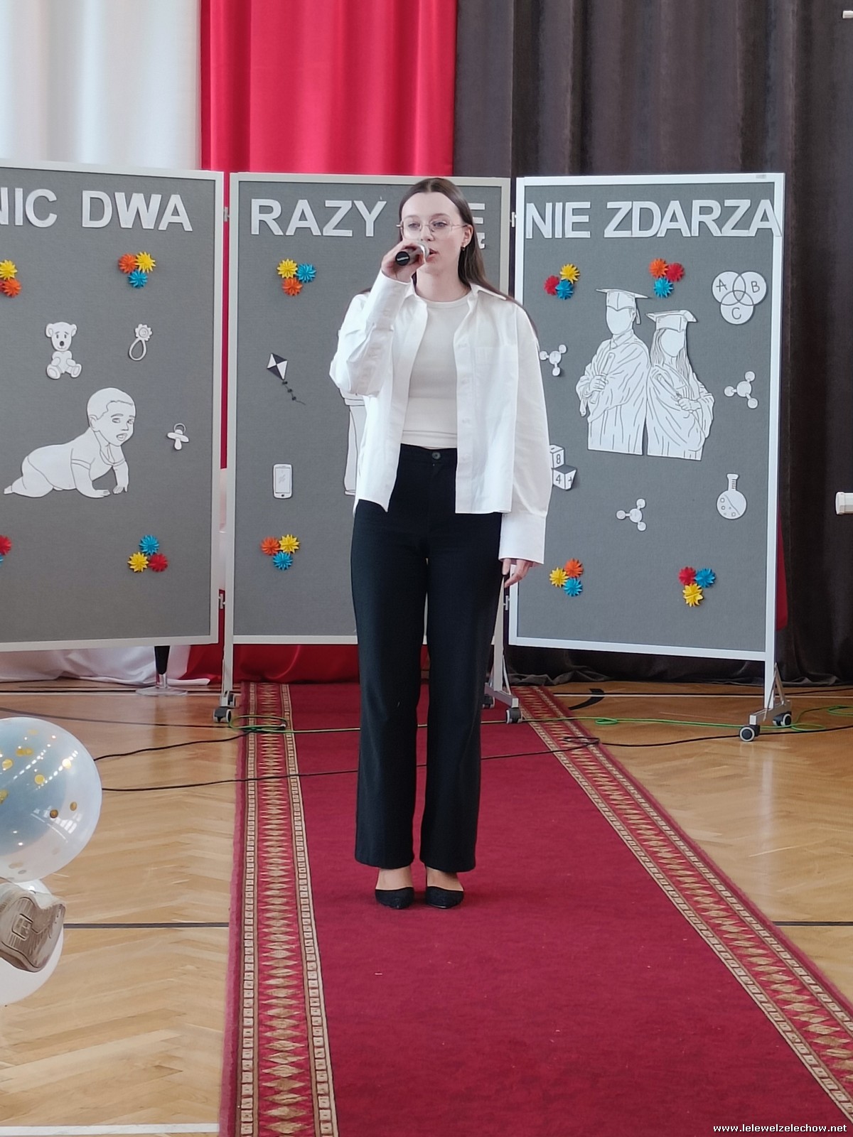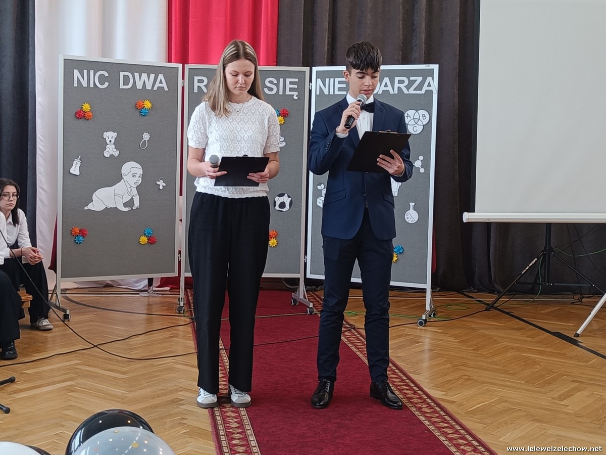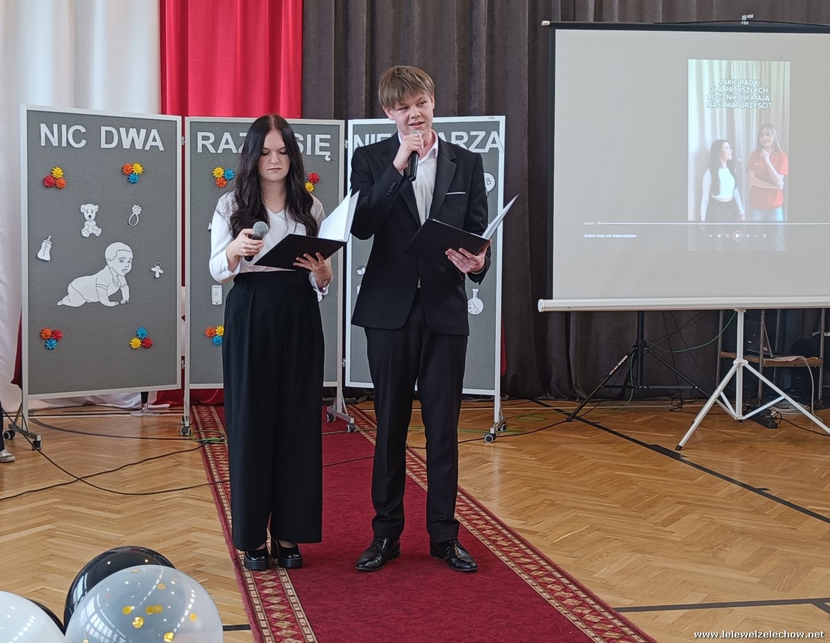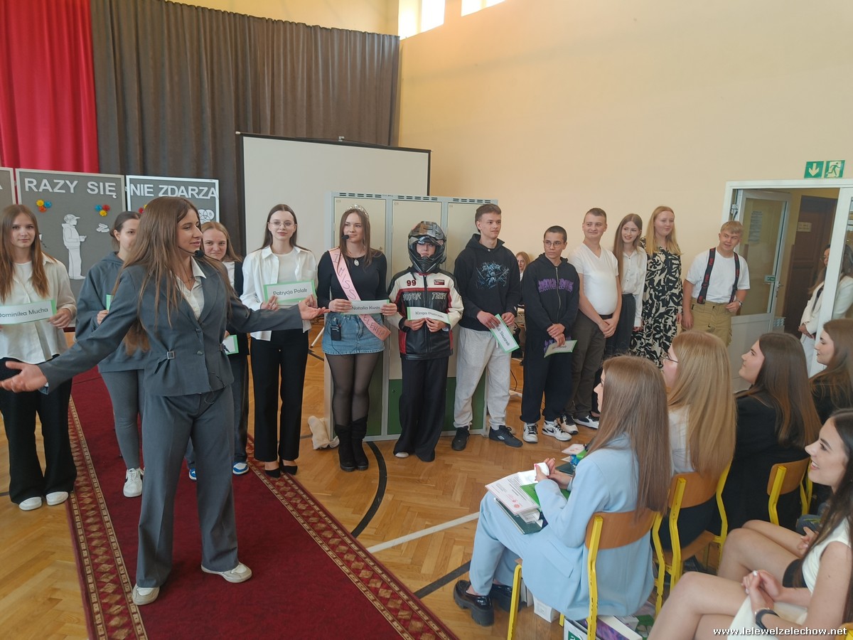 Po części oficjalnej klasy trzecie pożegnały Koleżanki i Kolegów pięknym programem artystycznym. Występy, recytacje, scenka kabaretowa, piosenki z ważnym przesłaniem sprawiły, że maturzyści na przemian wzruszali się i śmiali. Nie mogło również zabraknąć tradycyjnej Gali Leleweli, która zawsze wzbudza wiele pozytywnych emocji i jest jednym z najbardziej wyczekiwanych punktów programu artystycznego. Podczas gali doceniono tych, którzy swoim zachowaniem, postawą czy wyglądem wyróżniali się spośród grona uczniów. Cały program zakończyły życzenia, jakie trzecioklasiści złożyli absolwentom, oraz wręczenie upominków.