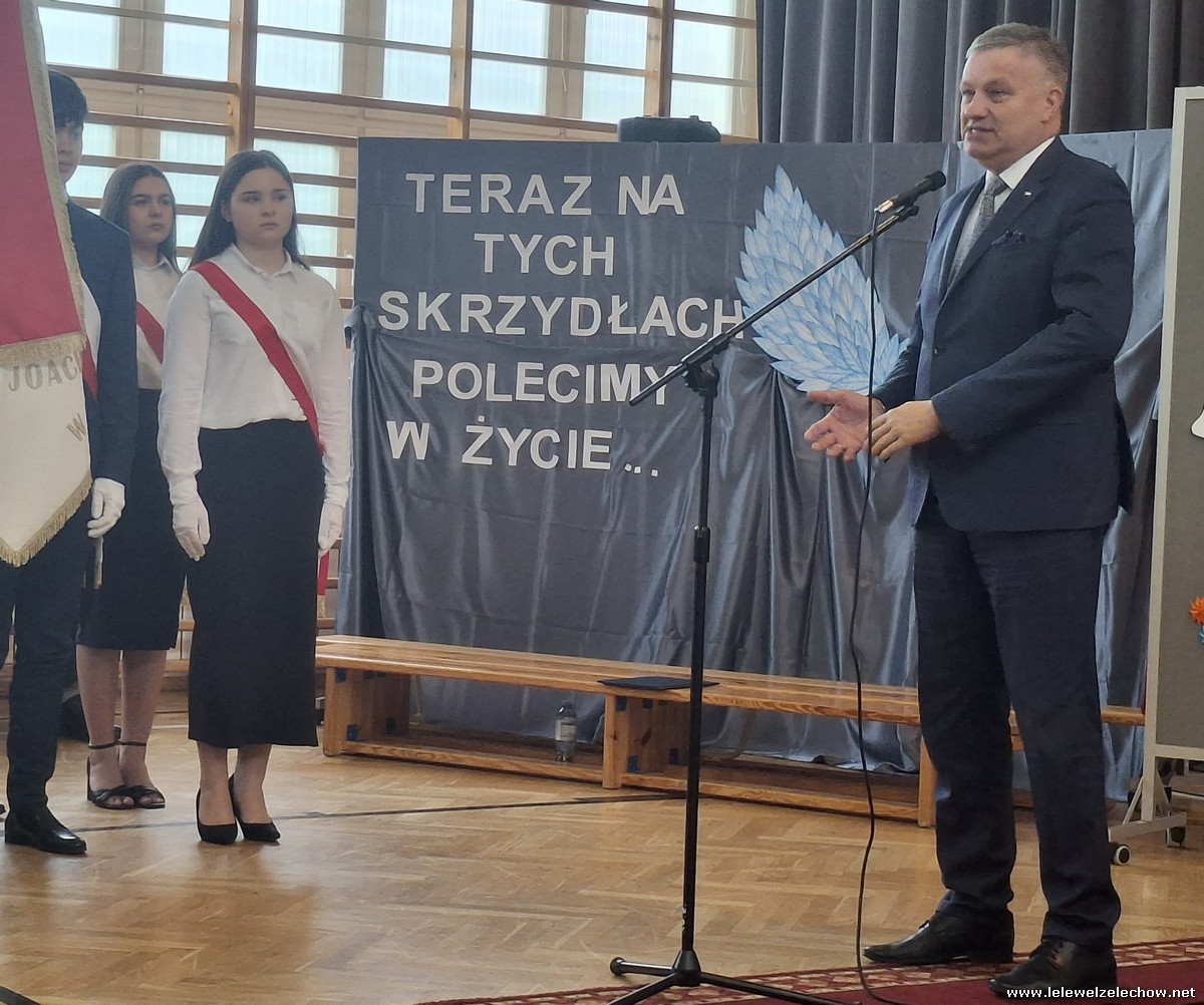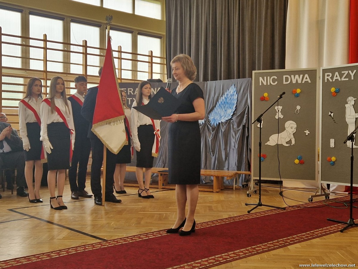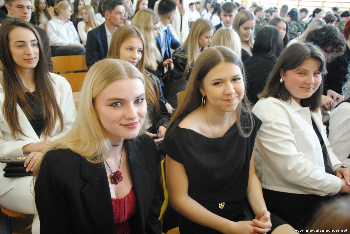 Głos zabrali również zaproszeni goście. Pan Grzegorz Woźniak - poseł na sejm RP - pogratulował ukończenia szkoły i życzył powodzenia w dorosłym życiu. Pan Krzysztof Ośka – członek zarządu Powiatu Garwolińskiego odczytał list pani Iwony Kurowskiej - Starosty Powiatu Garwolińskiego, skierował do uczniów ciepłe słowa oraz wręczył nagrodę dla najlepszej uczennicy – Patrycji Polak. Pani Krystyna Wieczorkiewicz – Burmistrz Żelechowa w swoim wystąpieniu życzyła maturzystom wielu sukcesów w dorosłym życiu oraz powodzenia na egzaminach maturalnych. Z rąk Pani Burmistrz nagrodę otrzymała Maria Lesisz za udział w uroczystościach lokalnych i godne reprezentowanie Gminy Żelechów. Głos zabrali Rodzice, którzy ze wzruszeniem wspominali wspólną drogę swoich dzieci przez 4 lata nauki. W ich słowach nie zabrakło wdzięczności wobec nauczycieli i całej społeczności szkolnej.