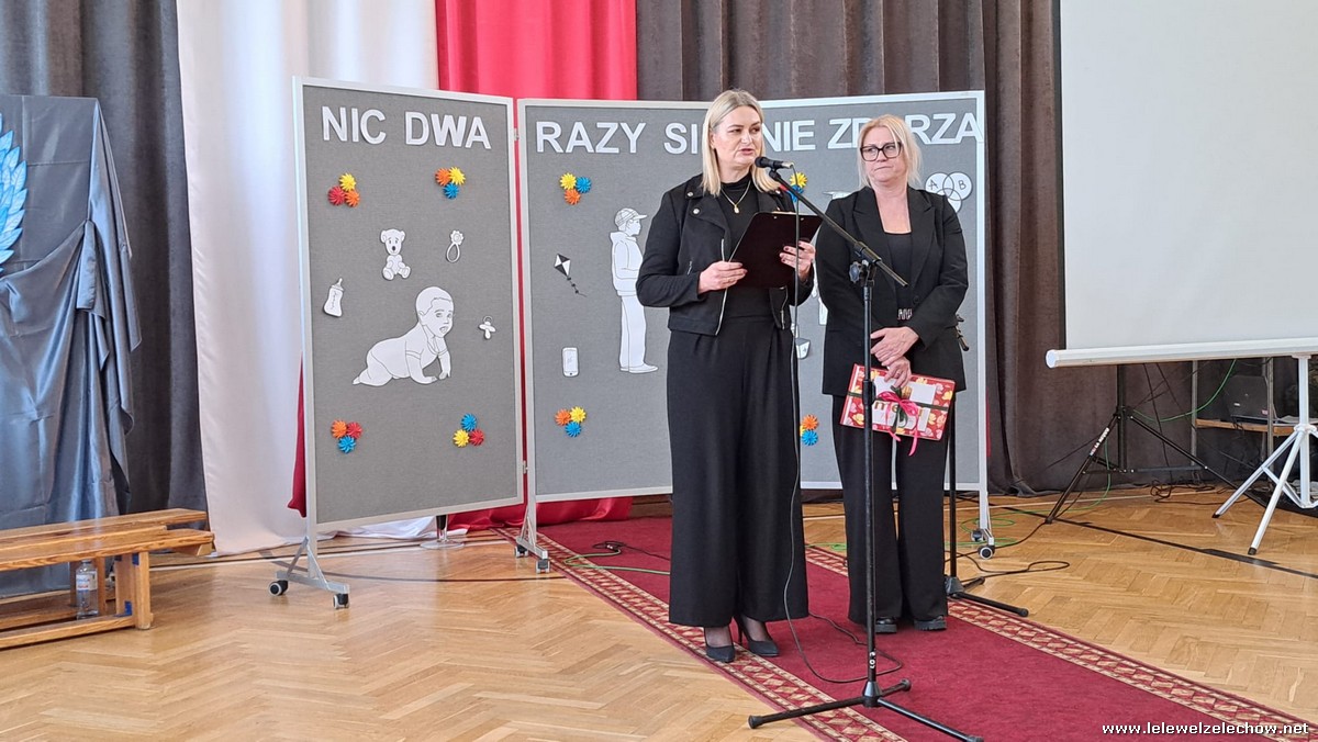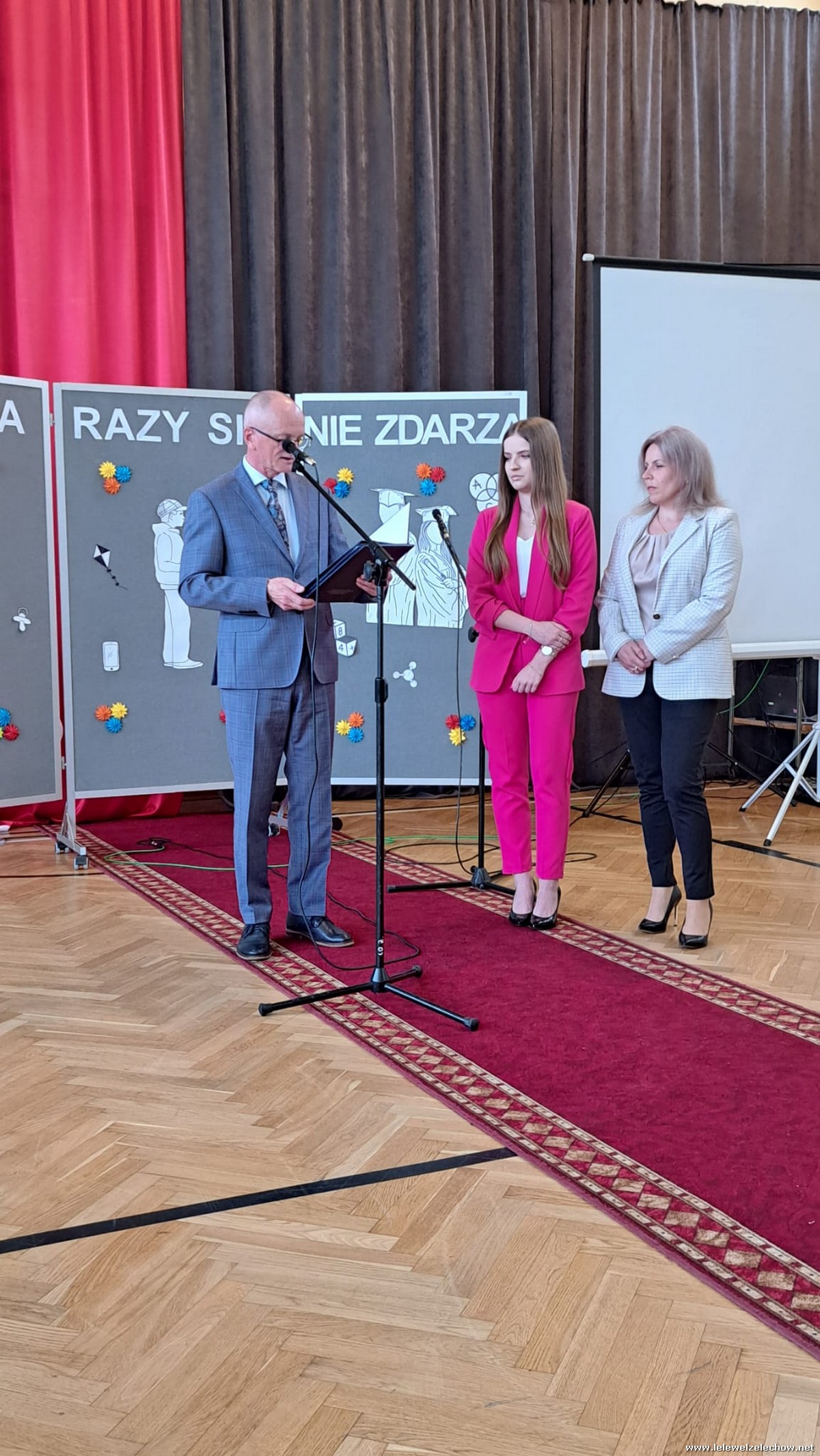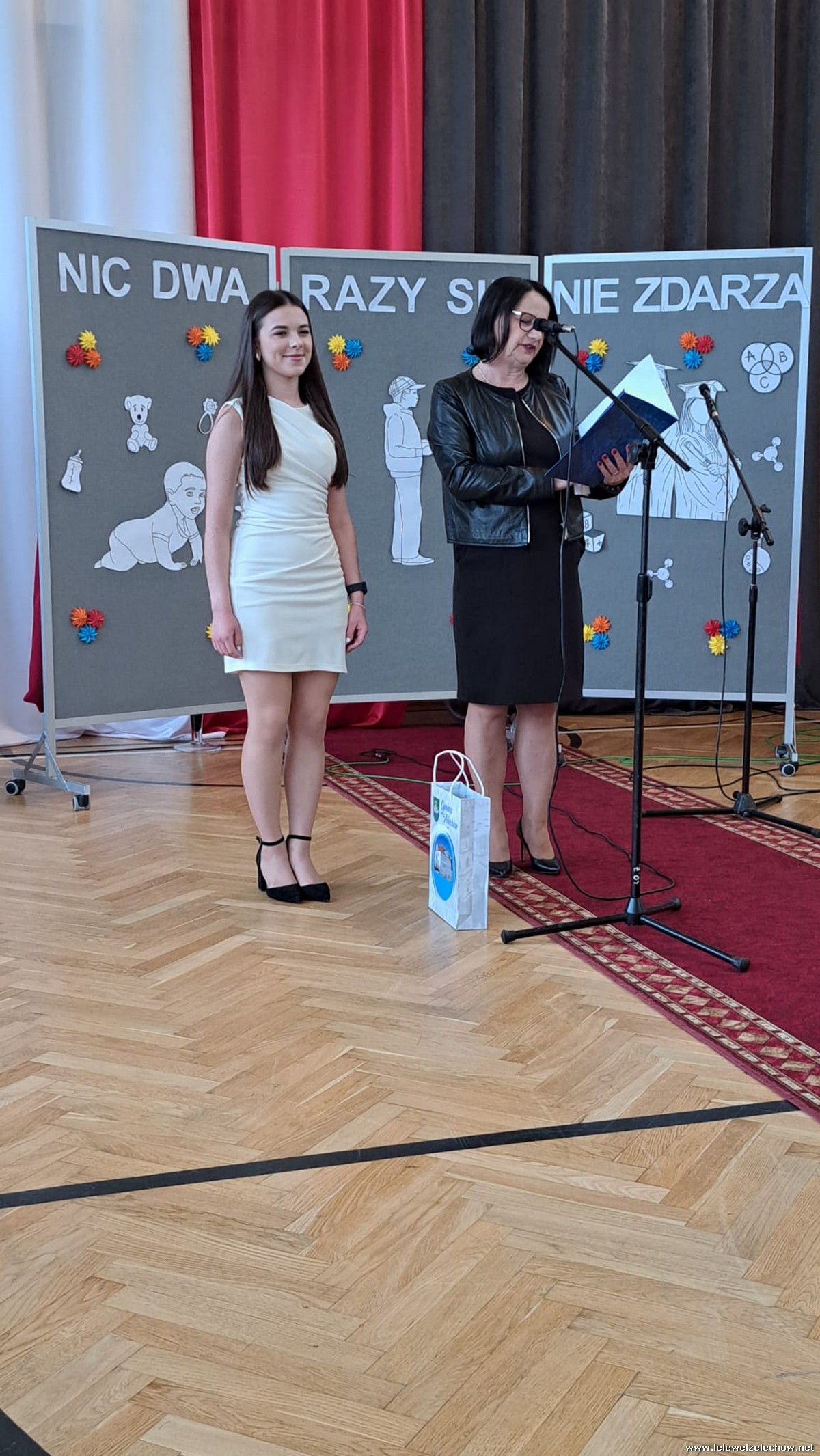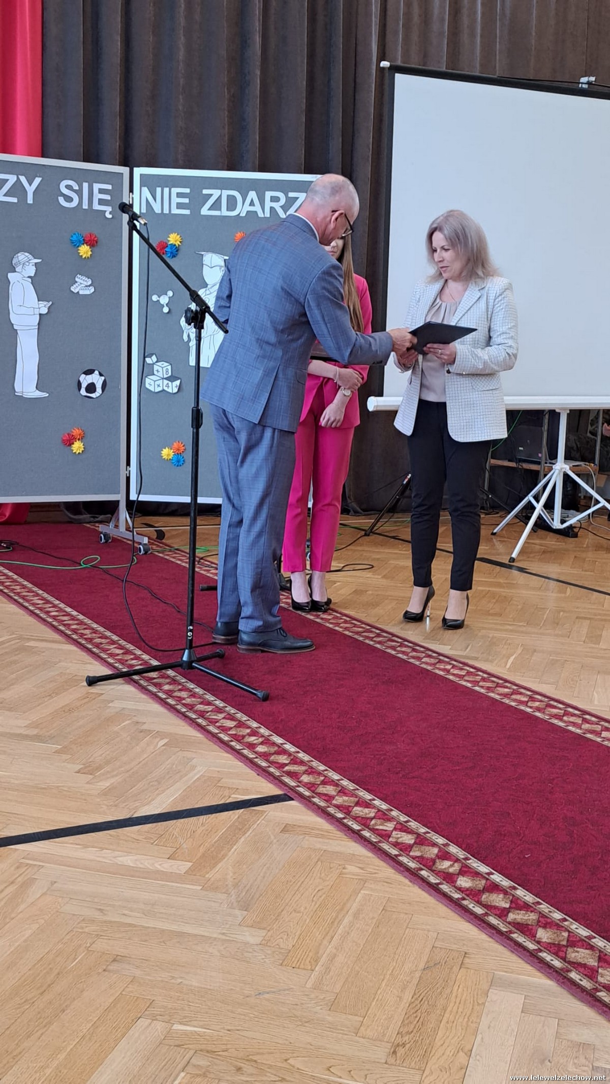 Następnie głos zabrała Pani Dyrektor, która zwróciła się do absolwentów: „Dziś rozstajemy się z rocznikiem, który zapisał się w historii naszej szkoły w wyjątkowy sposób. Każda i każdy z Was zostawił tu cząstkę siebie — i jestem przekonana, że to, co najważniejsze, zabieracie w sercu. Emocje, wspomnienia, relacje - ich nie da się zobaczyć ani zmierzyć. Ale to właśnie one zostaną na zawsze.