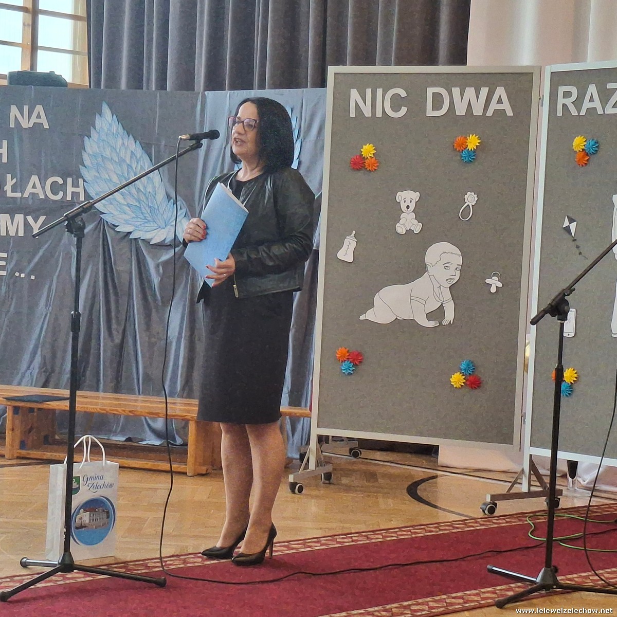 Pani Dyrektor podziękowała także wychowawcom za opiekę nad klasami, wdrażanie do szkolnego życia, motywowanie do nauki, a nauczycielom za przekazywanie wiedzy i pracę, jaką włożyli w przygotowanie uczniów do matury. Zwróciła się także do rodziców, wyrażając wdzięczność za współpracę i doceniając trud włożony w wychowanie swoich dzieci.