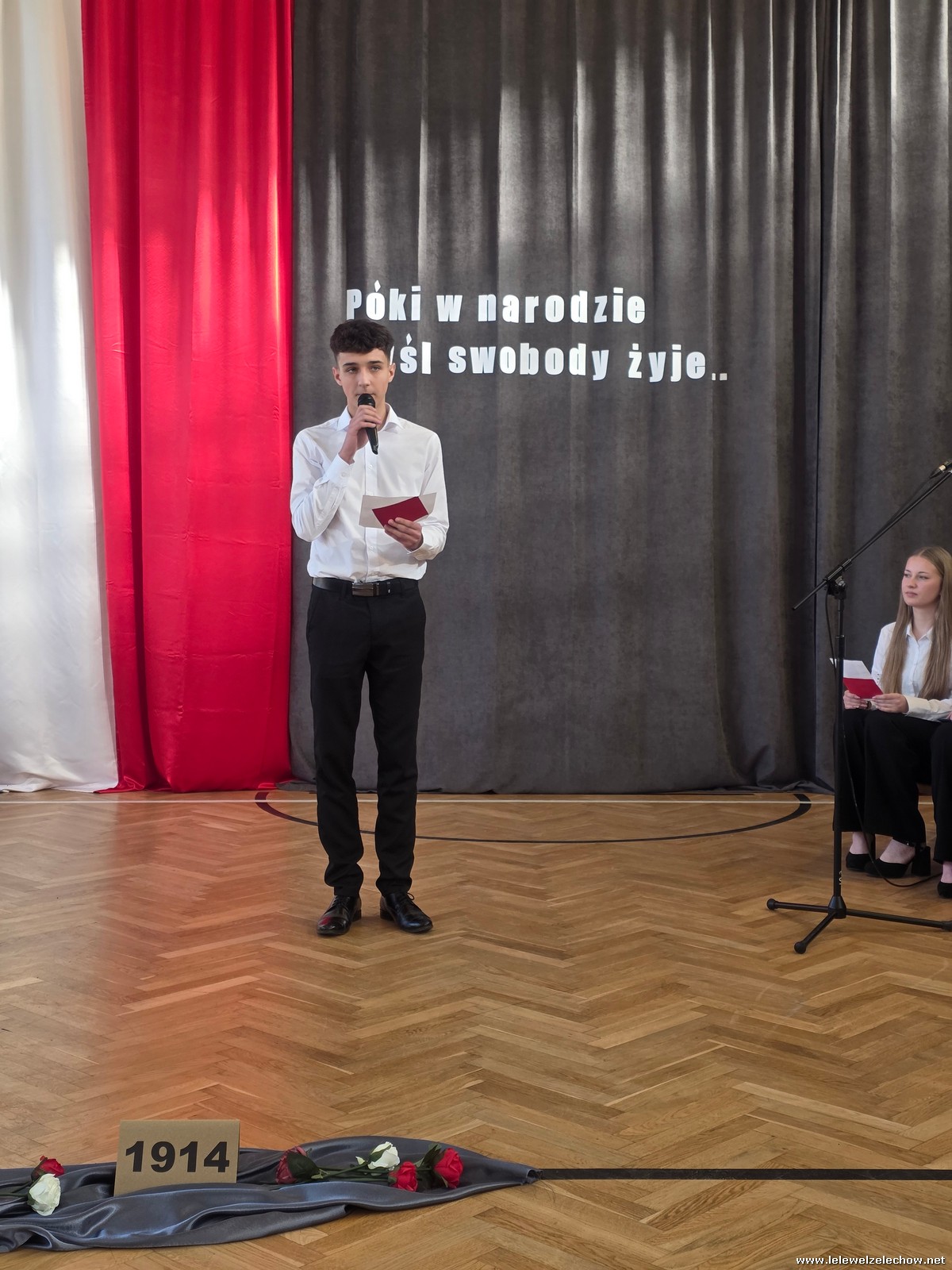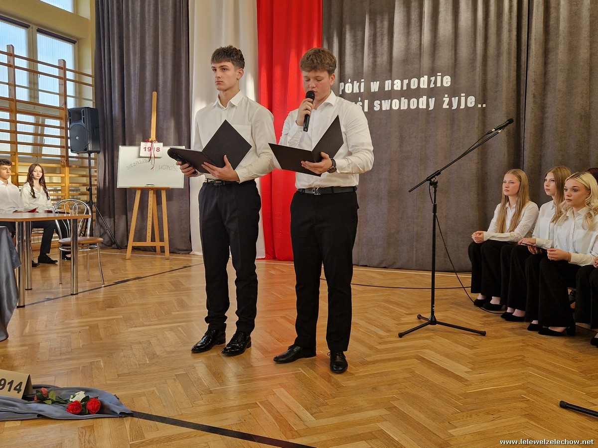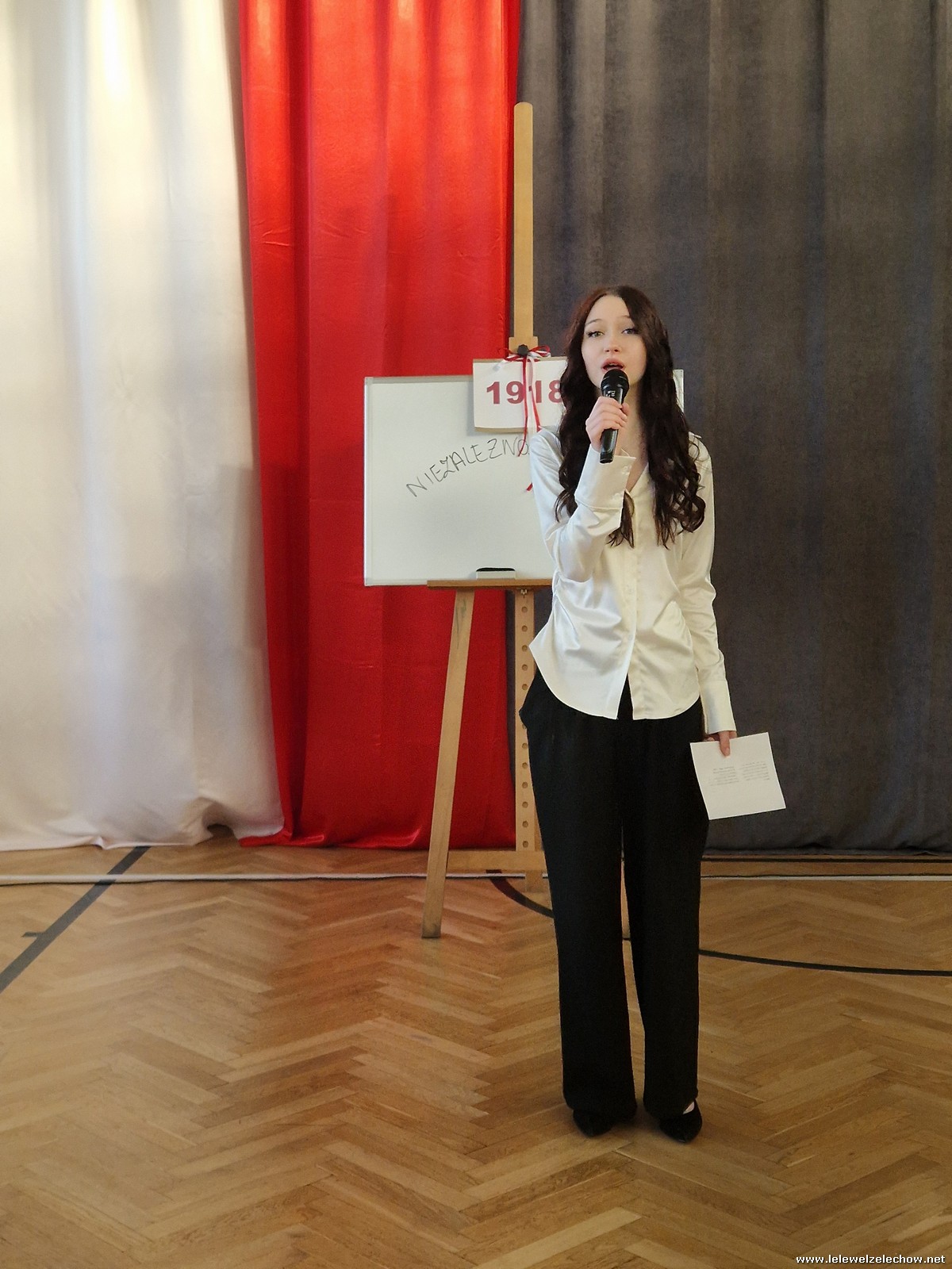 Uczniowie klas III poprowadzili nas pieśnią i poezją przez czas 123 lat polskiej niewoli. Od rozbiorów, poprzez zrywy niepodległościowe, walkę o polskość pod zaborami, czyn zbrojny I wojny światowej aż po uzyskanie upragnionej wolności. To tę wartość wielokrotnie podkreślano w programie, zaznaczając, że nie była ona również w 1918 roku Polakom dana raz na zawsze...