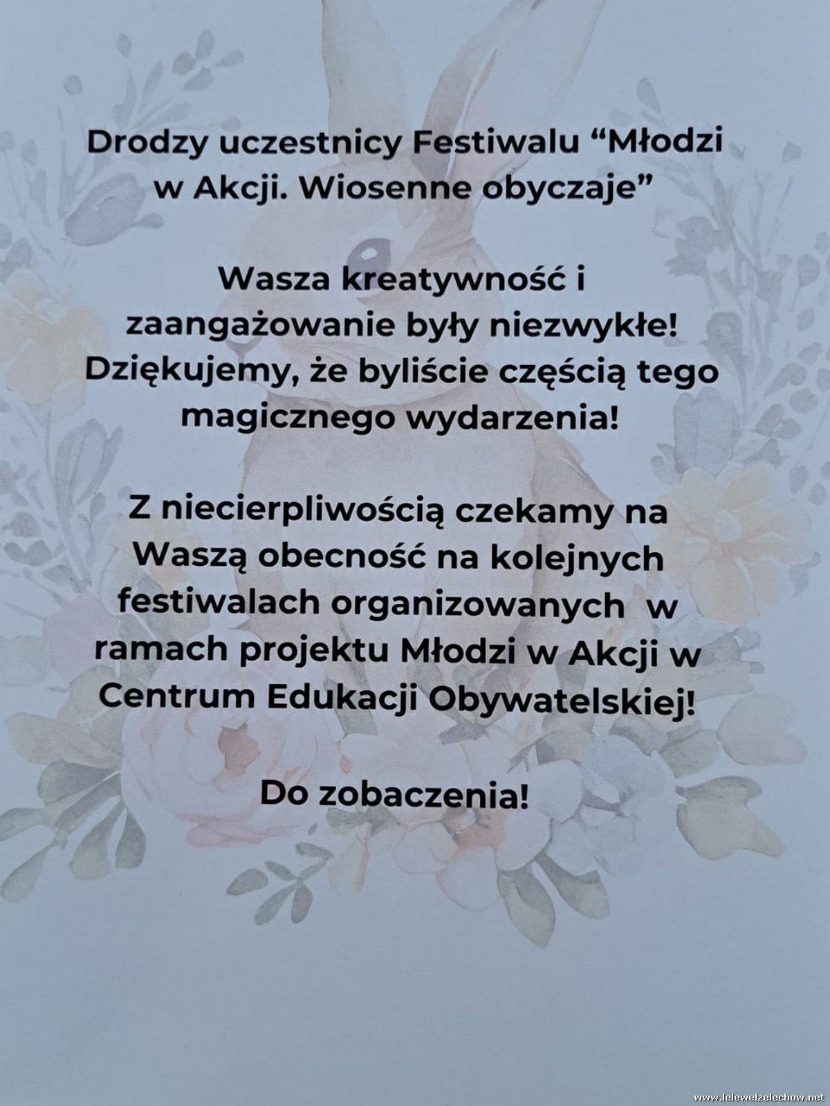 Miło nam poinformować,że drużyna ,,LELEWEL,, realizująca projekt Centrum Edukacji Obywatelskiej:,,Mapa wiosny. Na ludowo,, uzyskała wyróżnienie za udział w festiwalu internetowym odbywającym się w dniach 20-21 marca. Dziewczyny 2c stanowiły jedną z 65 drużyn biorących udział w tym wydarzeniu. Do 16 szkół, w tym naszego liceum organizatorzy przekazali Dyplom i nagrody. Widać, że sprawiły one radość:)