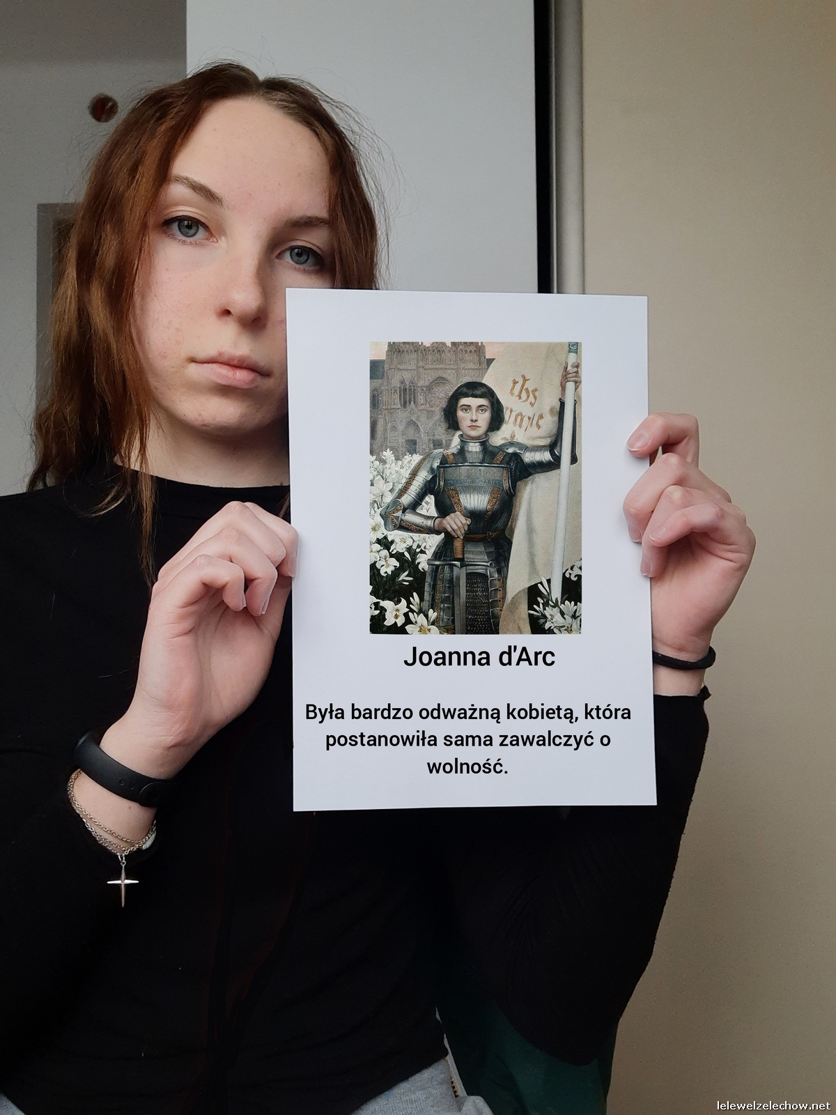Z okazji Międzynarodowego Dnia Kobiet, dziewczyny w ramach wiedzy o społeczeństwie i historii o społeczeństwie z klas 1ab, 2cd oraz 3ab, przygotowały prace w ramach projektu: ,,Kobiety, które podziwiamy". Uczennice wybrały bardzo ciekawe postacie kobiet, które na przestrzeni dziejów zasłynęły aktywnością i wybitnymi osiągnięciami w polityce, wojsku, nauce, działalności społecznej, kulturalnej. Pokazywały, że w każdej epoce kobiety mogły dużo osiągnąć i oddziaływać na istniejącą rzeczywistość. Zapraszamy do obejrzenia zdjęć.
