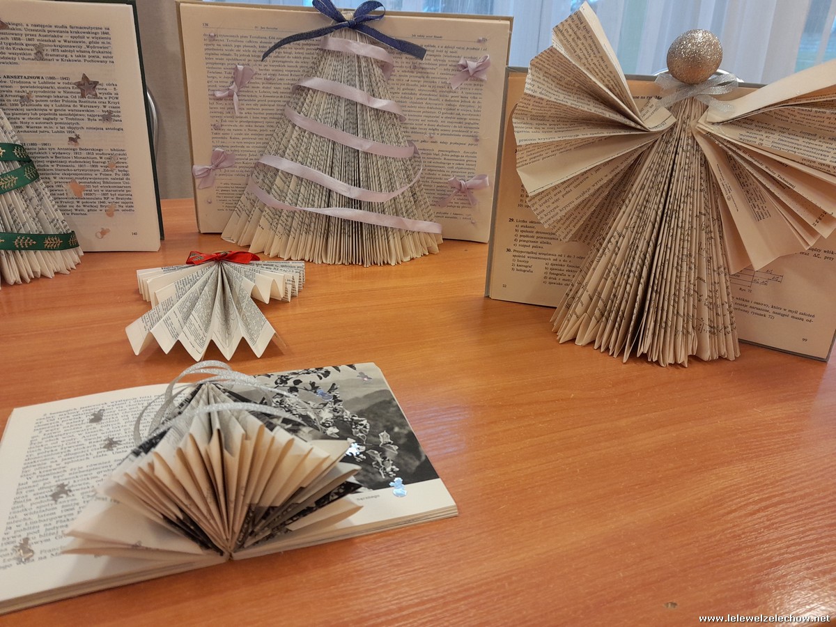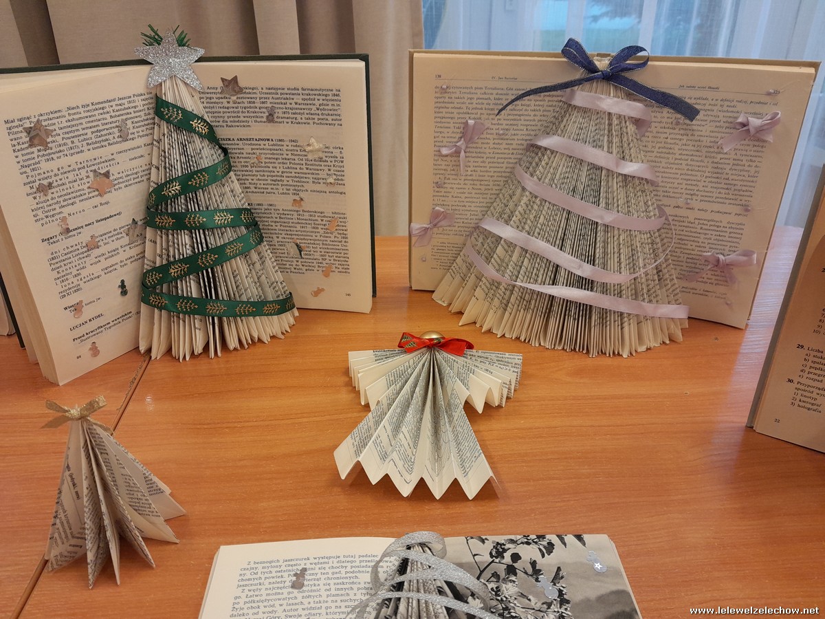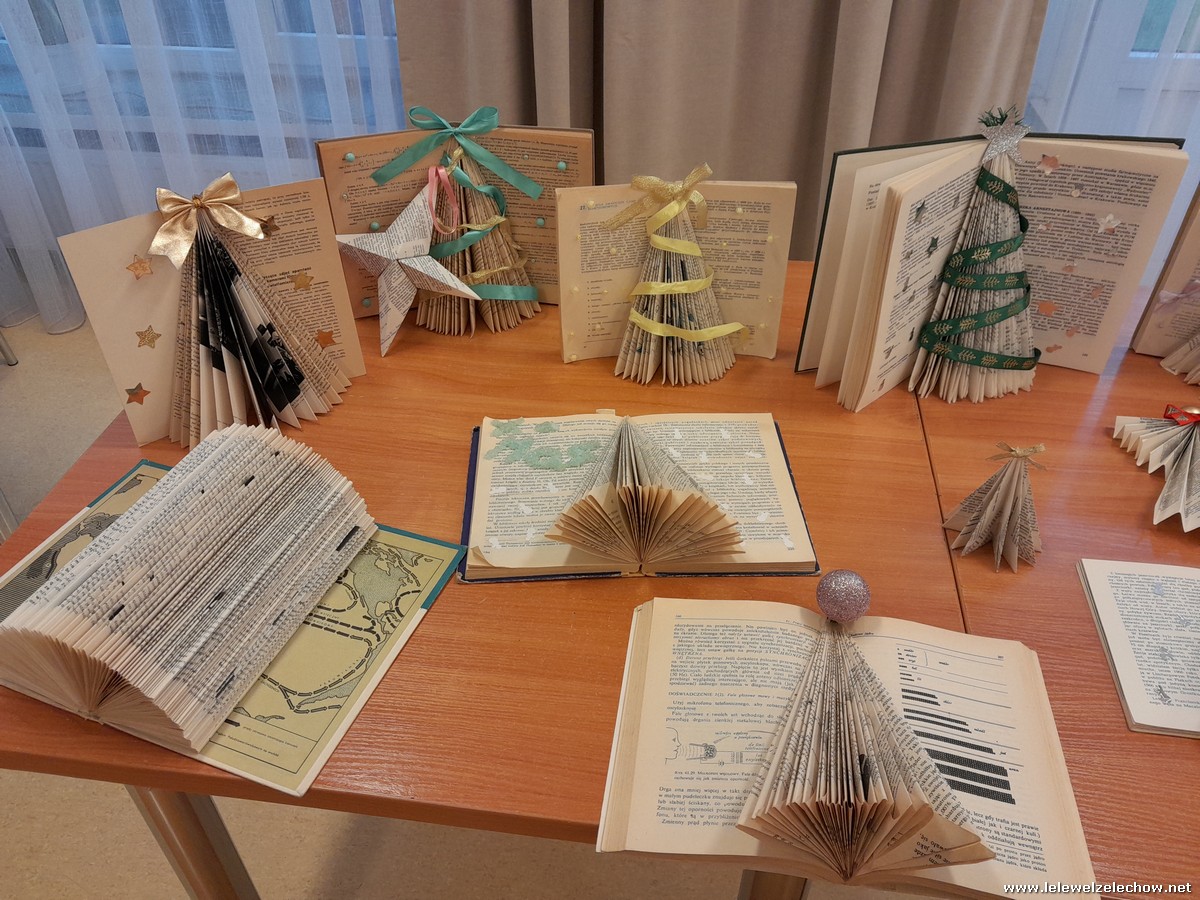 Swoje piękne, kreatywne prace przygotowali pod kierunkiem pani Anny Czarneckiej-Górskiej, która przeprowadziła warsztaty przygotowania ozdób bożonarodzeniowych z książką w roli głównej. Podczas zajęć nieaktualne książki zamieniły się w piękne świąteczne dekoracje. Zachęcamy do obejrzenia efektów naszej pracy.