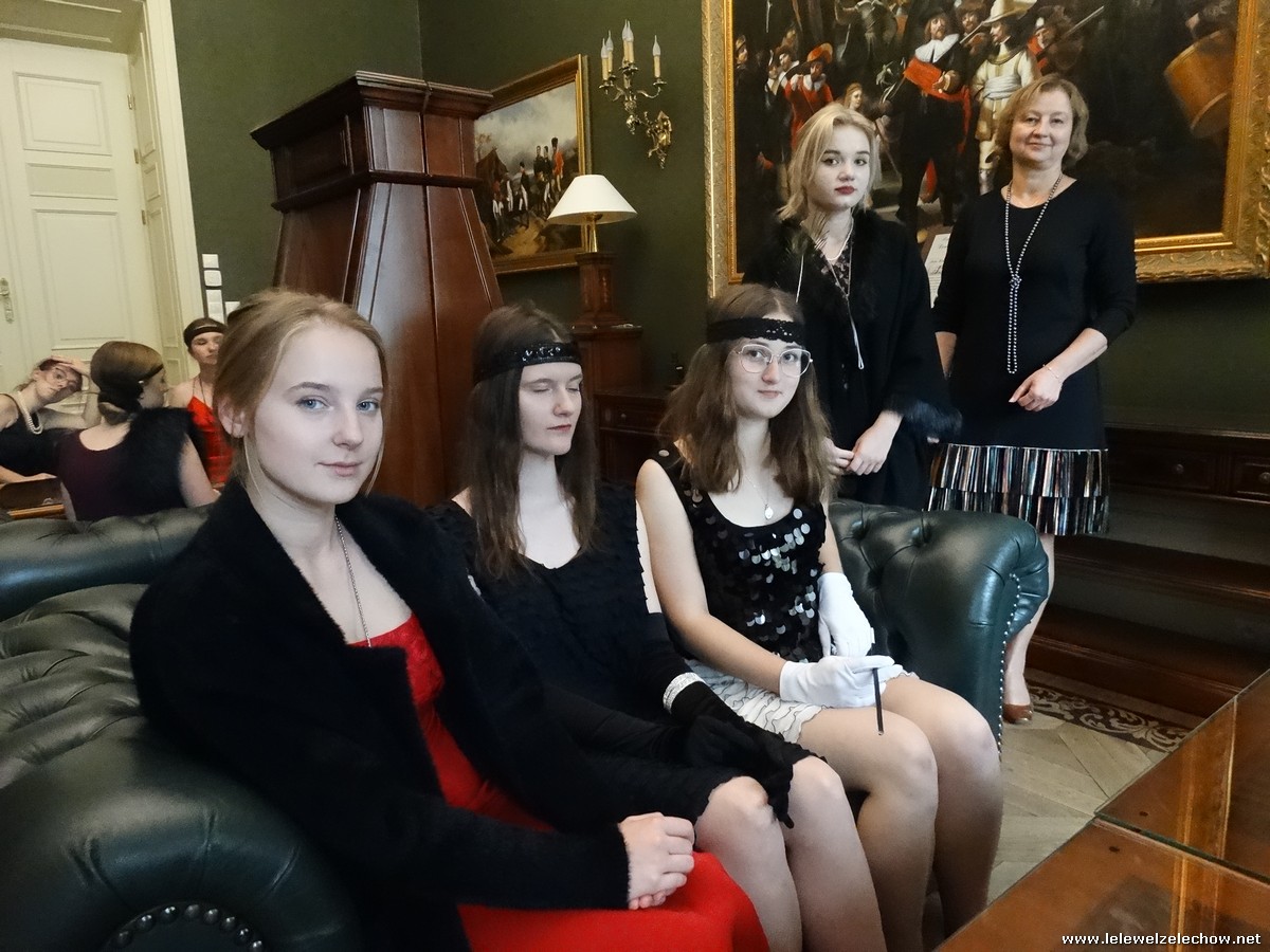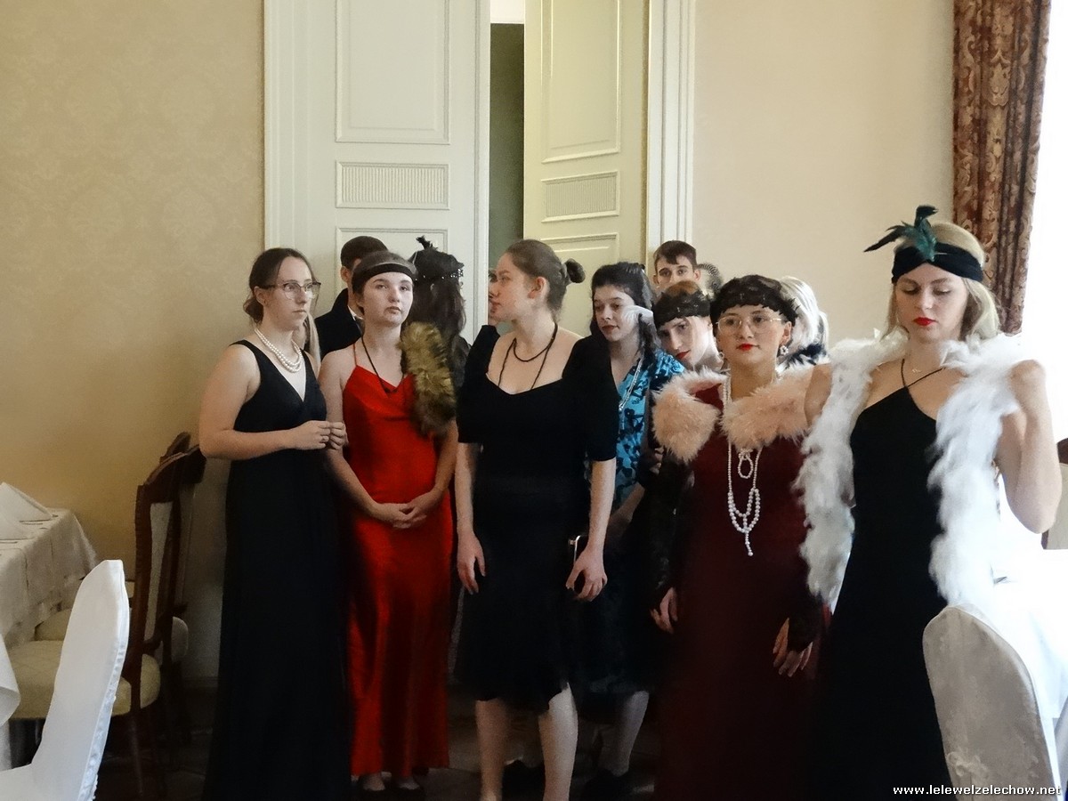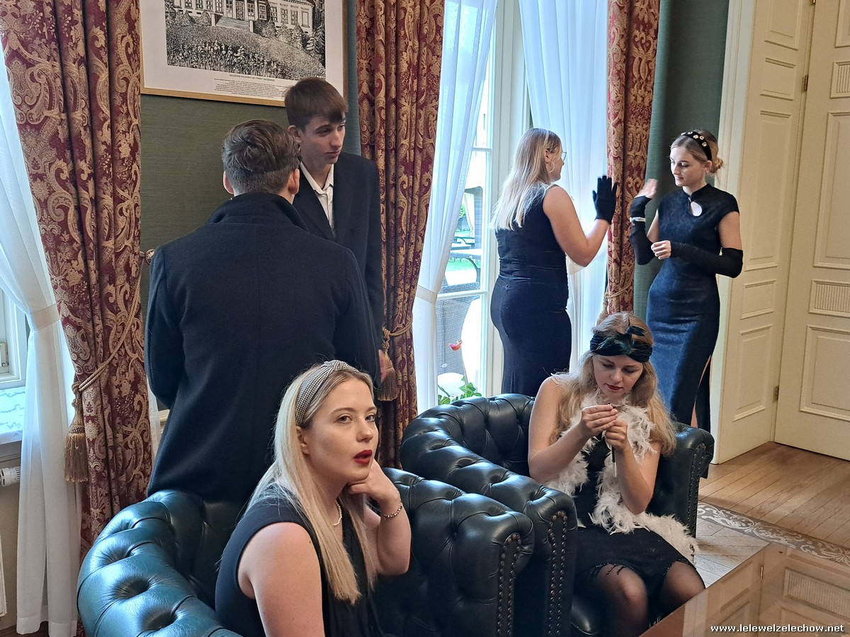Kolejny projekt realizowany przez klasę 4c w ramach rozszerzenia z historii. Tym razem licealiści przenieśli się w lata 20-te i 30-te minionego wieku. Dzięki uprzejmości Pałacu Żelechów zdjęcia udało się wykonać w pięknych wnętrzach tego obiektu. Serdecznie dziękujemy! Projekt realizowany był pod kierunkiem nauczycielki historii - pani Urszuli Kobielus, która wraz z panią Dyrektor - Sylwią Tomaszek wykonała zdjęcia. Piękne stylizacje uczennic i uczniów oraz otoczenie sprawiły, że było to bardzo udane przedsięwzięcie!