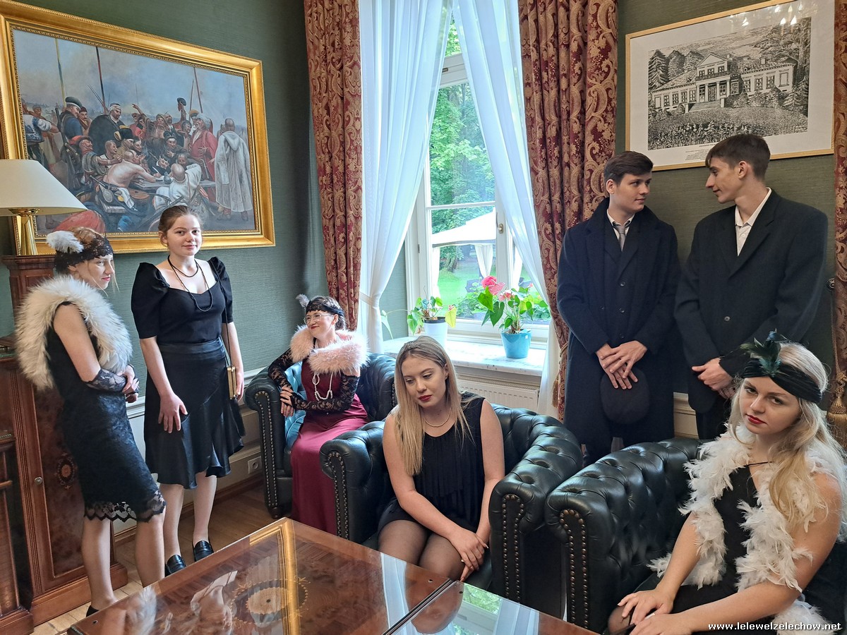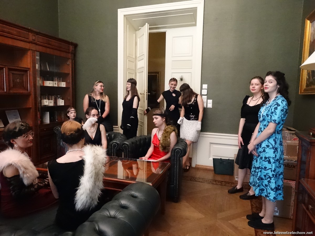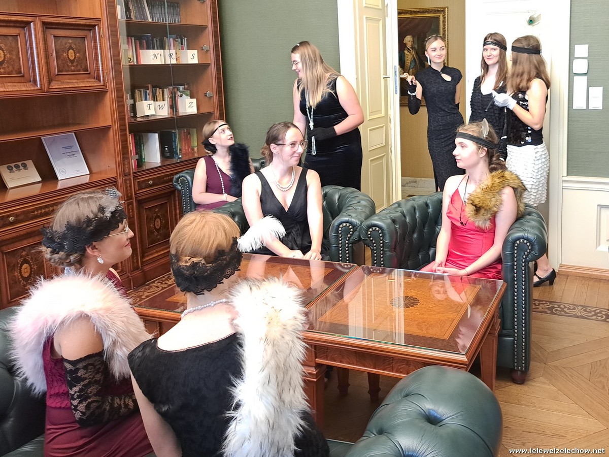Kolejny projekt realizowany przez klasę 4c w ramach rozszerzenia z historii. Tym razem licealiści przenieśli się w lata 20-te i 30-te minionego wieku. Dzięki uprzejmości Pałacu Żelechów zdjęcia udało się wykonać w pięknych wnętrzach tego obiektu. Serdecznie dziękujemy! Projekt realizowany był pod kierunkiem nauczycielki historii - pani Urszuli Kobielus, która wraz z panią Dyrektor - Sylwią Tomaszek wykonała zdjęcia. Piękne stylizacje uczennic i uczniów oraz otoczenie sprawiły, że było to bardzo udane przedsięwzięcie!