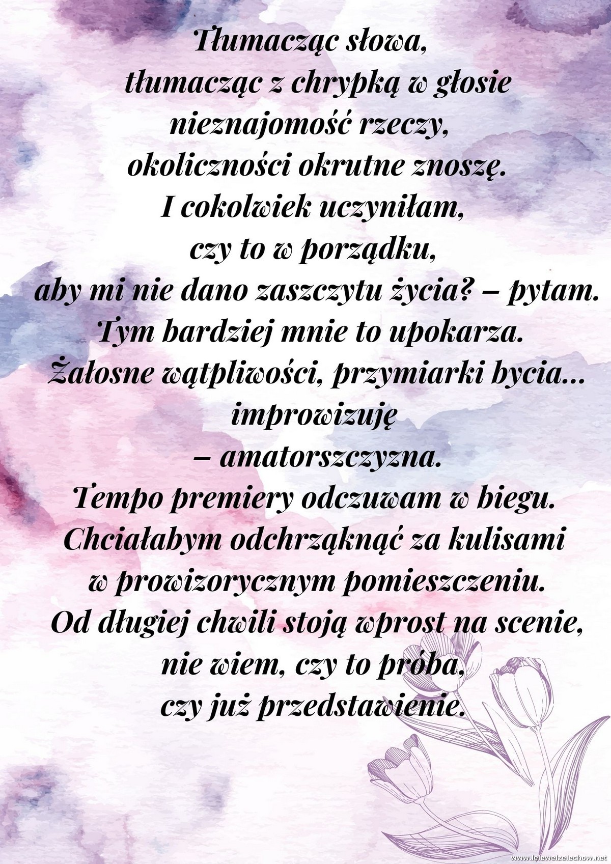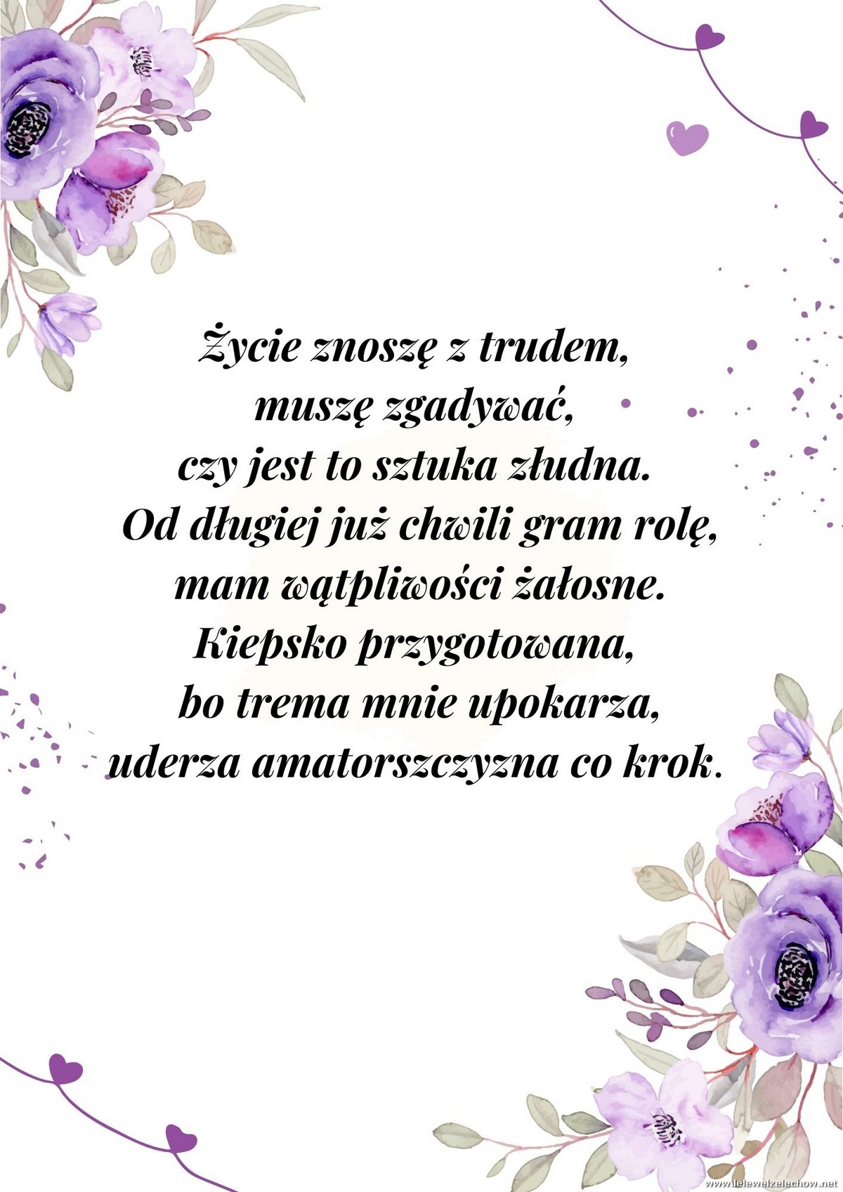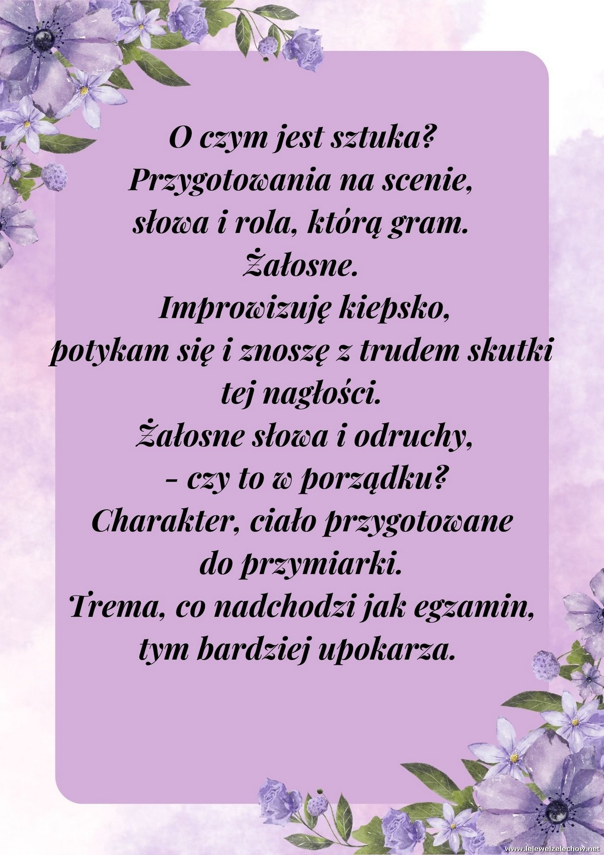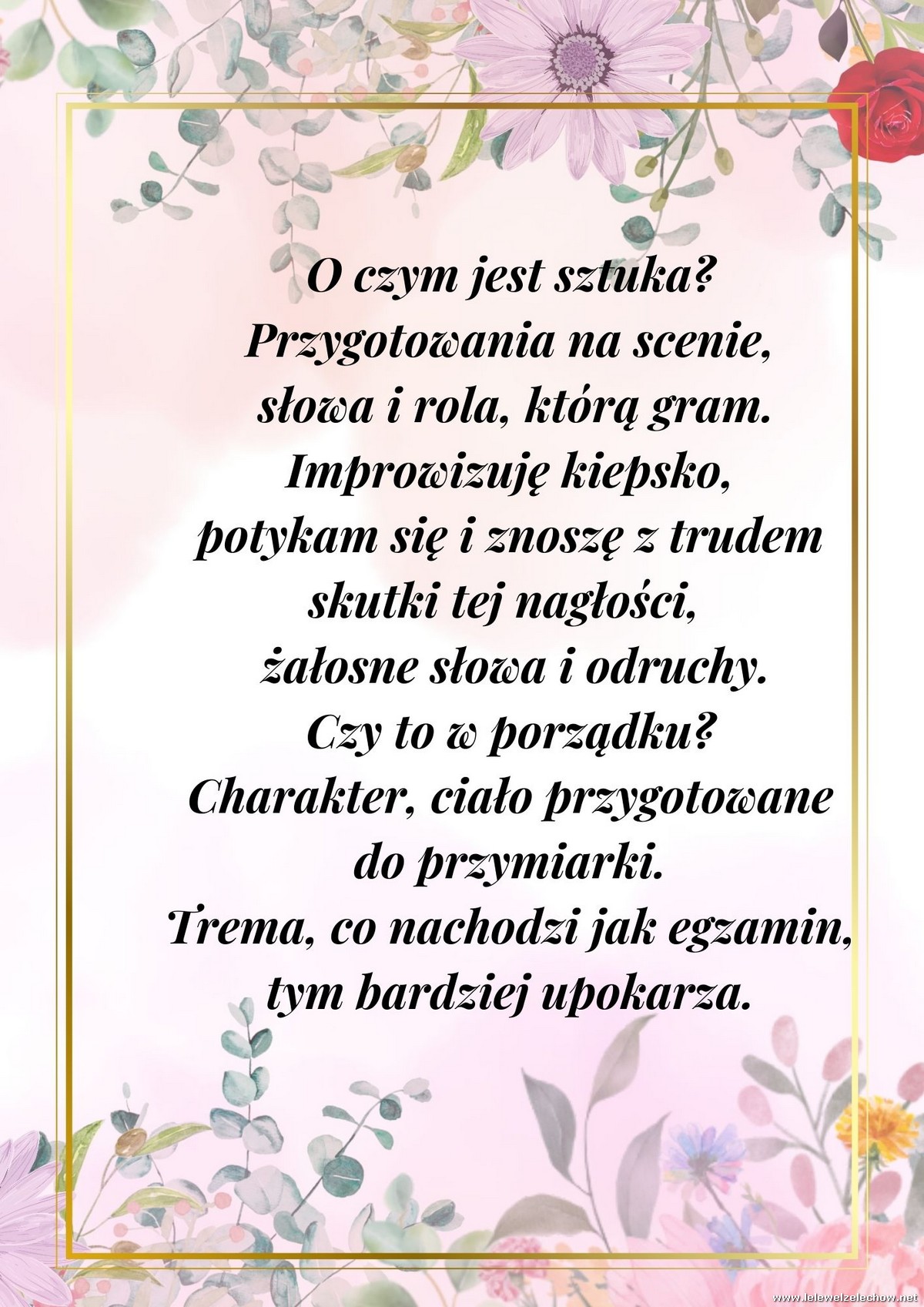 Ostatnie przed wakacjami lekcje języka polskiego były dla uczniów klasy Ib nie lada wyzwaniem. Zamienili się oni bowiem w poetów. Zadanie okazało się tym trudniejsze, że do stworzenia własnego wiersza mieli ograniczony zasób słów – wykorzystać mogli tylko te, które pojawiają się w utworze Wisławy Szymborskiej „Życie na poczekaniu”. Należało też zachować formę wyrazów bez zmieniania ich formy. Ten swoisty recykling poetycki bardzo spodobał się młodzieży. Poczuli się jak prawdziwi poeci. W krótkim czasie powstawały niezwykle refleksyjne teksty. Oceńcie sami.