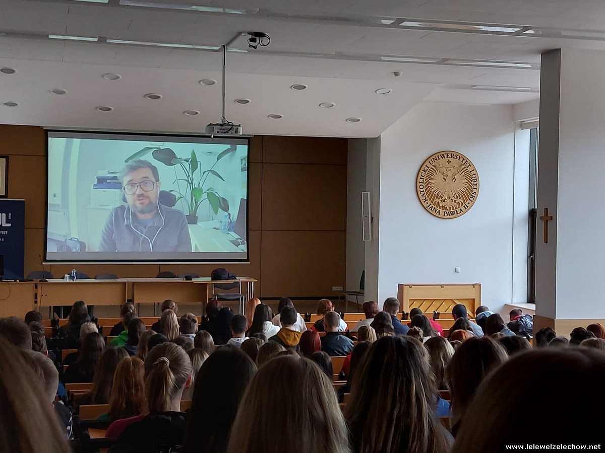 Uczniowie wzięli również udział w spotkaniu pn. „Nowa matura 2023 w pytaniach i odpowiedziach”, którego prelegentem był dr Marcin Smolik, dyrektor Centralnej Komisji Egzaminacyjnej.