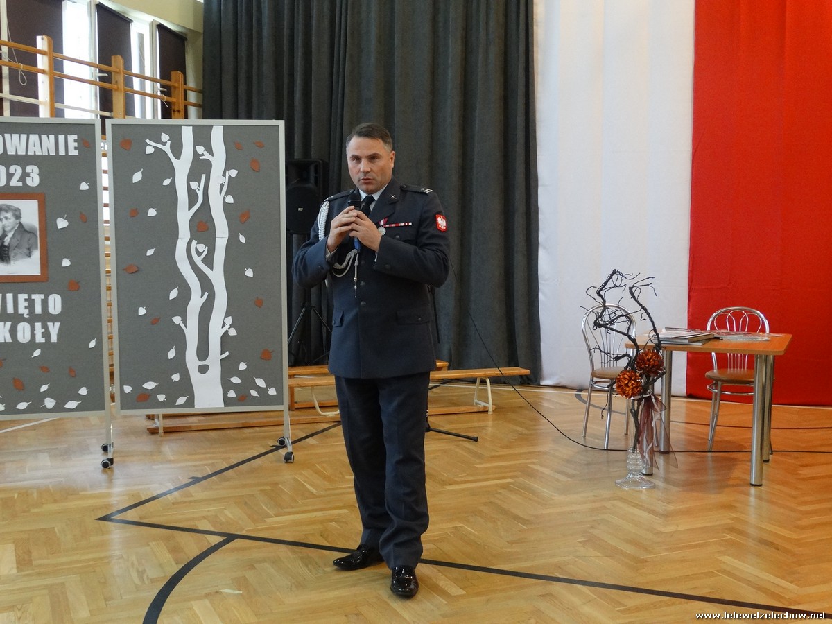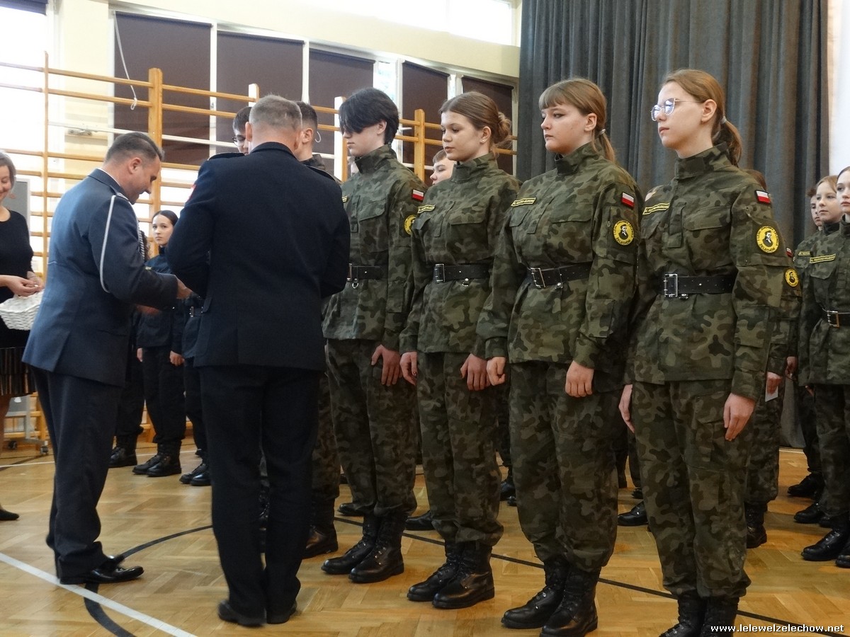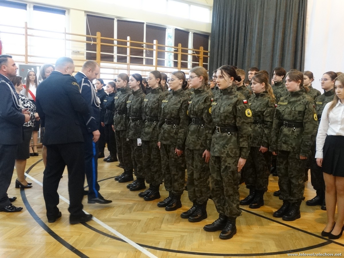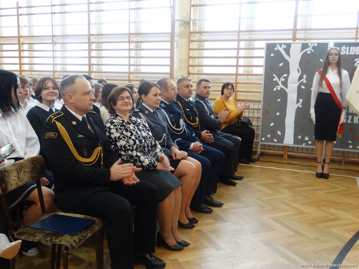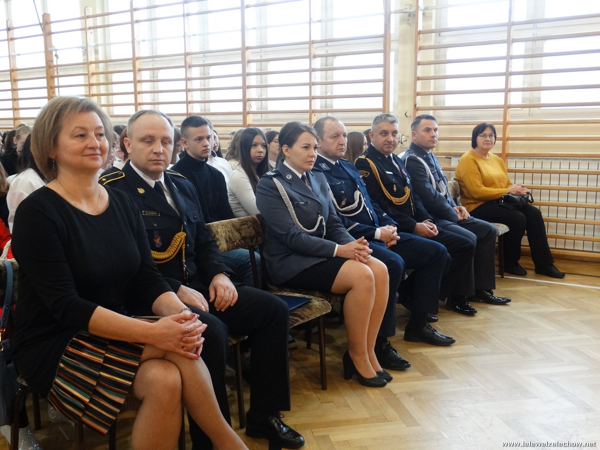 W uroczystości udział wzięli: Justyna Maszkiewicz – Dyrektor Wydziału Edukacji Kultury i Sportu Powiatu Garwolińskiego; mł. insp. Dariusz Gaładyk – Zastępca Komendanta Powiatowego Policji w Garwolinie; mł.bryg. Paweł Sobór – Naczelnik Wydziału Organizacyjnego Komendy Powiatowej Państwowej Straży Pożarnej w Garwolinie; mjr Sylwester Kulik – Szef Wydziału Rekrutacji i Promocji Wojskowego Centrum Rekrutacji w Garwolinie; sierż.szt. Karoina Lipiec –z Zespołu Profilaktyki Społecznej, Nieletnich i Patologii KPP.