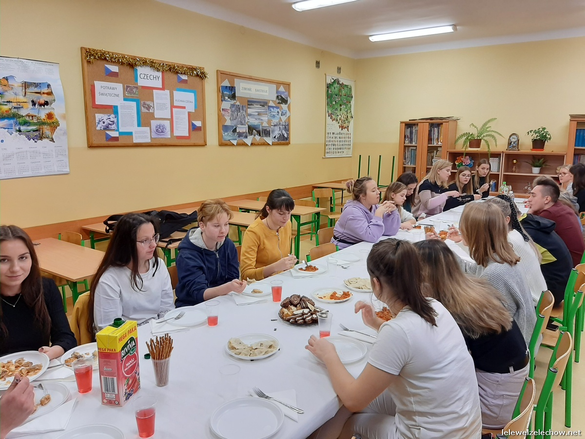 Wigilijne klasowe w naszej szkole zawsze wiążą się z niezwykłymi emocjami. Doceniamy je tym bardziej po ubiegłym roku, gdy nie mogły się one odbywać ze względu na obowiązującą naukę zdalną. Szczególny wymiar mają te spotkania dla klas trzecich, które po raz ostatni w czasie pobytu w liceum mogą złożyć sobie bożonarodzeniowe życzenia, pokolędować, pobyć razem w świątecznym nastroju, życzyć powodzenia w nowym, tak wyjątkowym dla maturzystów, roku szkolnym. W środę 16 XII klasa 3b zorganizowała po lekcjach taką właśnie wigilię. Odczuliśmy wdzięczność za tę możliwość, wspominając, jak rok temu tęskniliśmy do takiego właśnie bycia razem w naszym zespole klasowym. Symbolicznie przełamaliśmy się opłatkiem, podzieliśmy się dobrym słowem, skosztowaliśmy przygotowanych potraw świątecznych, zrobiliśmy sobie pamiątkowe zdjęcia i z radością, ale też tęsknotą za mijającymi właśnie chwilami, rozeszliśmy się do domów. Za rok nie spotkamy się już w tym gronie, dlatego ostania klasowa wigilia była dla nas pięknym przeżyciem.