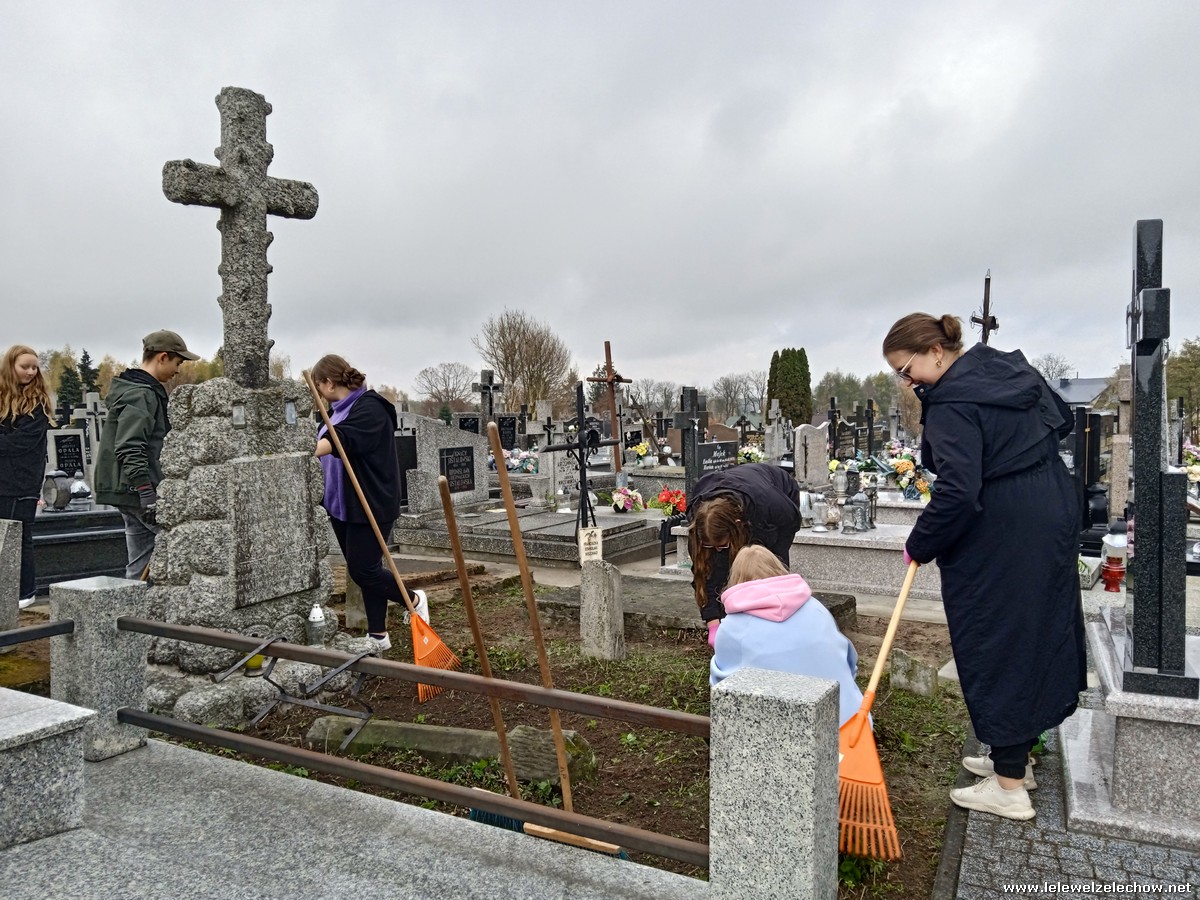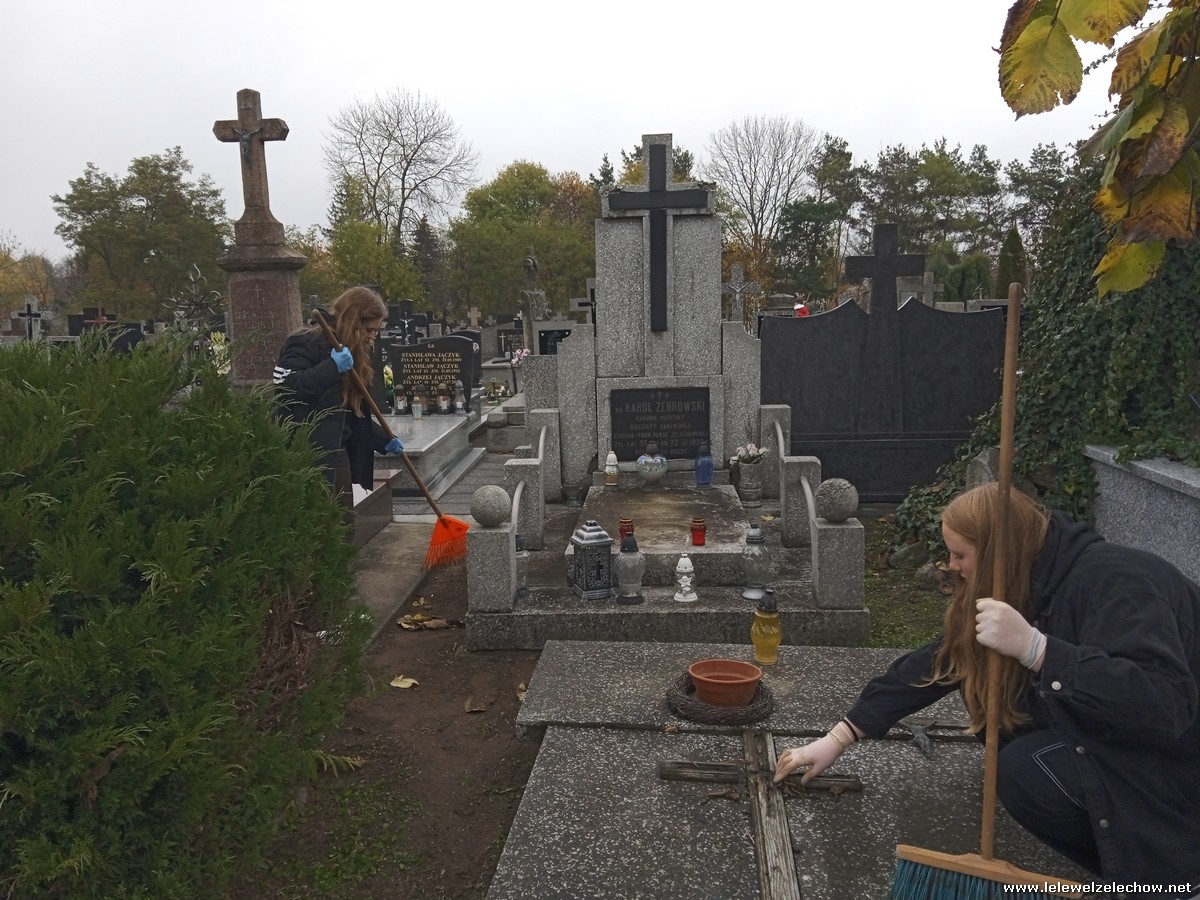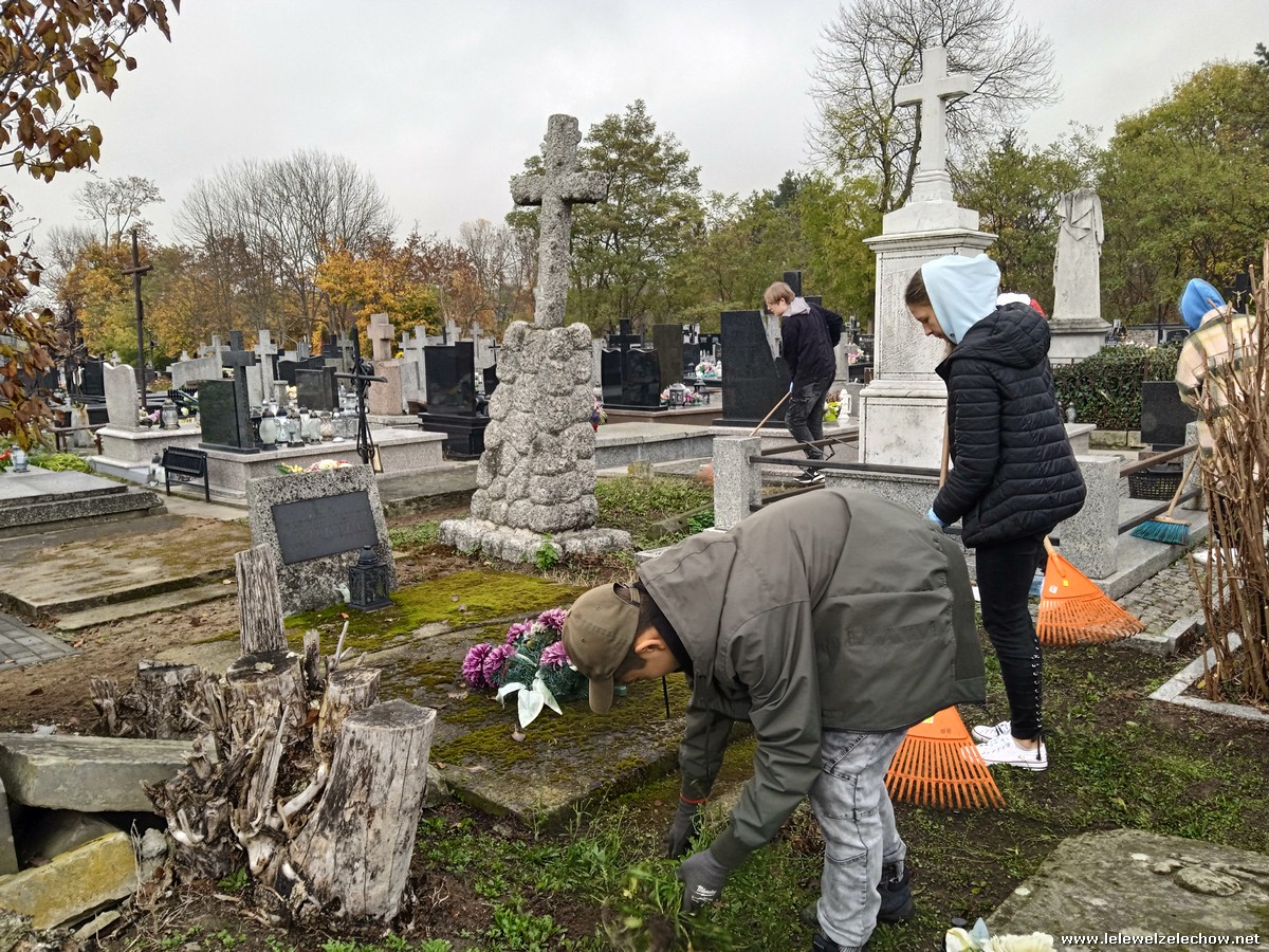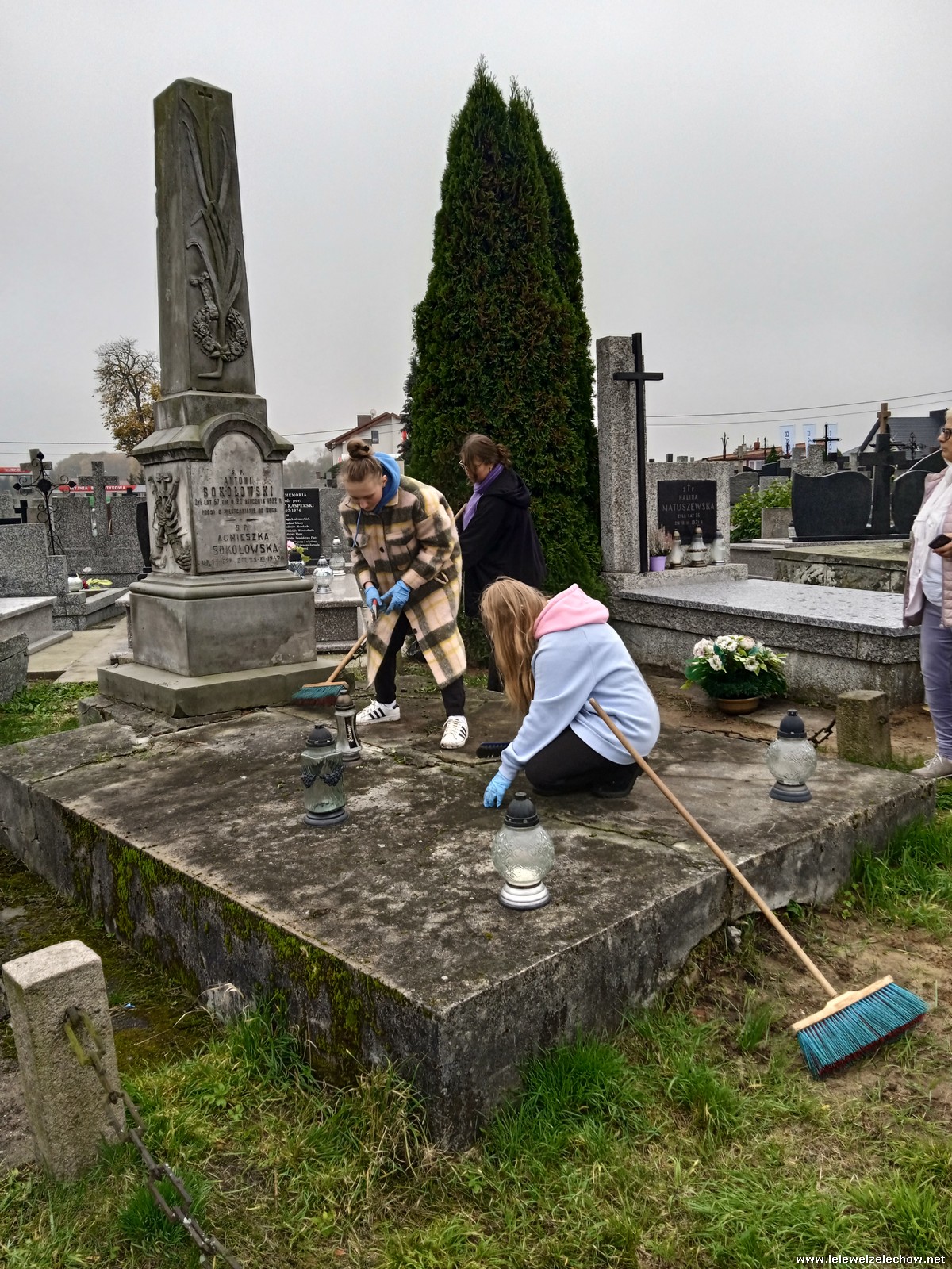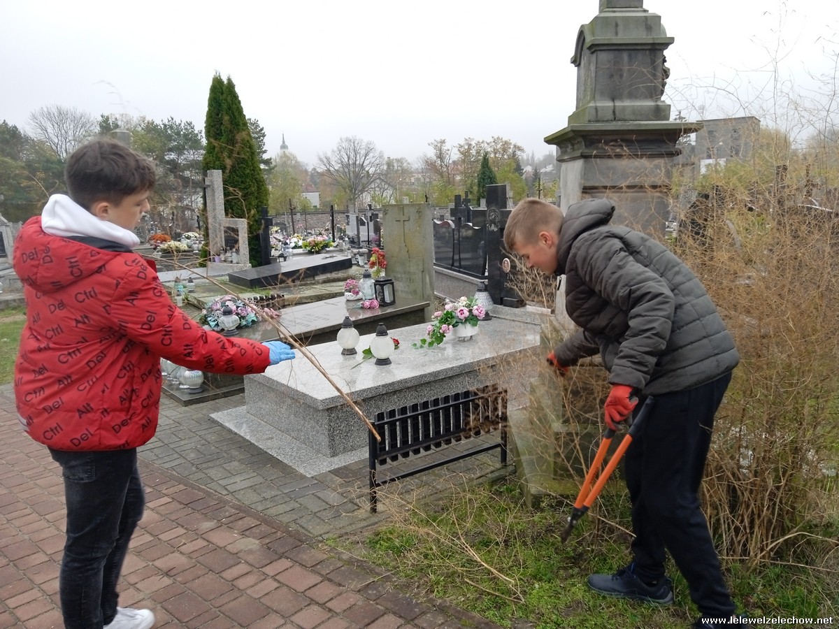 Kolejne w tym roku sprzątanie zabytkowych nagrobków na żelechowskim cmentarzu. Tym razem prace, pod opieka pani Urszuli Kobielus, wykonali uczniowie klas 1b i 1c. Wspólnie posprzątano ok. 20 grobów - nauczycieli, księży, lekarzy, społeczników... Uczniowie podczas pracy mogli poznać formy dawnych nagrobków sprzed ponad 100 lat oraz zapoznać się z postaciami zasłużonych dla społeczności lokalnej. Miło, że praca uczniów została dostrzeżona i pochwalona przez osoby odwiedzające w tym czasie nasz cmentarz. Porządkowanie zabytkowych nagrobków kontynuujemy niezmiennie od już 20 lat!