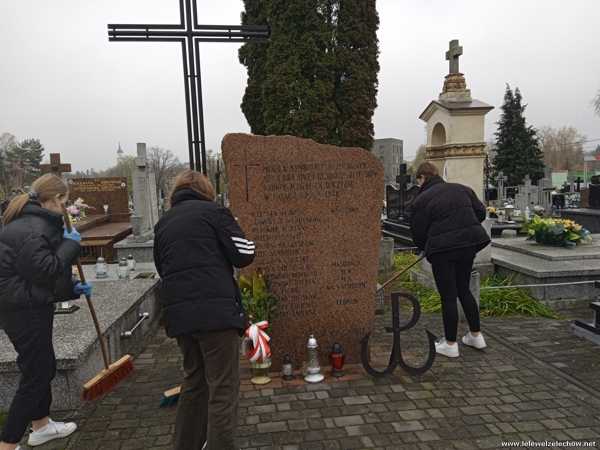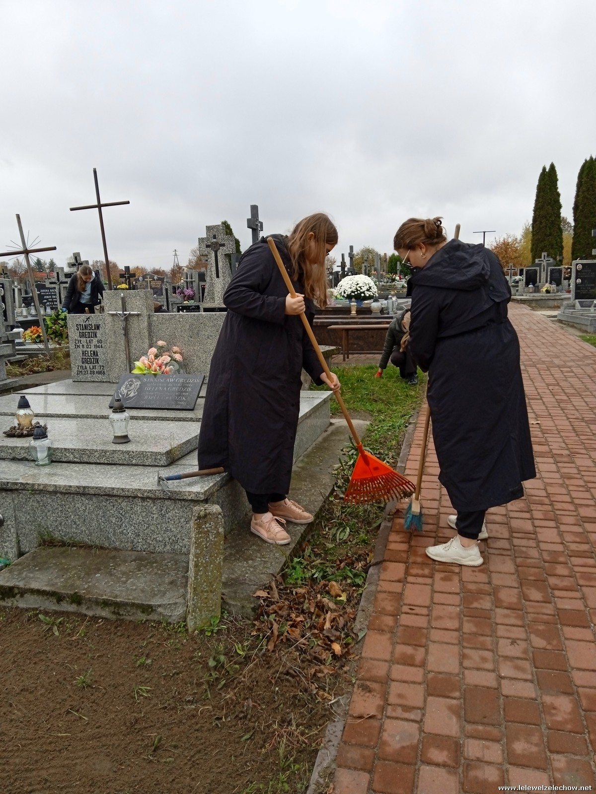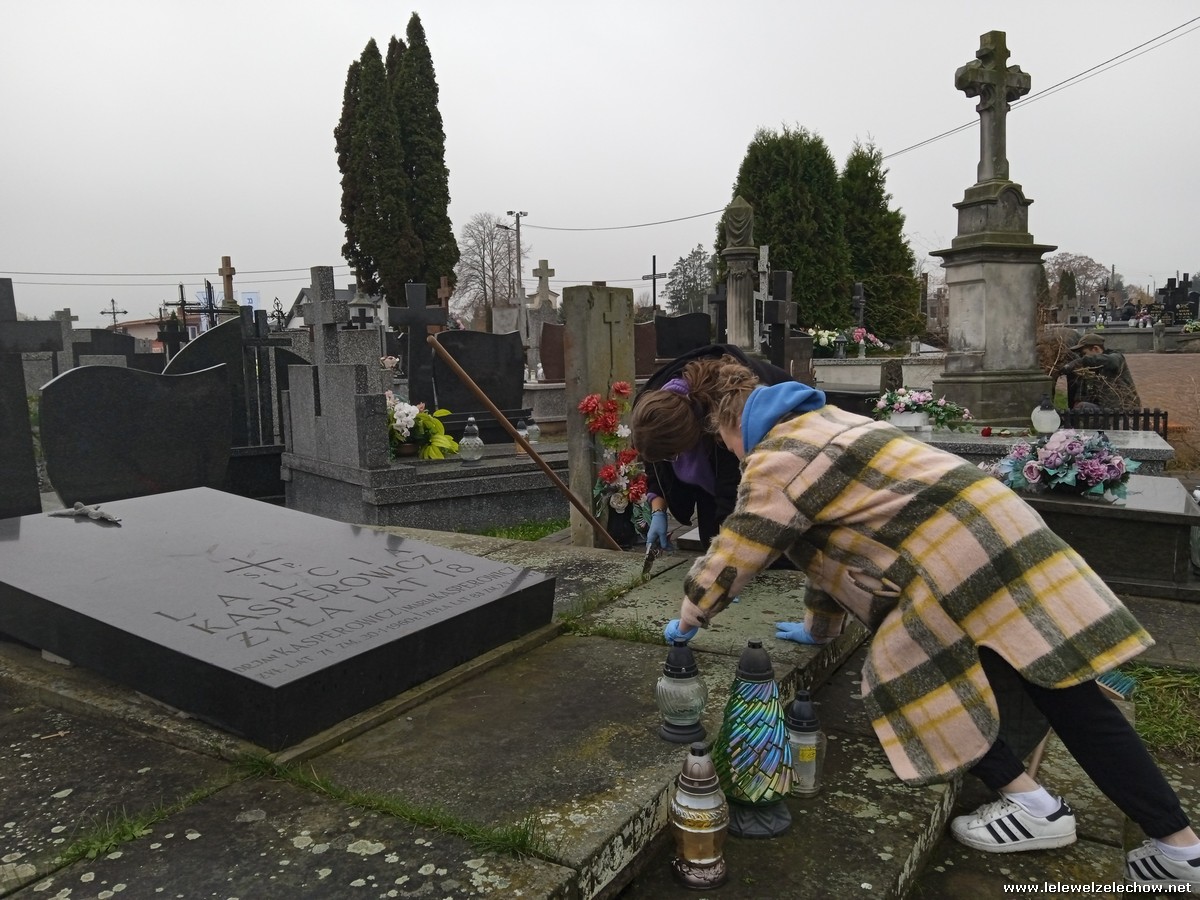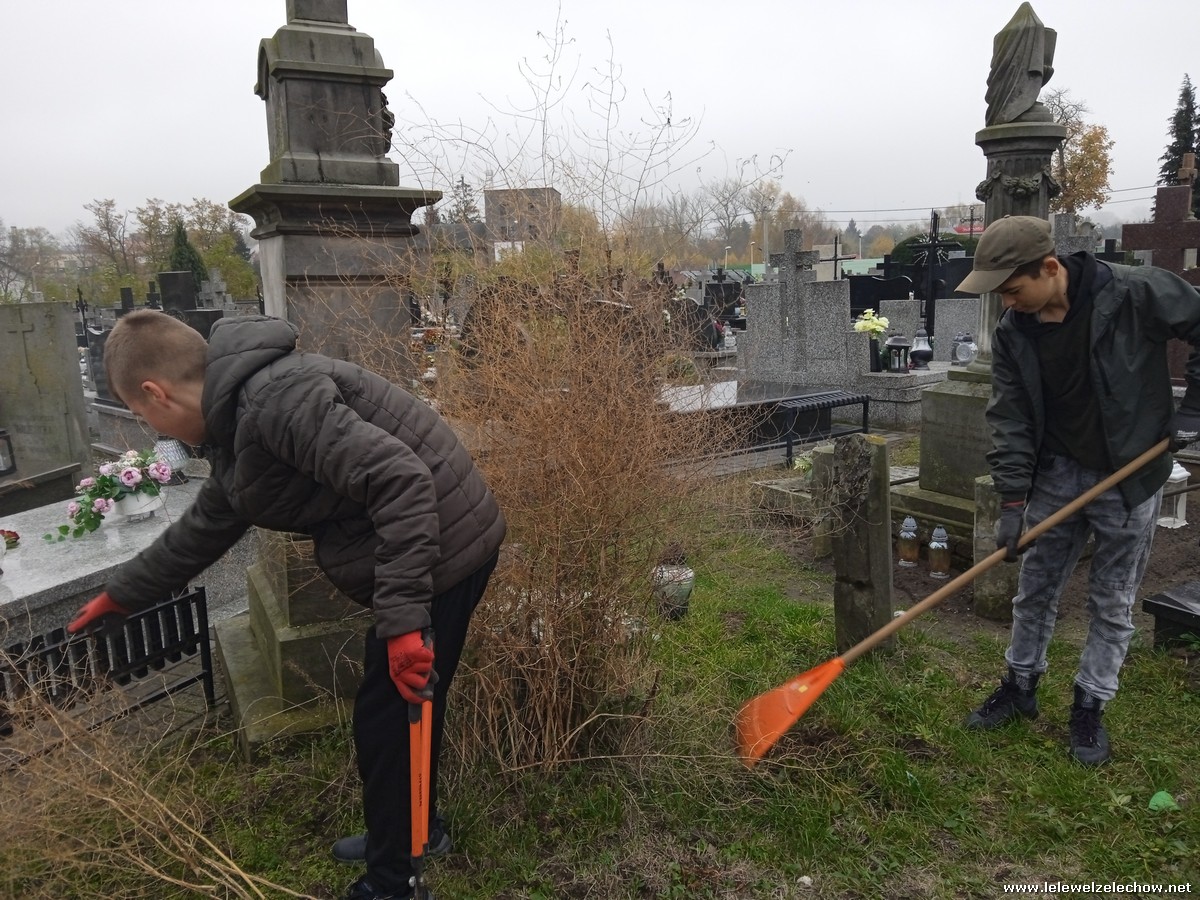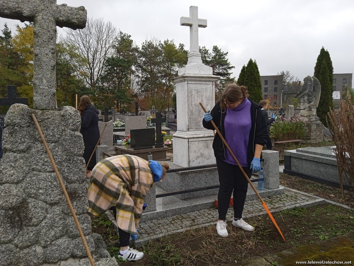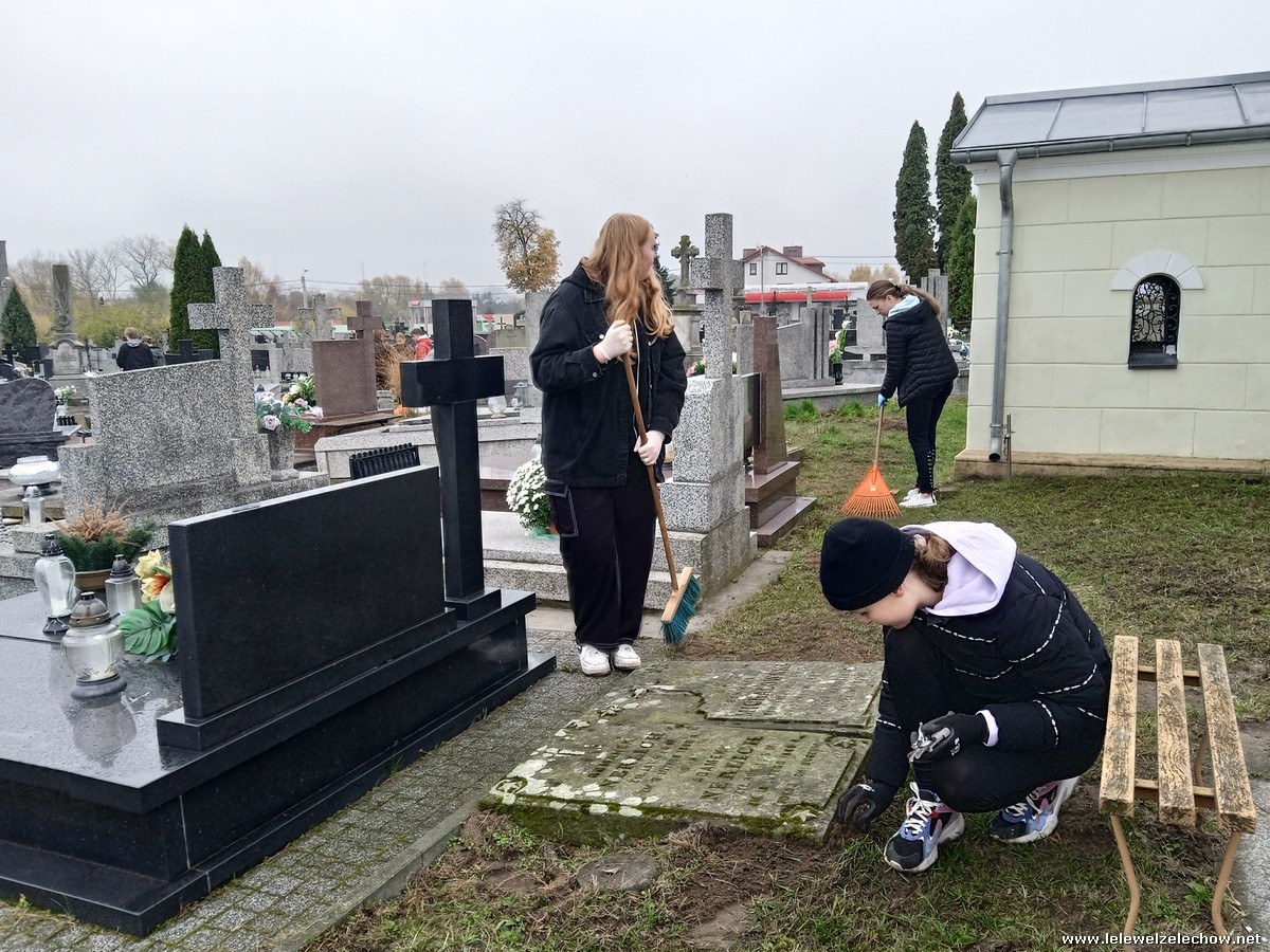 Kolejne w tym roku sprzątanie zabytkowych nagrobków na żelechowskim cmentarzu. Tym razem prace, pod opieka pani Urszuli Kobielus, wykonali uczniowie klas 1b i 1c. Wspólnie posprzątano ok. 20 grobów - nauczycieli, księży, lekarzy, społeczników... Uczniowie podczas pracy mogli poznać formy dawnych nagrobków sprzed ponad 100 lat oraz zapoznać się z postaciami zasłużonych dla społeczności lokalnej. Miło, że praca uczniów została dostrzeżona i pochwalona przez osoby odwiedzające w tym czasie nasz cmentarz. Porządkowanie zabytkowych nagrobków kontynuujemy niezmiennie od już 20 lat!