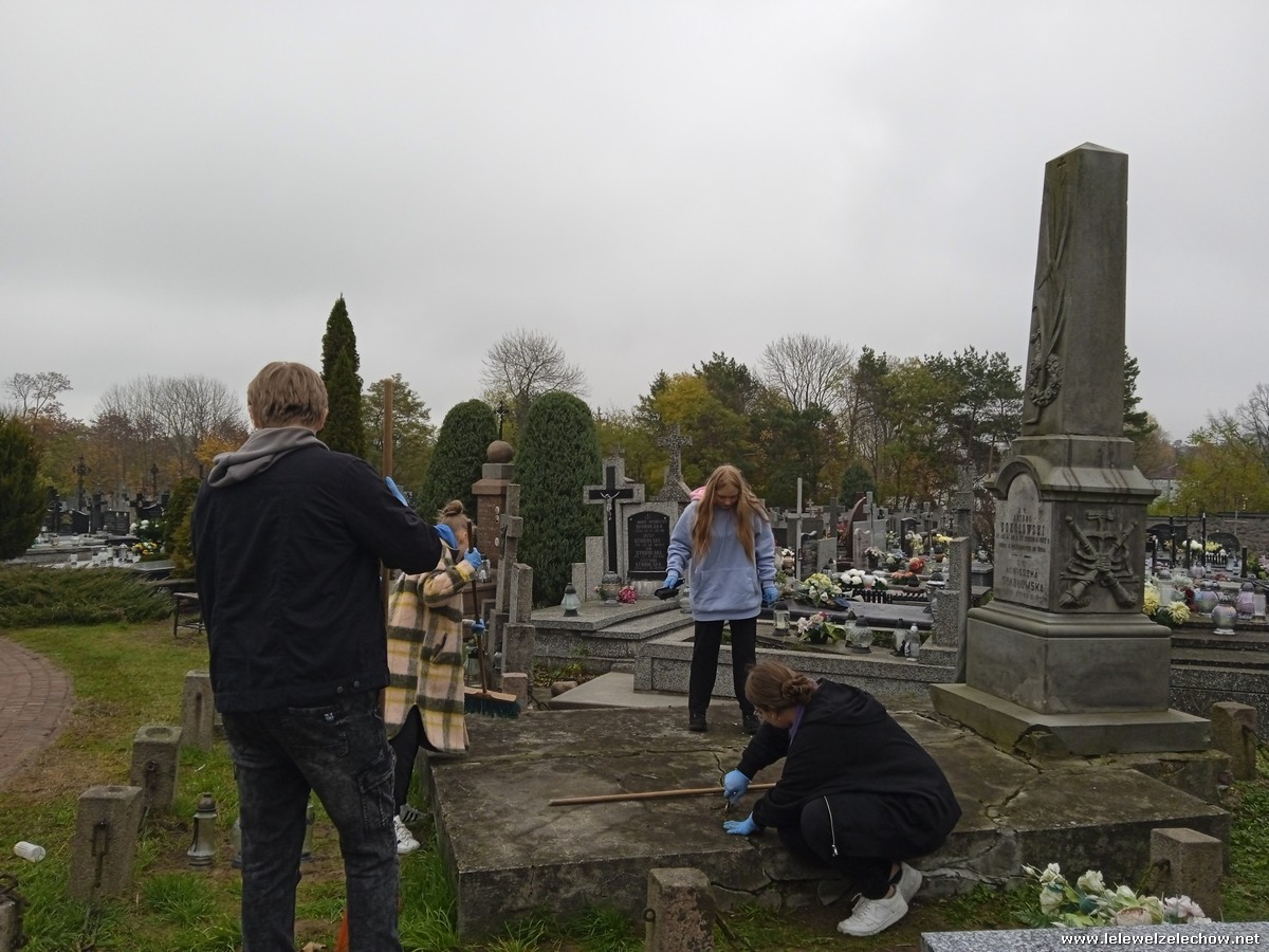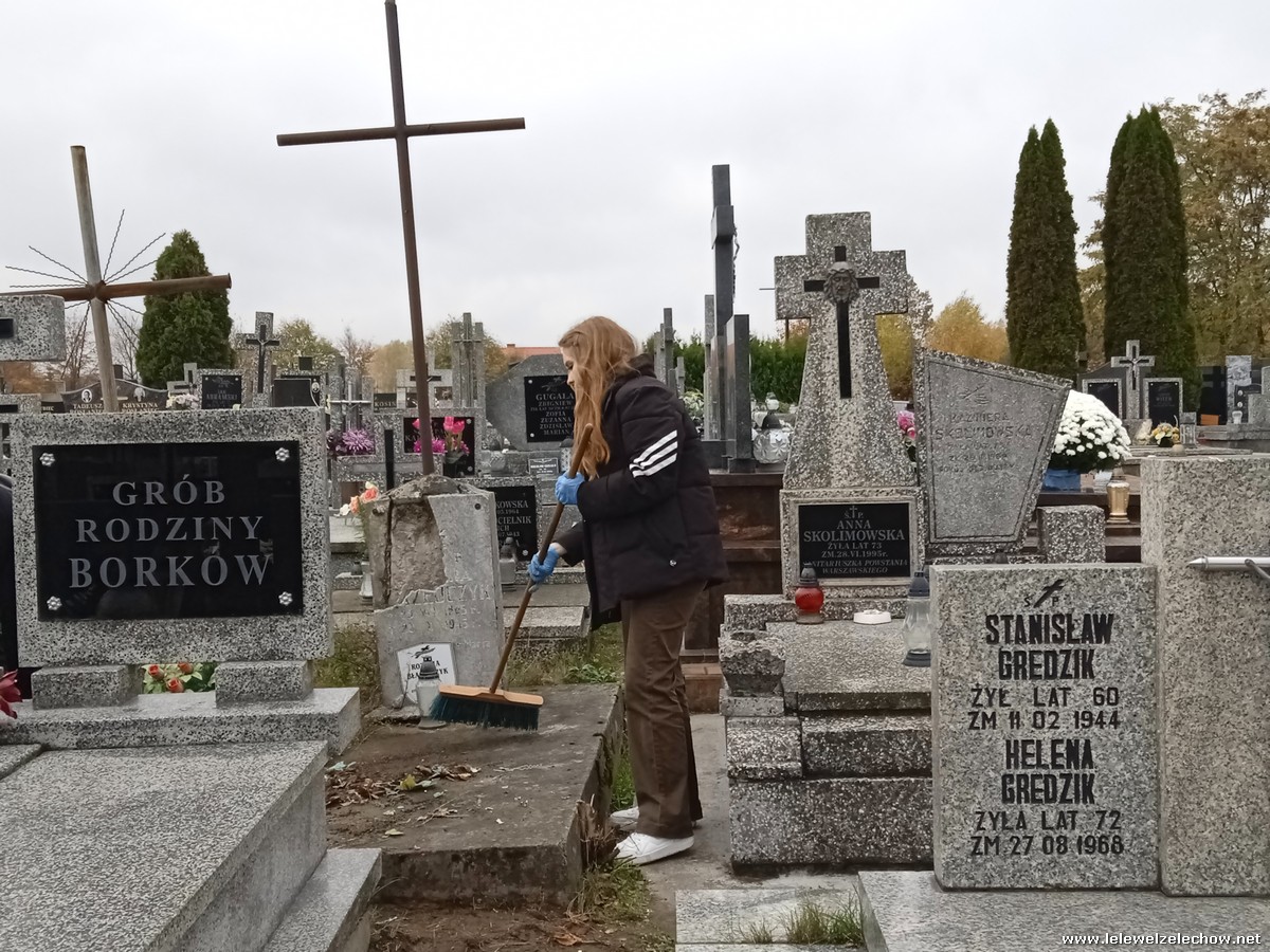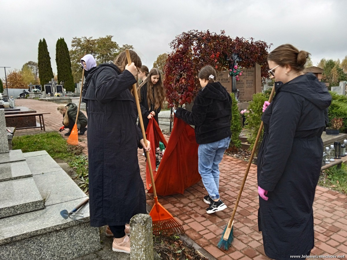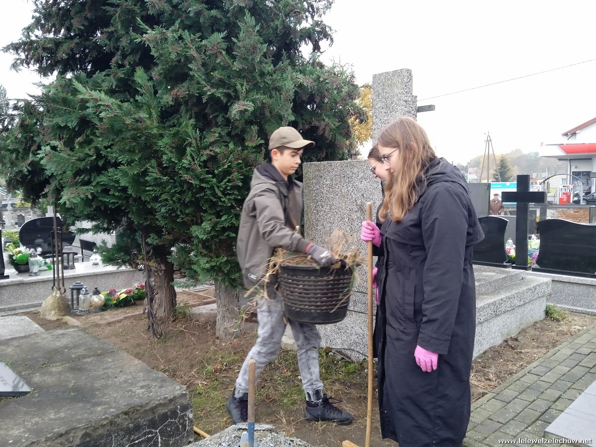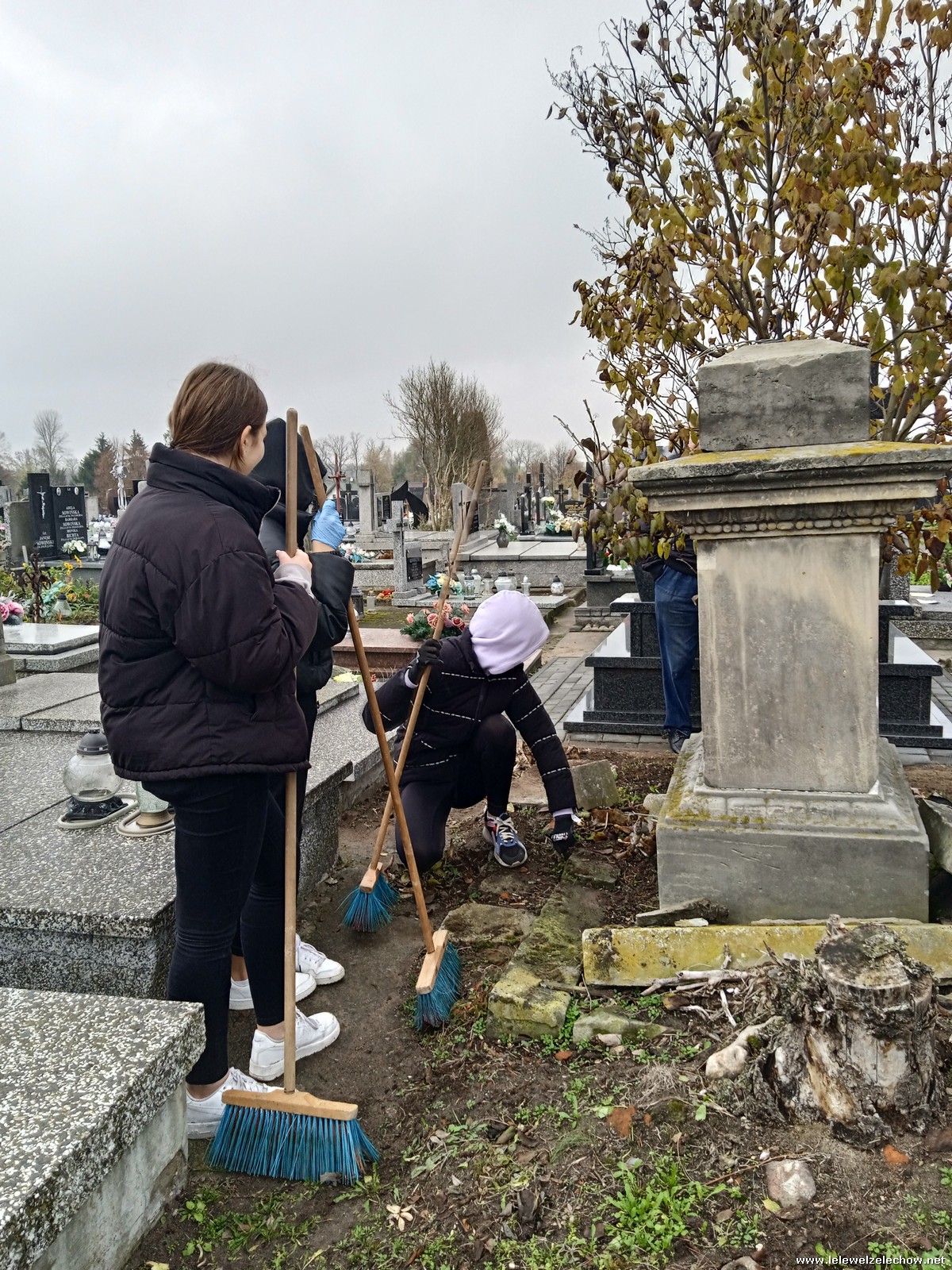 Kolejne w tym roku sprzątanie zabytkowych nagrobków na żelechowskim cmentarzu. Tym razem prace, pod opieka pani Urszuli Kobielus, wykonali uczniowie klas 1b i 1c. Wspólnie posprzątano ok. 20 grobów - nauczycieli, księży, lekarzy, społeczników... Uczniowie podczas pracy mogli poznać formy dawnych nagrobków sprzed ponad 100 lat oraz zapoznać się z postaciami zasłużonych dla społeczności lokalnej. Miło, że praca uczniów została dostrzeżona i pochwalona przez osoby odwiedzające w tym czasie nasz cmentarz. Porządkowanie zabytkowych nagrobków kontynuujemy niezmiennie od już 20 lat!