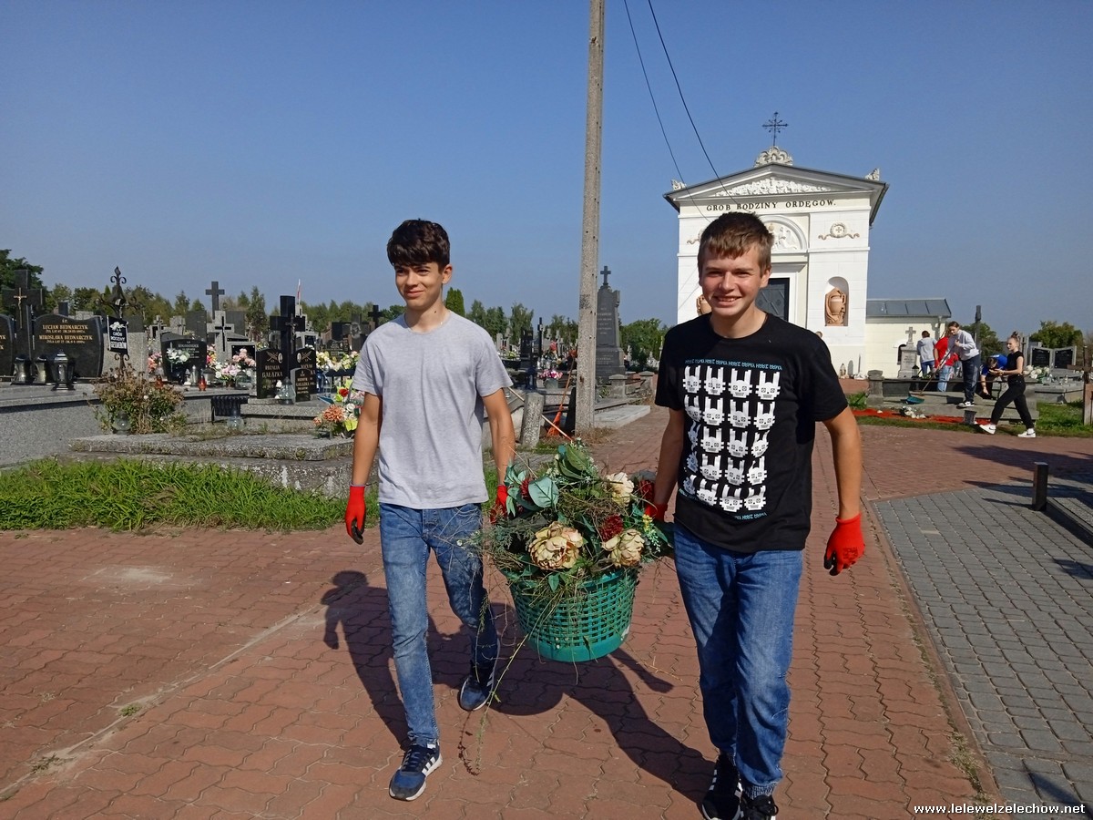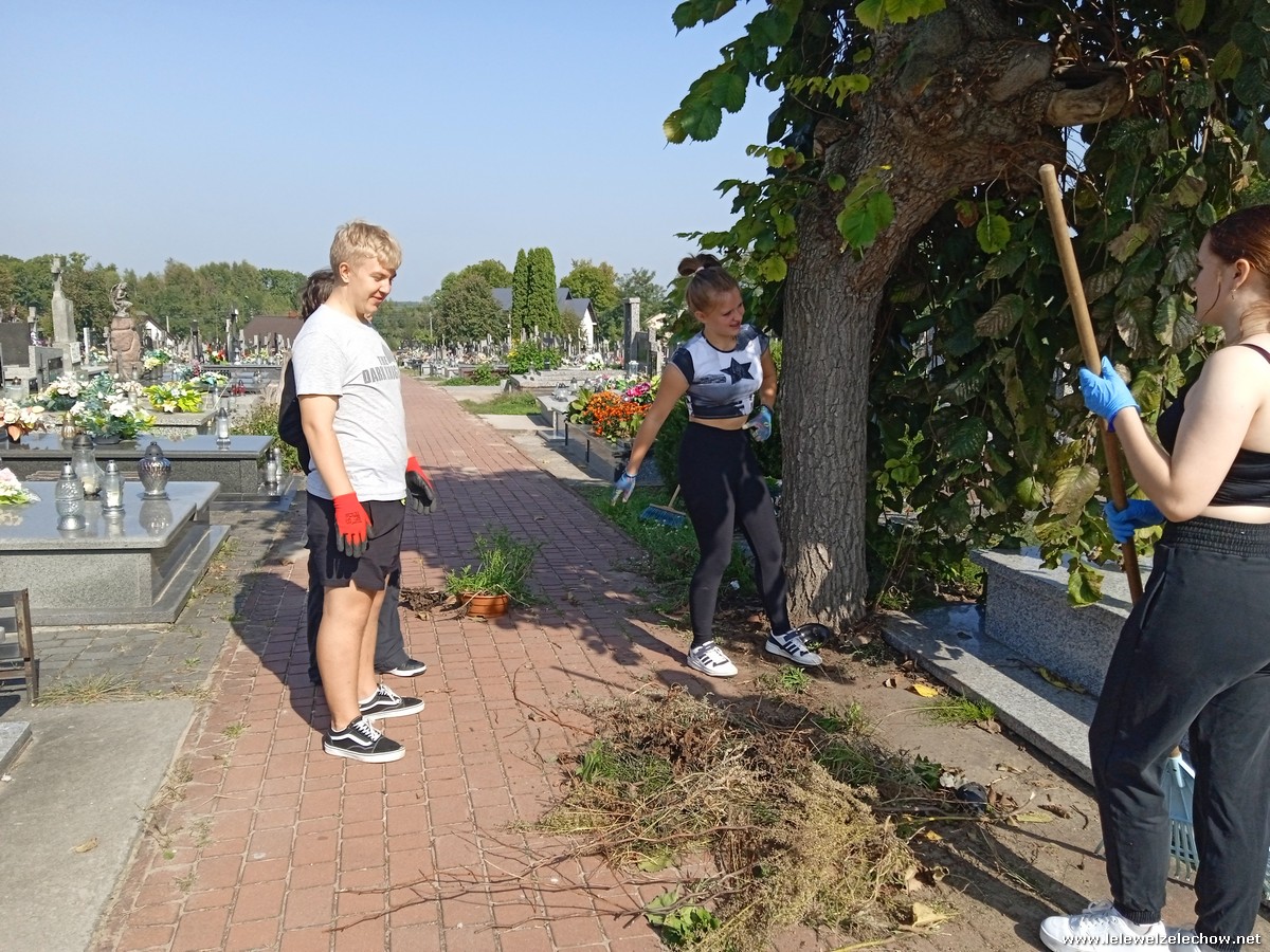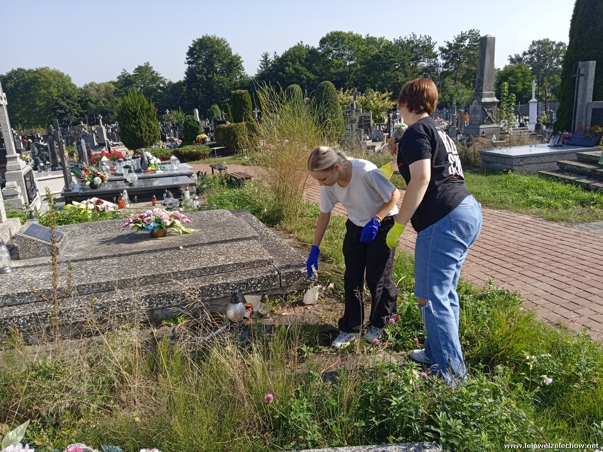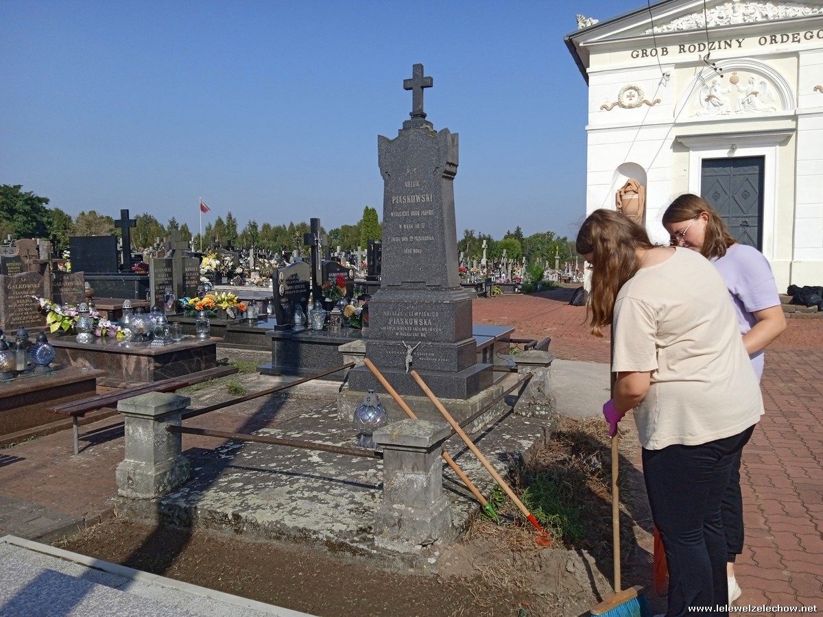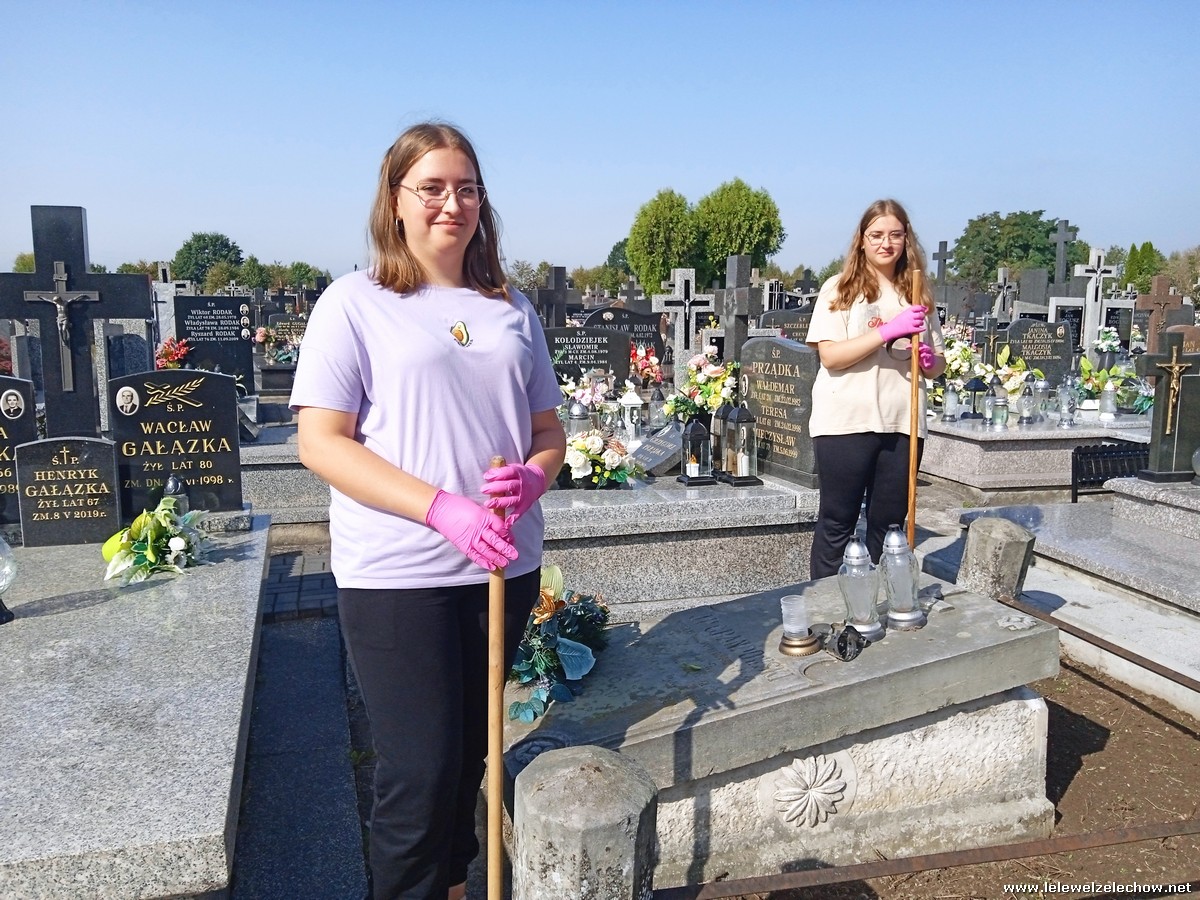 Tradycyjne sprzątanie zabytkowych nagrobków na cmentarzu w Żelechowie. Przy sprzyjającej wrześniowo-letniej pogodzie prace porządkowe, pod kierunkiem p.Urszuli Kobielus, wykonali uczniowie klas 2ab.
