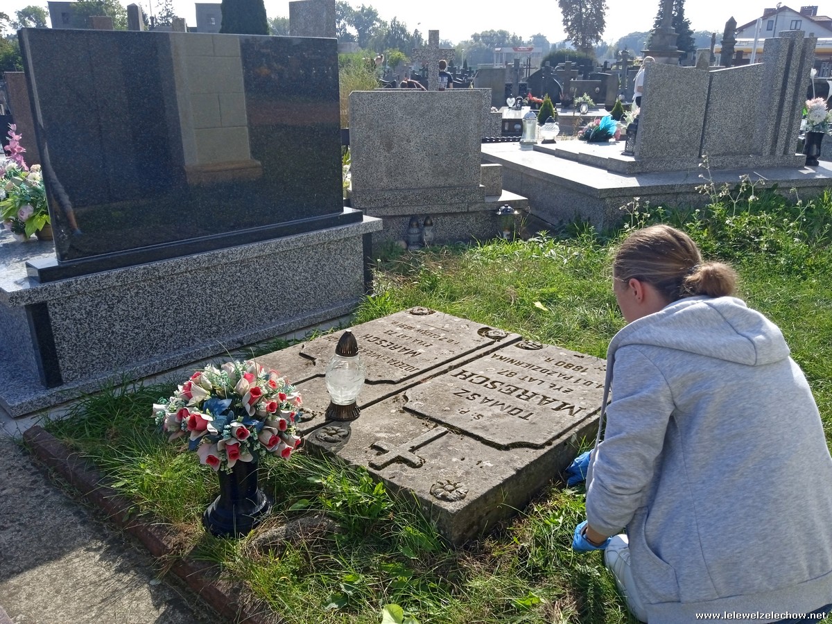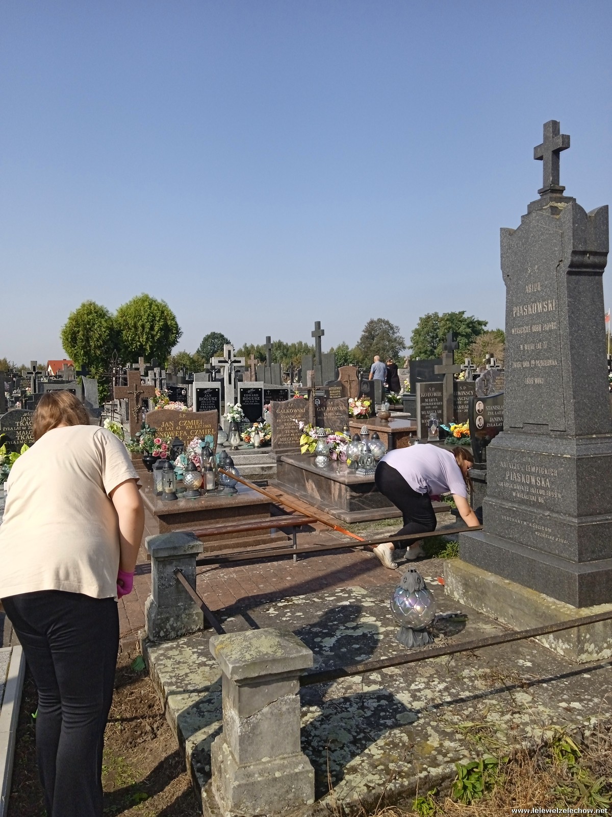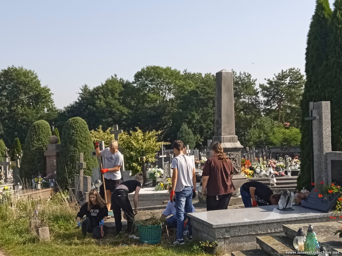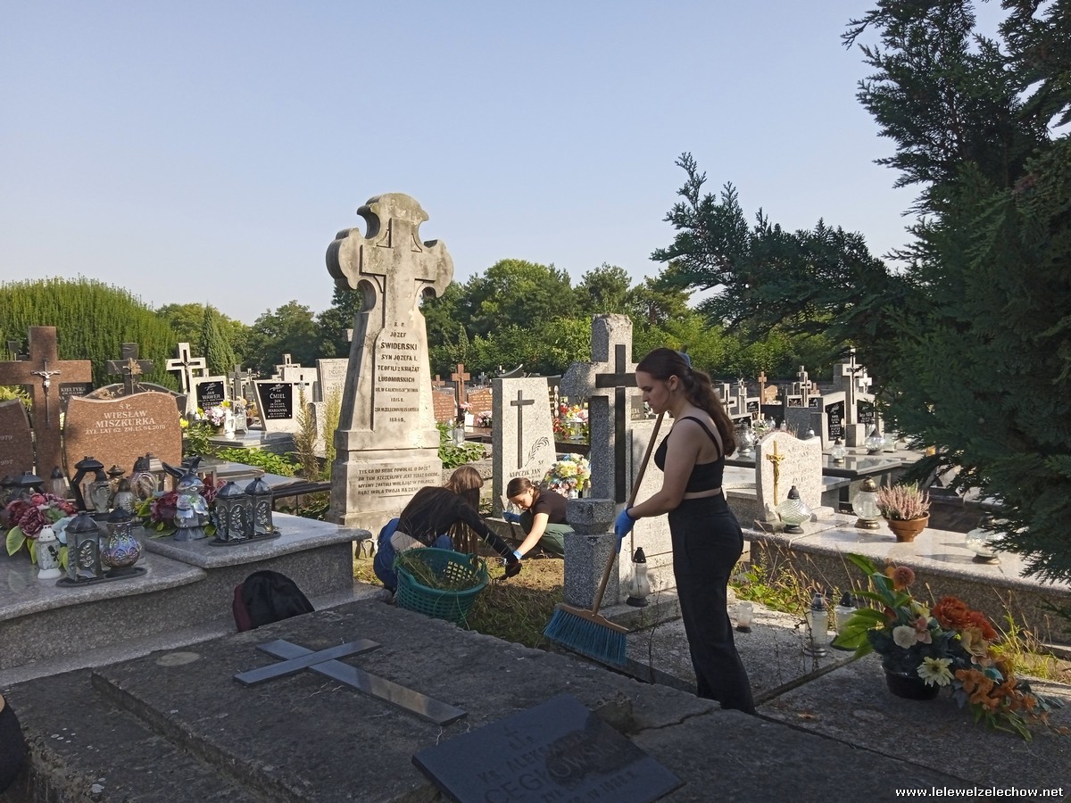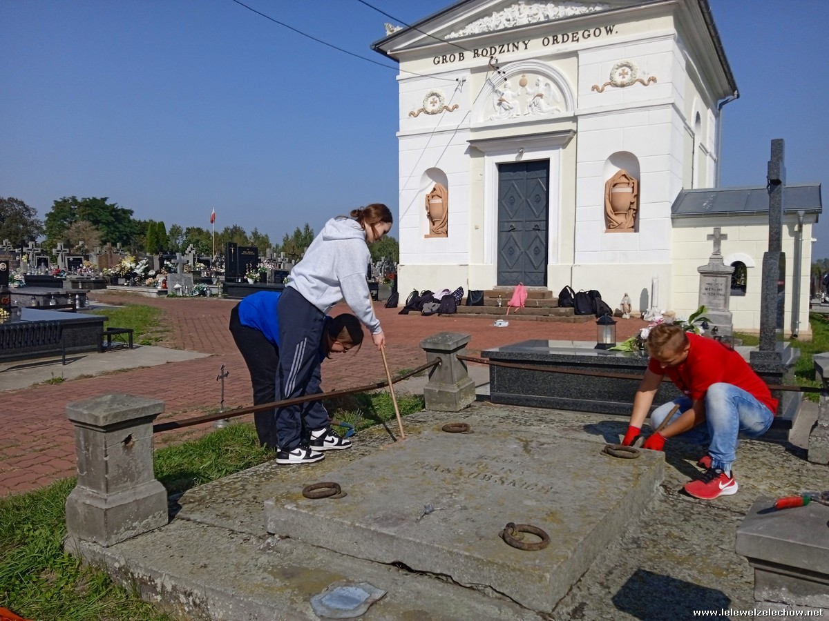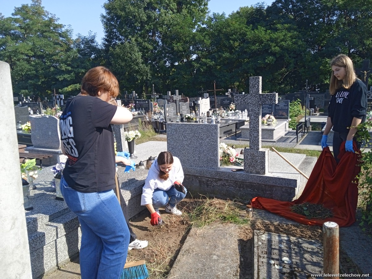 Tradycyjne sprzątanie zabytkowych nagrobków na cmentarzu w Żelechowie. Przy sprzyjającej wrześniowo-letniej pogodzie prace porządkowe, pod kierunkiem p.Urszuli Kobielus, wykonali uczniowie klas 2ab.