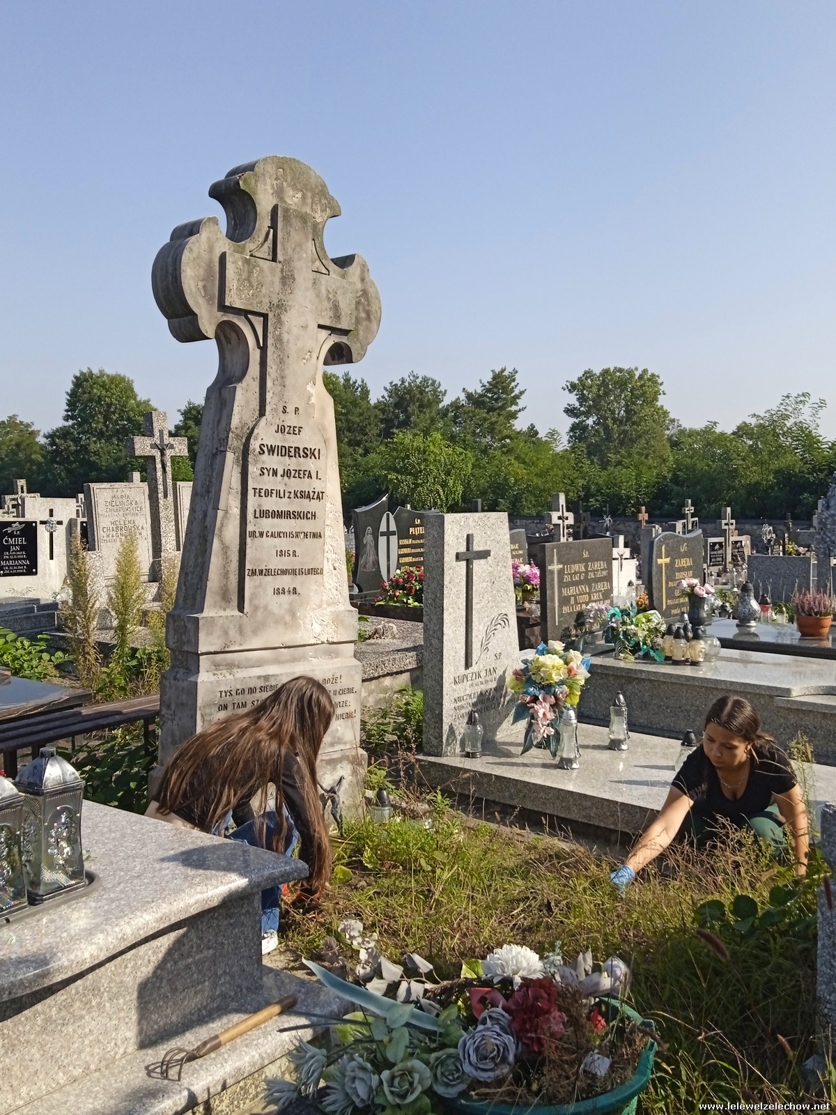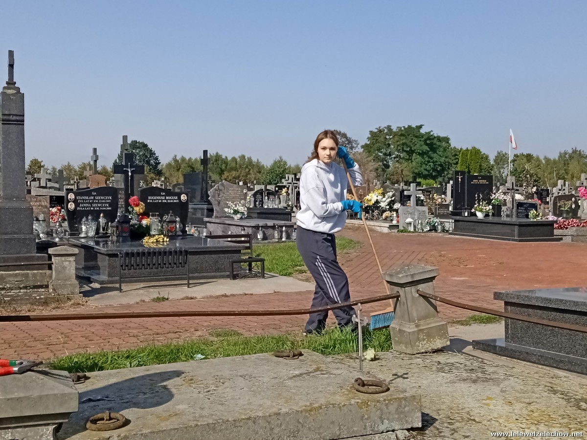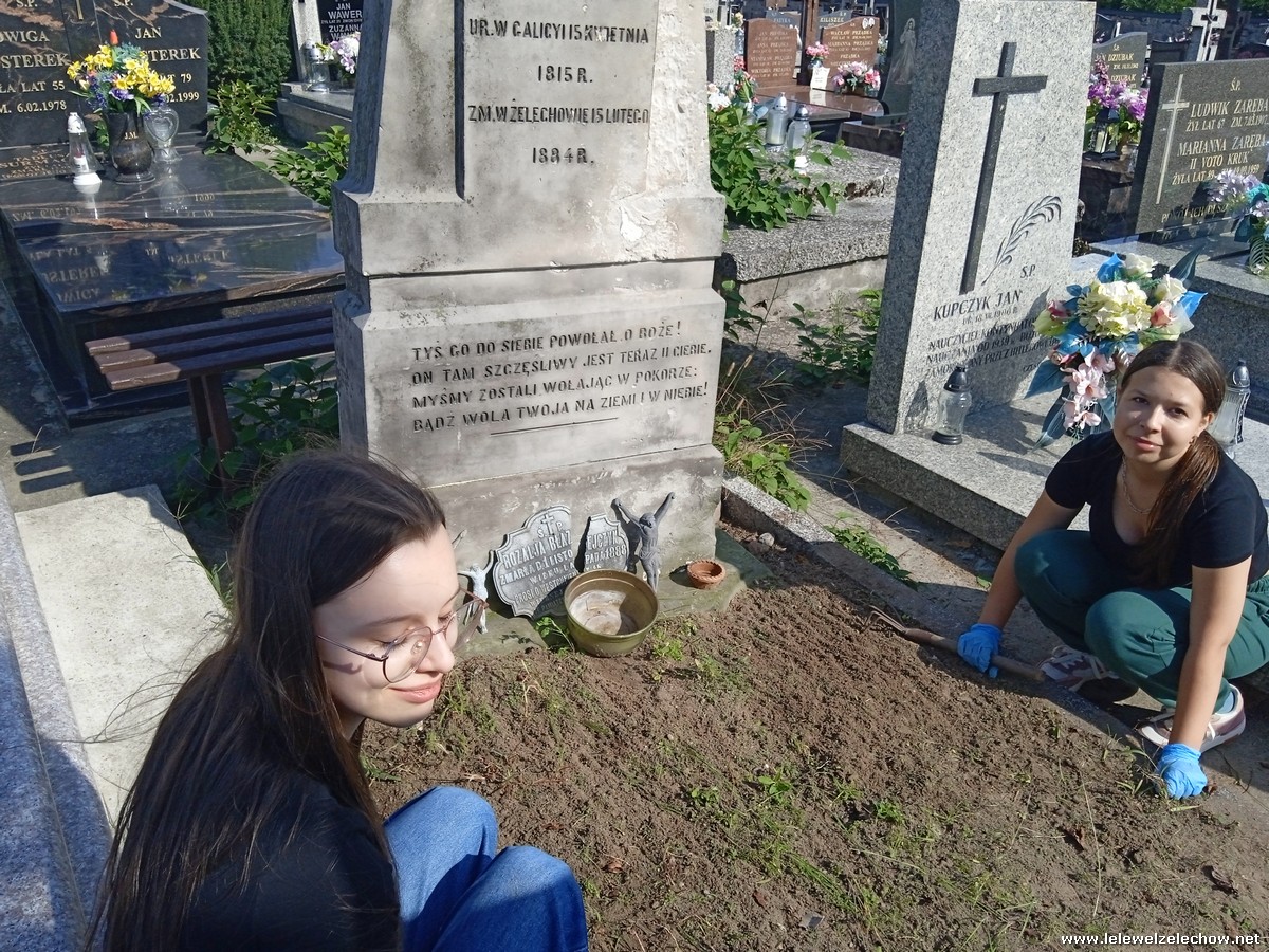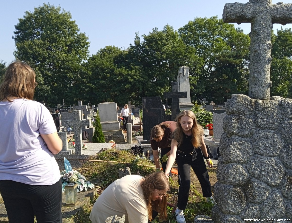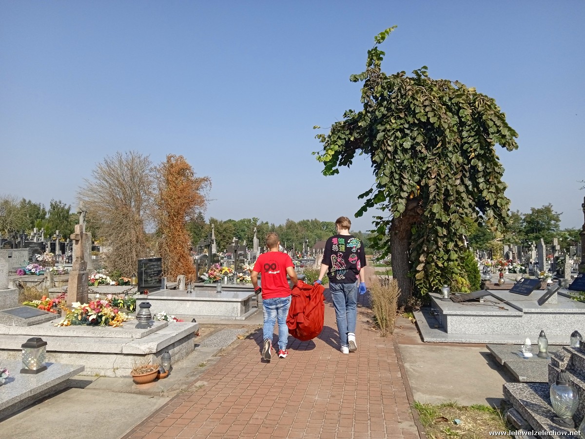 Tradycyjne sprzątanie zabytkowych nagrobków na cmentarzu w Żelechowie. Przy sprzyjającej wrześniowo-letniej pogodzie prace porządkowe, pod kierunkiem p.Urszuli Kobielus, wykonali uczniowie klas 2ab.