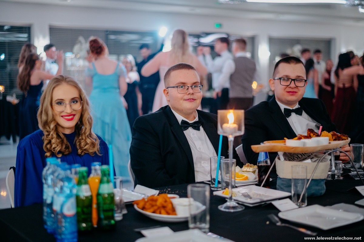 Wszyscy uczestnicy balu bawili się do białego rana w rytm starych i nowych przebojów granych przez zespół Vers. Wspólne zdjęcia i rozmowy przy stołach tworzyły atmosferę bliskości i wspólnoty. Maturzyści, świadomi tego, że to jeden z ostatnich momentów w takim gronie, spędzili ten wyjątkowy czas beztrosko i w pełni szczęścia. Ta noc z pewnością zostanie zapamiętana jako pełna radości i entuzjazmu.