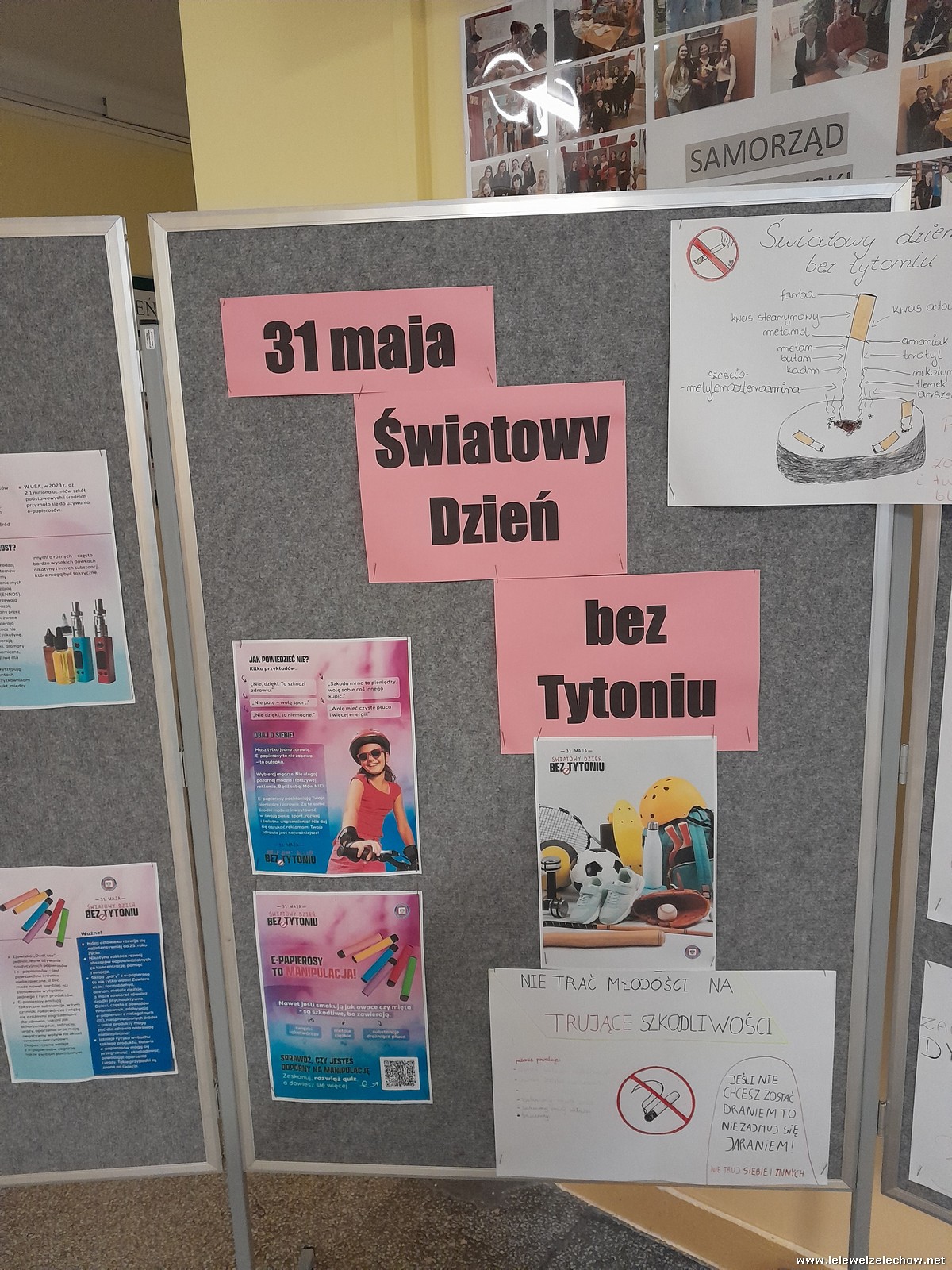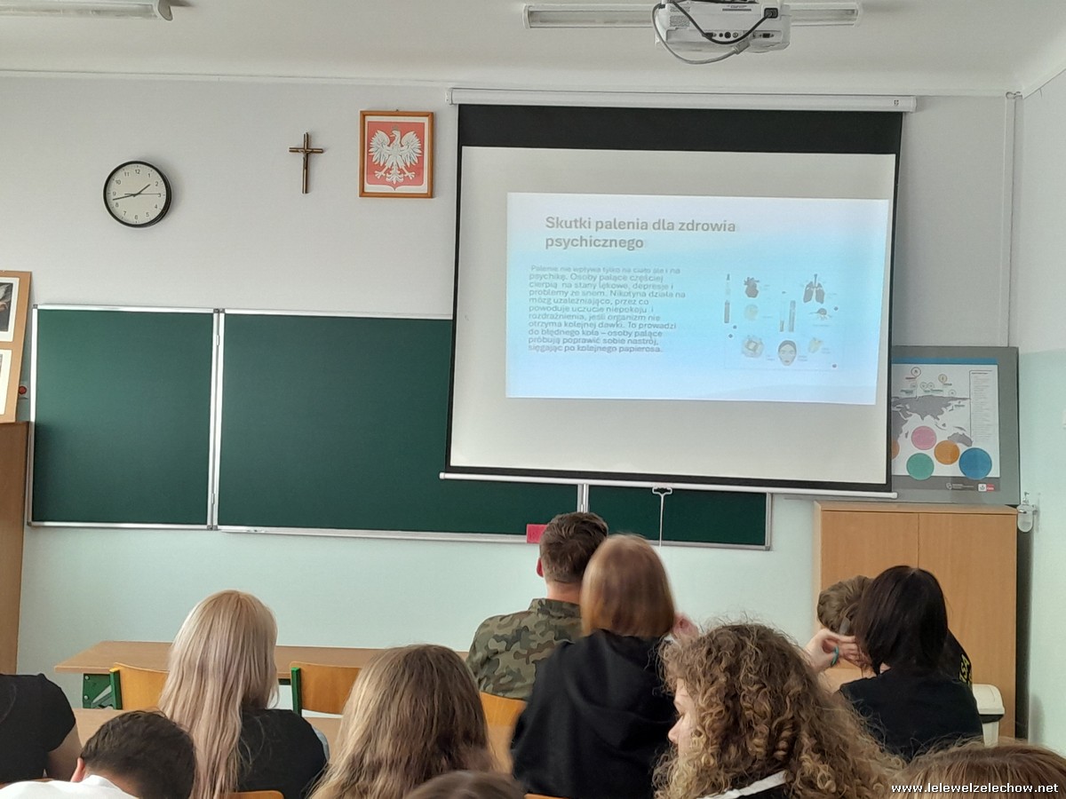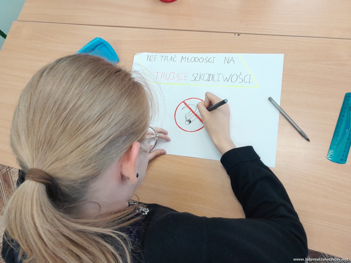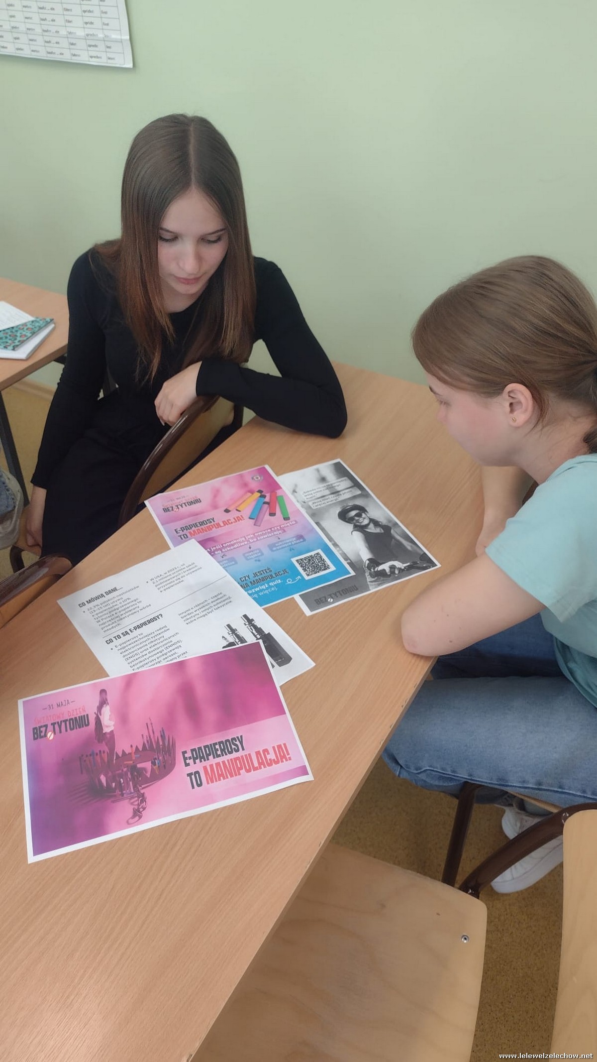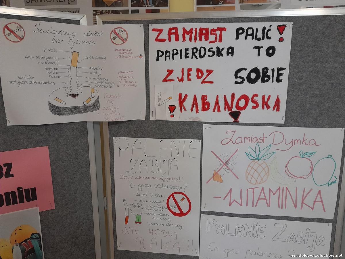 Na przełomie maja i czerwca w naszym liceum trwała akcja na temat szkodliwości palenia i e-papierosów. Z tej okazji na szkolnym holu przygotowano gazetkę na temat konsekwencji palenia oraz jego zdrowych alternatyw. W klasach przeprowadzono lekcje profilaktyczne oraz liczne pogadanki. Uczniowie dowiedzieli się dlaczego tytoń jest niebezpieczny dla zdrowia. Młodzież w grupach wykonywała plakaty promujące życie bez tytoniu, rozwiązywała quizy na temat szkodliwości palenia, a także zastanawiała się nad tym dlaczego e-papierosy to manipulacja. Wszystkie te działania odbyły się pod kierunkiem p. pedagog Anny Majewskiej oraz wychowawcy świetlicy Anny Czarneckiej – Górskiej.
