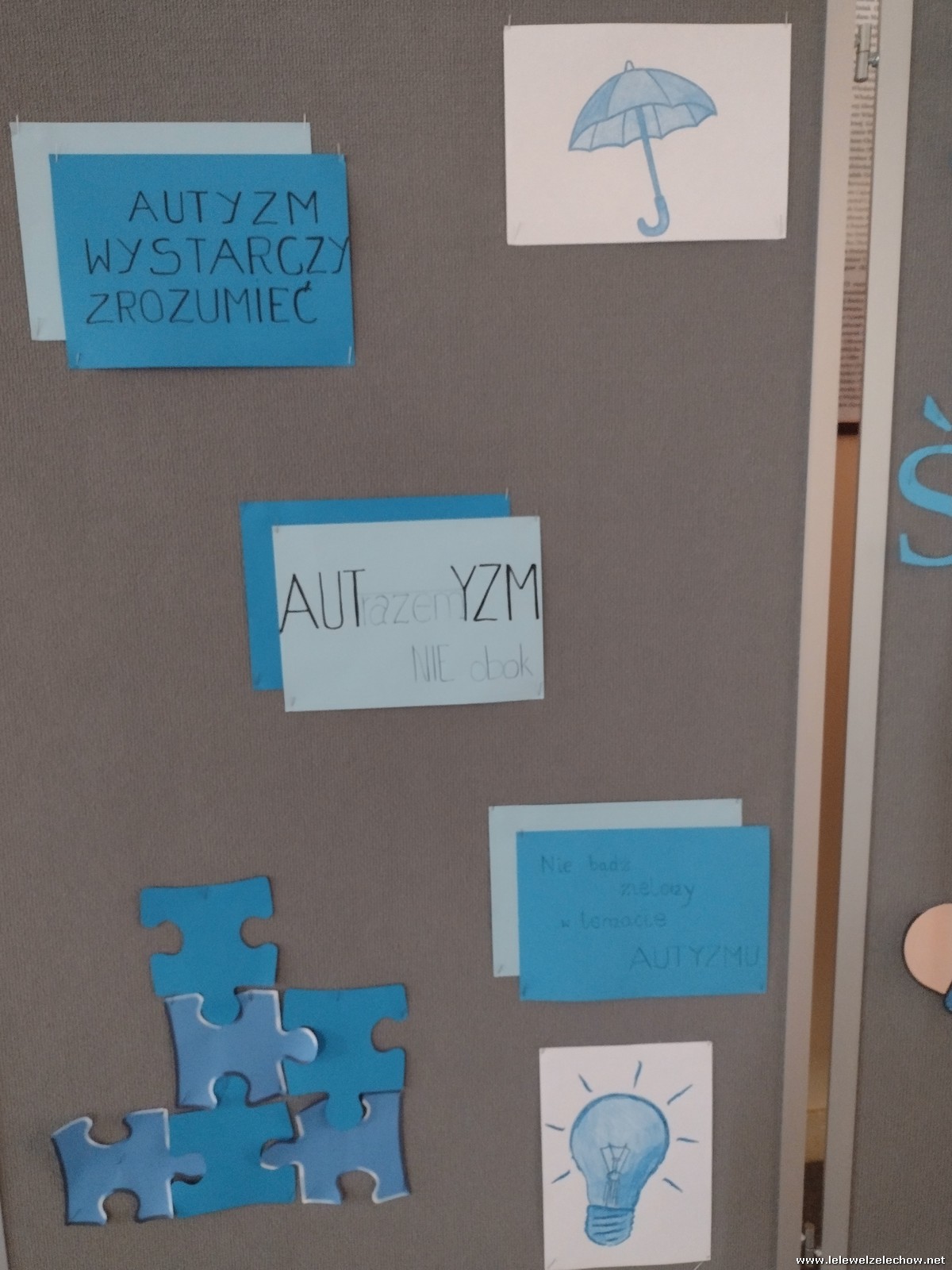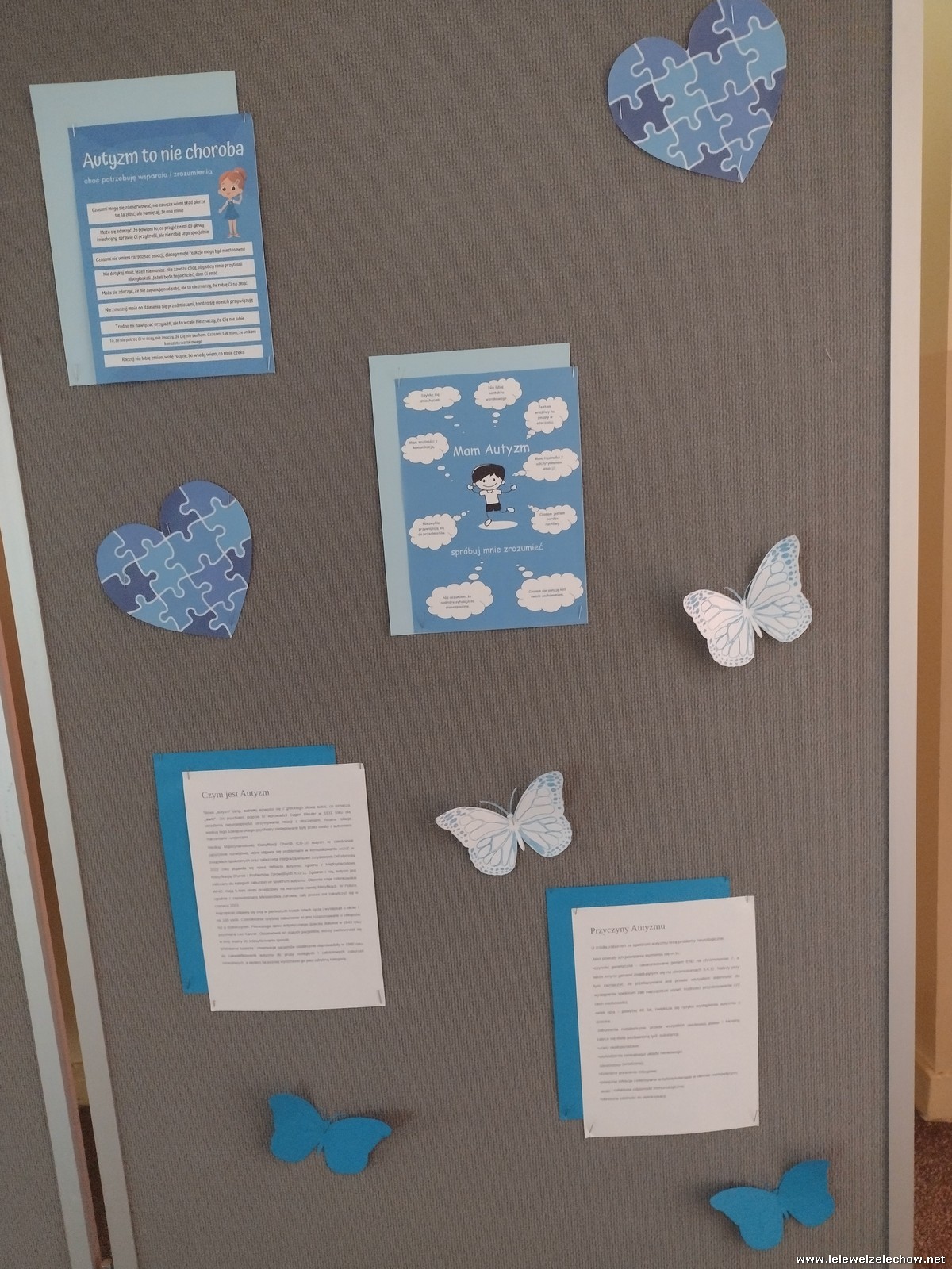 Z tej okazji w naszej szkole przygotowano gazetkę z najważniejszymi informacjami dotyczącymi osób autystycznych oraz trudności z jakimi zmagają się takie osoby. Na znak solidarności z osobami autystycznymi nauczyciele i uczniowie założyli ubrania w kolorze niebieskim.