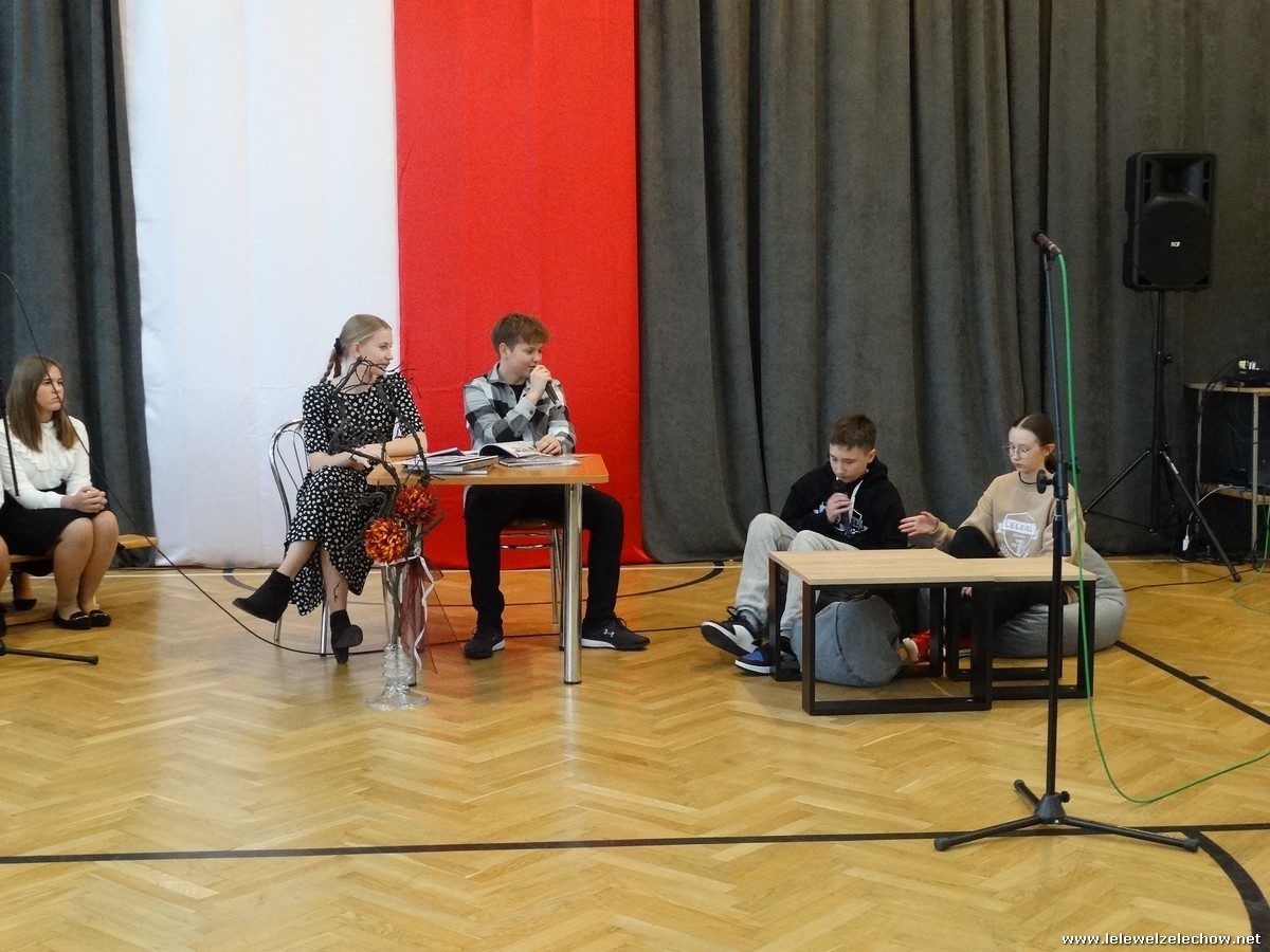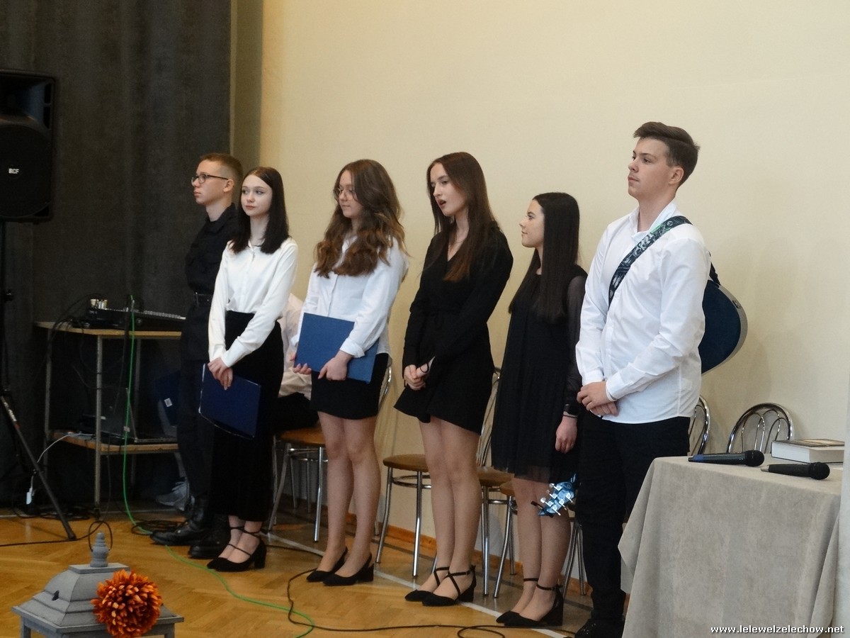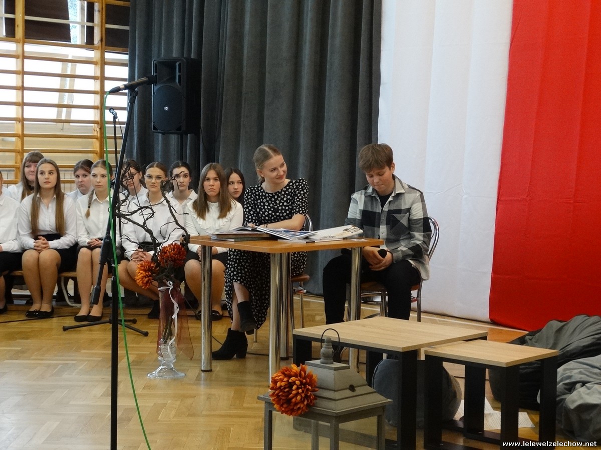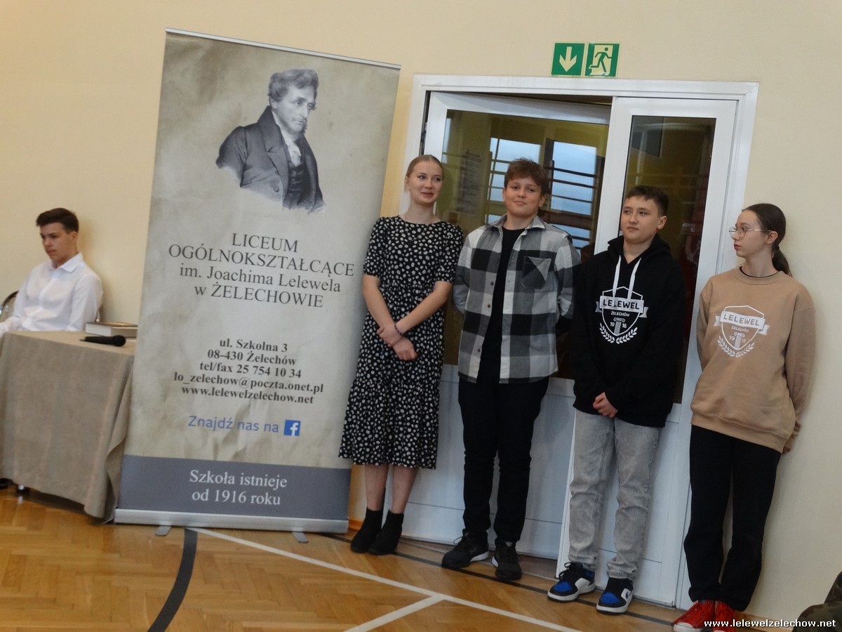 Tradycyjnie klasy pierwsze po uroczystości ślubowania przedstawiły ciekawy program poświęcony Patronowi szkoły - Joachimowi Lelewelowi oraz historii szkoły. W tym roku przypomniano również najważniejsze cytaty naszego Patrona, które ciągle aktualne, mogą być przesłaniem dla współczesnej młodzieży. Sama historia szkoły została zaprezentowana w sposób humorystyczny. Wspomnienia “rodziców” w scence domowej, przeplatały się z wrażeniami współczesnych licealistów. Program został ubogacony piosenkami w wykonaniu zespołu wokalnego klas pierwszych (wspomaganego akompaniamentem Dominika) oraz solistek z klas trzecich - Natalii i Marysi. W trakcie programu kadeci klas pierwszych zaśpiewali piosenkę marszową “Kalina malina”. Program przygotowały wychowawczynie klas pierwszych: Urszula Kobielus, Anna Czarnecka - Górska oraz Joanna Baraniecka.