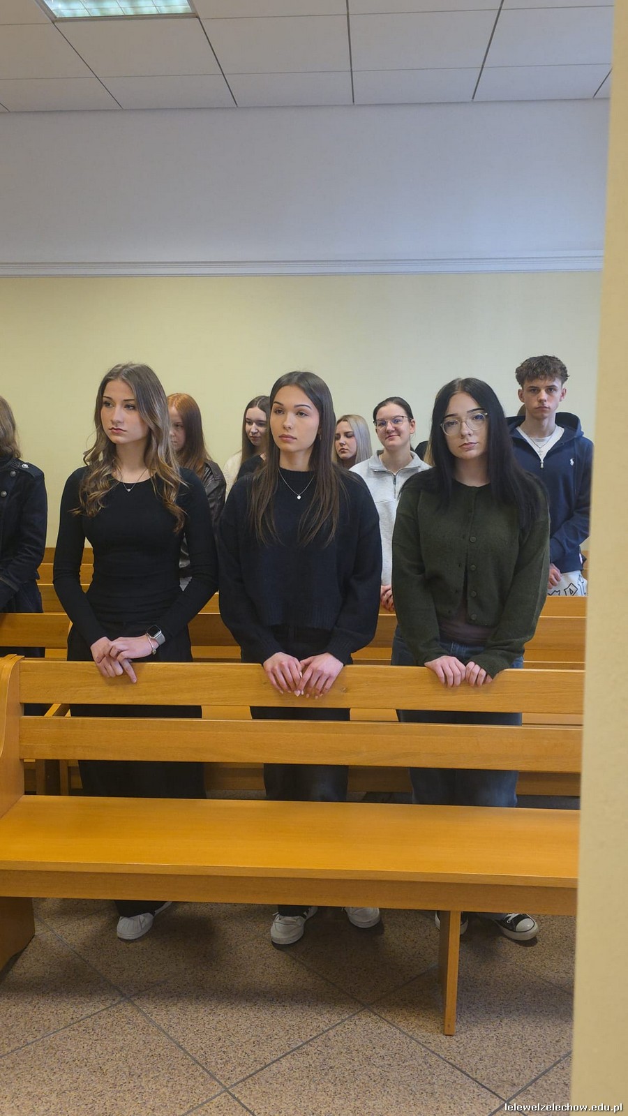 Uczniowie klasy 3a wzięli udział w wyjątkowych zajęciach z zakresu wiedzy o społeczeństwie, które odbyły się w murach Sądu Rejonowego w Garwolinie w ramach Dni Edukacji Prawnej. Celem wizyty było nie tylko poznanie struktury wymiaru sprawiedliwości, ale przede wszystkim praktyczne zrozumienie przebiegu procesu sądowego. Punktem kulminacyjnym wyjazdu była symulacja rozprawy karnej, dotyczącej zdarzenia o charakterze pobicia. Pod czujnym okiem Pani Wiceprezes Sądu Pani Sędzi Anny Przeworskiej-Babik uczniowie mieli okazję wcielić się w kluczowe role procesowe: