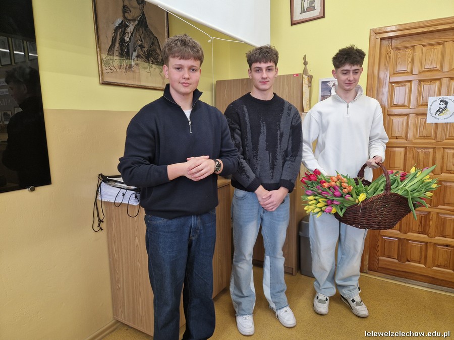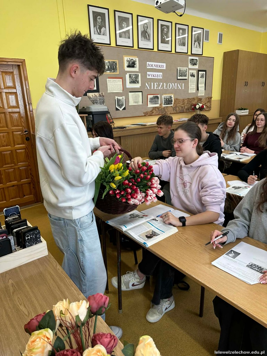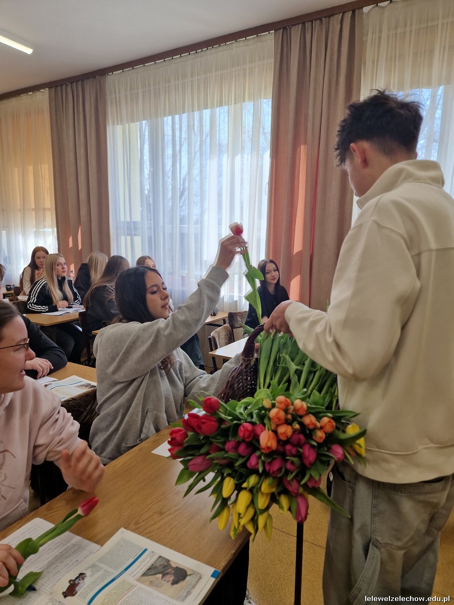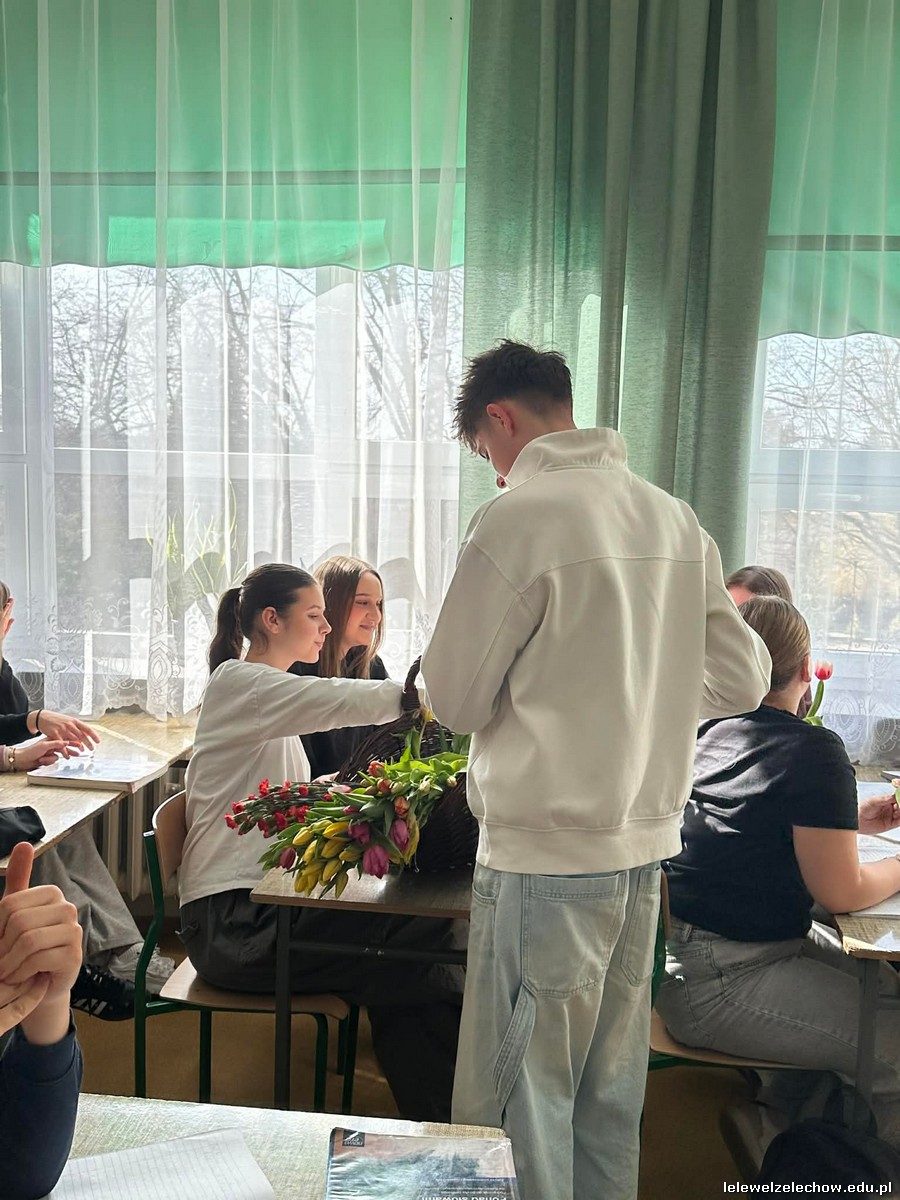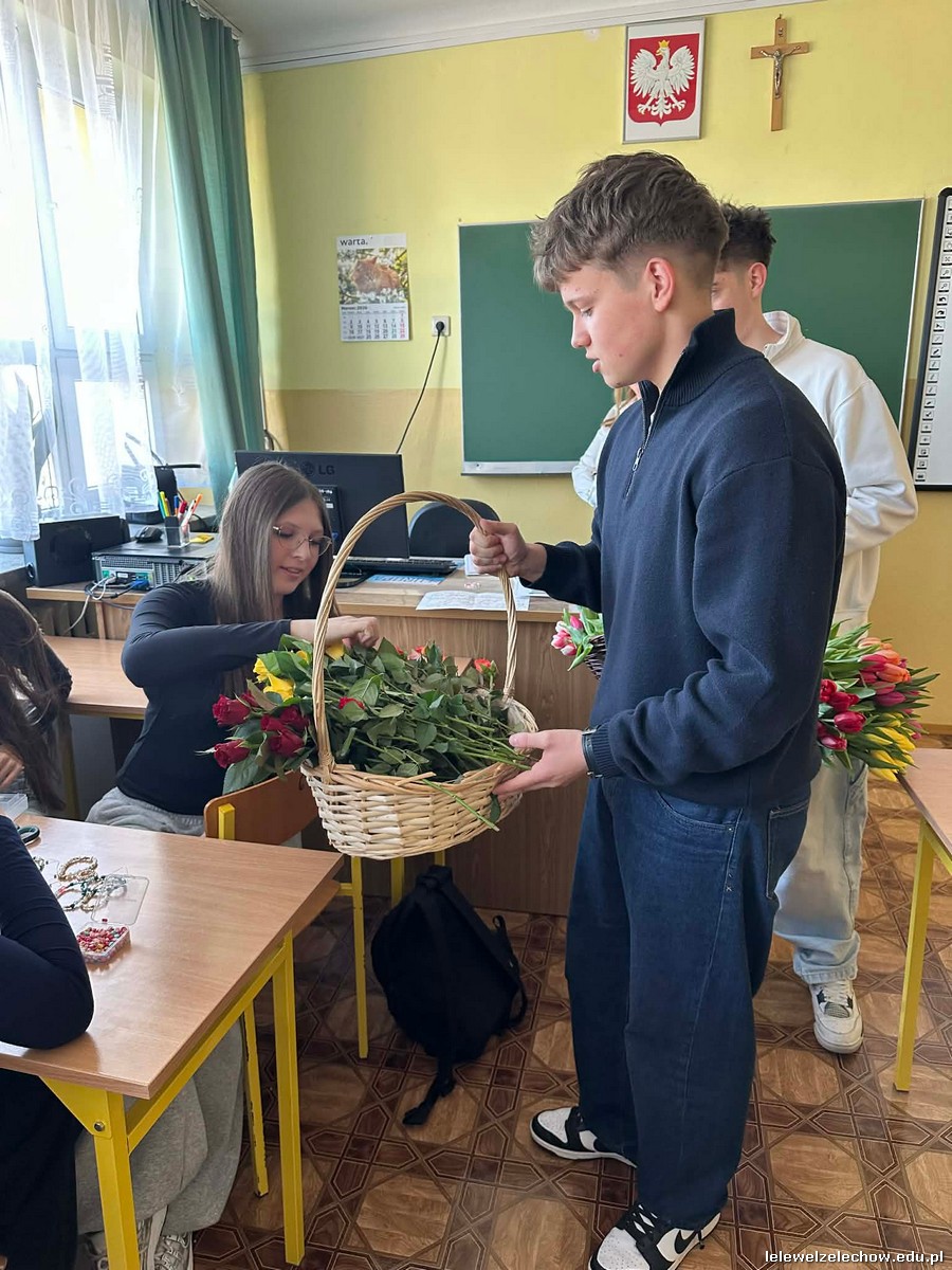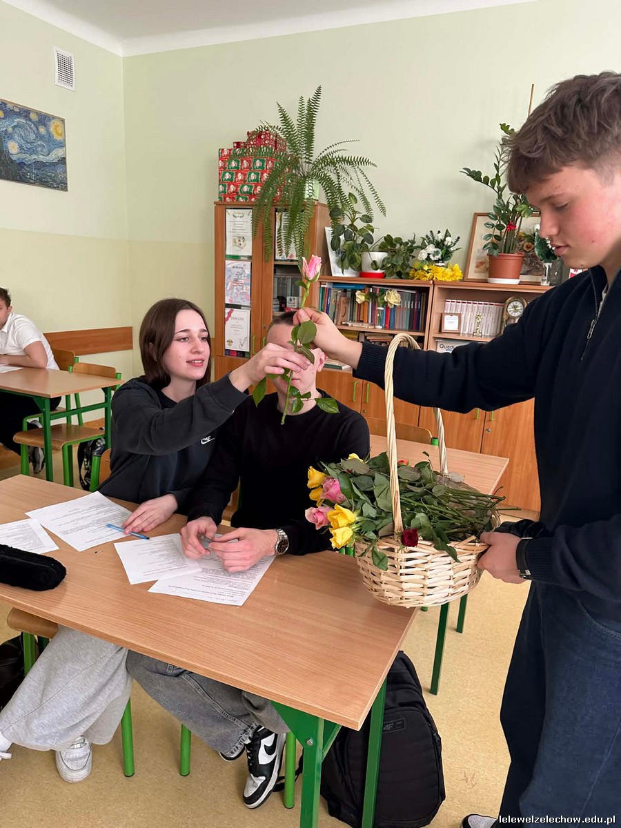 Dzisiaj chłopcy chcieli sprawić radość piękniejszej części szkolnej społeczności i obdarowali ją kwiatami oraz zaprosili do wspólnej zabawy.