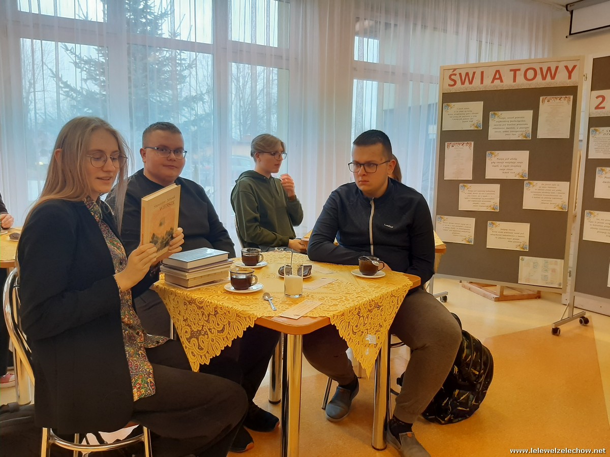 Zorganizowane zostało spotkanie, którego celem było zwrócenie uwagi na potrzebę obcowania z poezją, uwrażliwienie na piękno literatury, dostrzeżenie wartości i uniwersalności dzieł poetyckich. Zebraliśmy się w szkolnej świetlicy, aby przy filiżance herbaty porozmawiać o tym, jakie utwory poetyckie szczególnie cenimy, do których poetów powracamy najchętniej i dlaczego poezja jest dla nas ważna. Wśród prezentowanych twórców znaleźli się: Wisława Szymborska, Bolesław Leśmian, Robert Frost, Stanisław Nowak, Rupi Kaur, Halina Prządka, Czesław Miłosz, Krzysztof Kamil Baczyński, Hanna Wasiak, Maria Konopnicka, Leopold Staff, Juliusz Słowacki, Wanda Dobaczewska, Lucjan Rydel, Stanisław Przybyszewski. Szczególnie przyjemnym momentem spotkania było odczytanie wierszy, które wyszły spod pióra naszych uczennic.