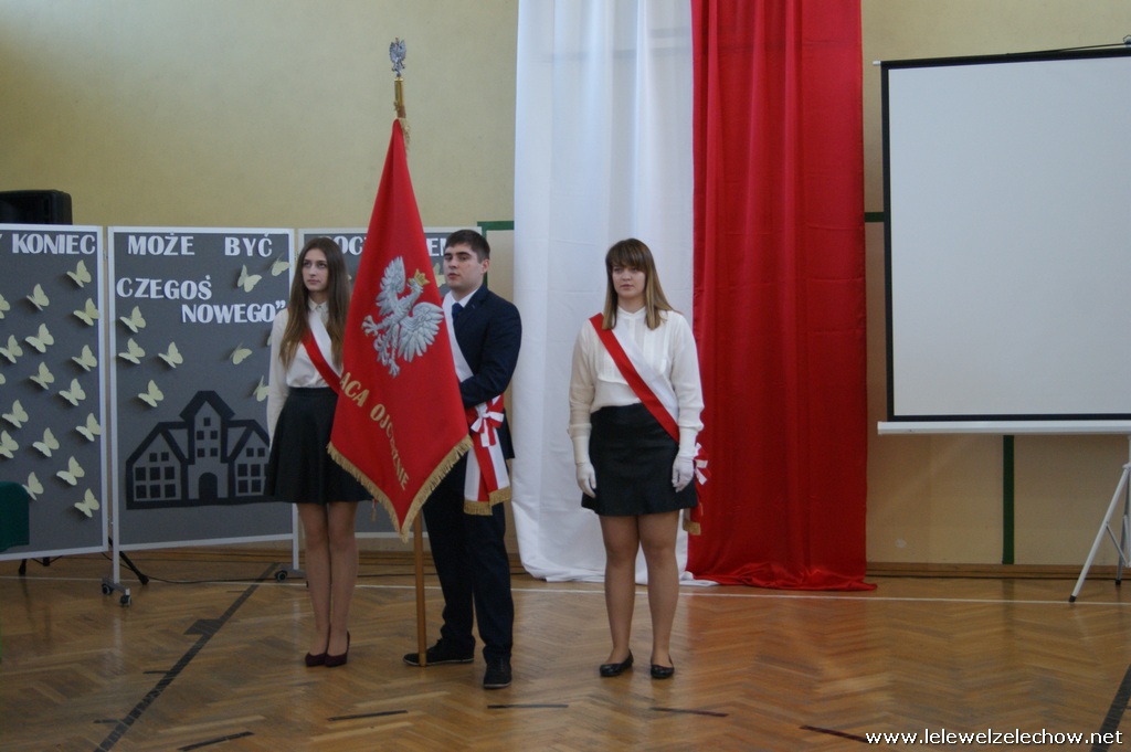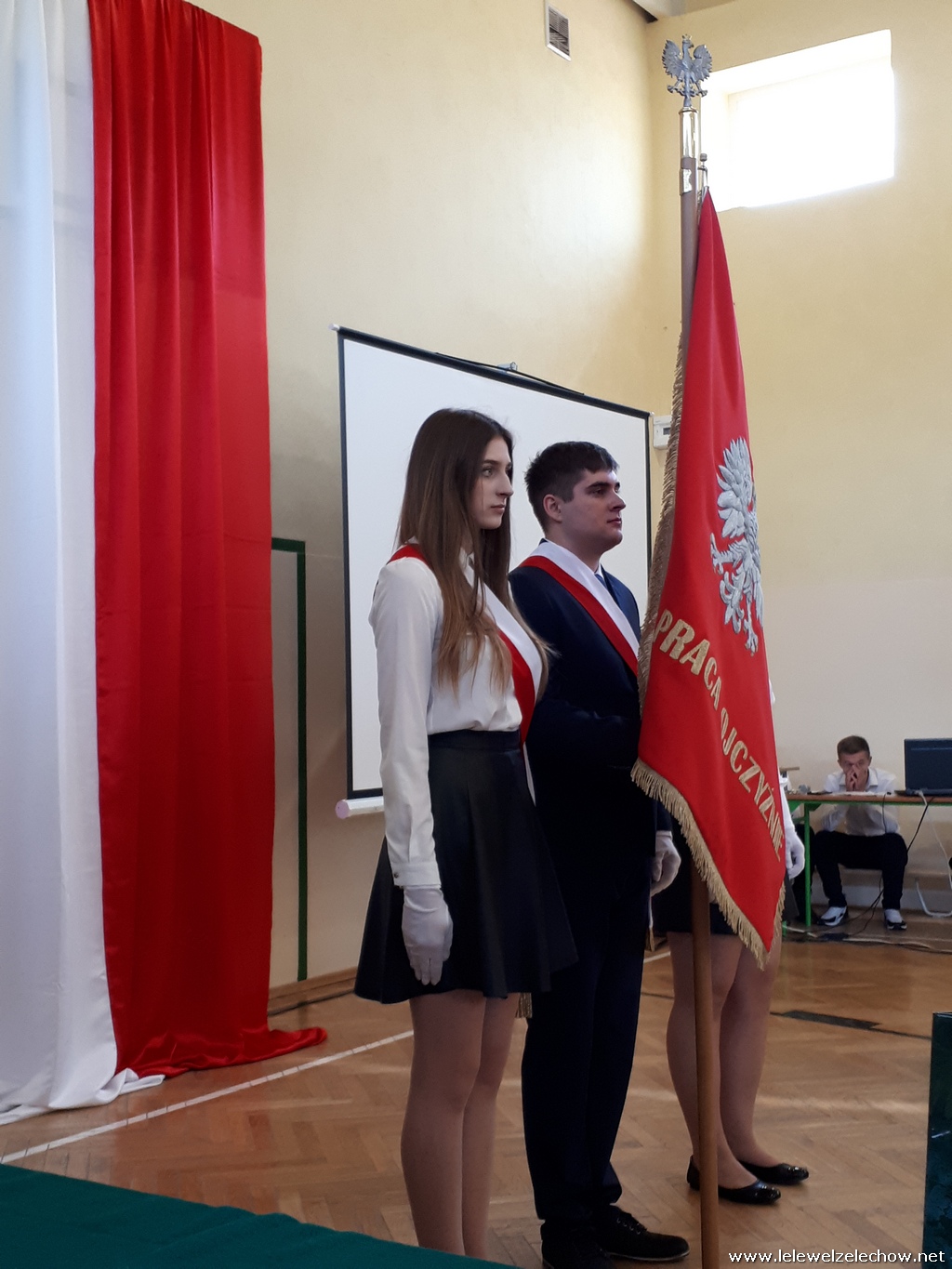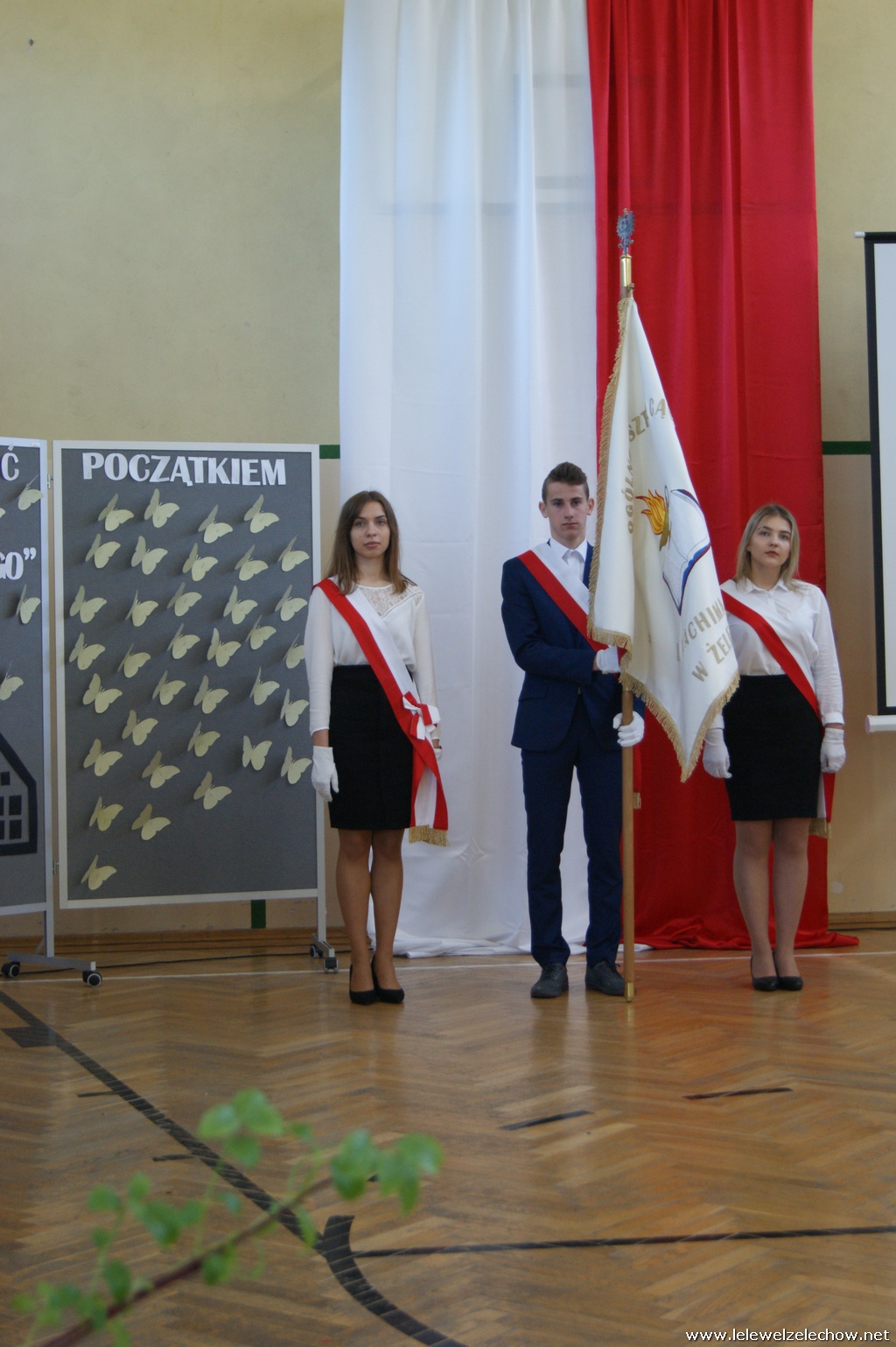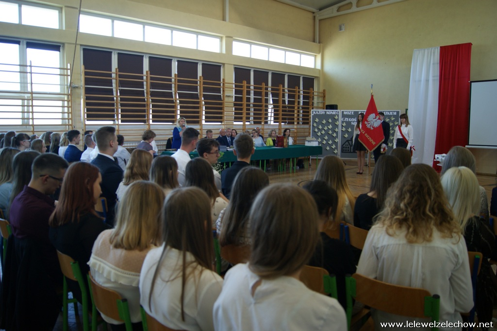 Tradycyjnie uroczystość rozpoczęła się od wprowadzenia sztandaru szkoły i odśpiewania hymnu państwowego. Następnie głos zabrała pani Dyrektor Regina Gromoł, która przywitała Gości, wychowawców i nauczycieli, rodziców, abiturientów i zarazem przyszłych maturzystów oraz całą społeczność szkolną. Główną częścią uroczystości było przekazanie sztandaru przez klasy III uczniom klas II. Reprezentanci klas wygłosili uroczystą rotę przysięgi. Tę część poprowadził pan Marcin Cichecki.
