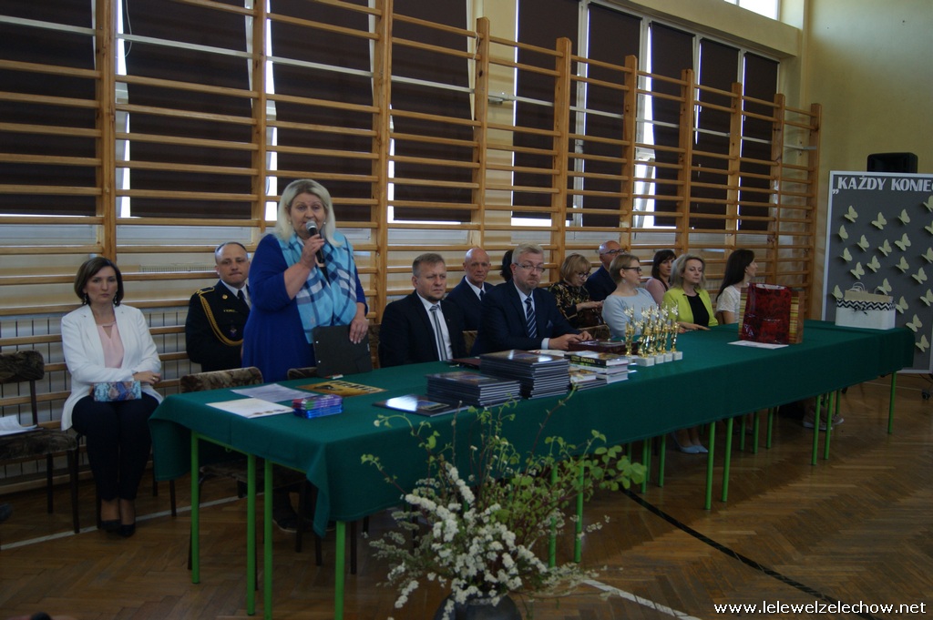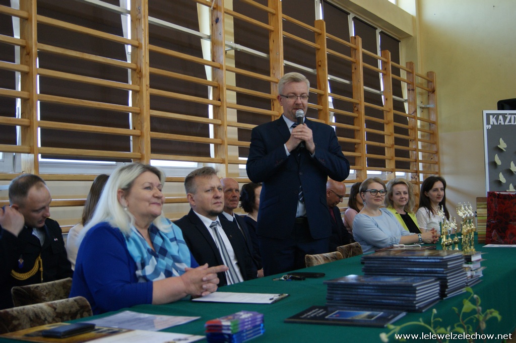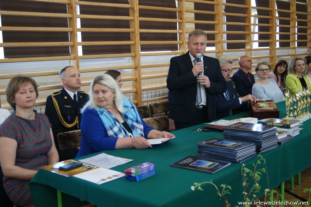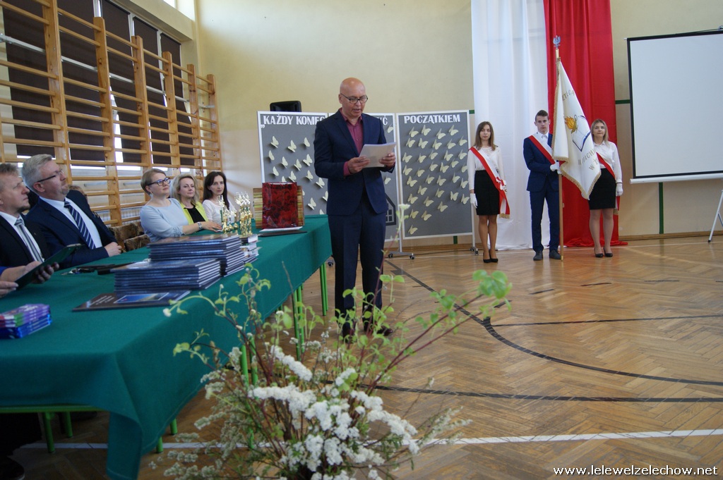 Następnie pani Dyrektor poprosiła o zabranie głosu Gości.Dyrektor Wydziału Edukacji, Kultury i Sportu pan Janusz Kowalski dziękował nauczycielom za doprowadzenie uczniów do końca edukacji i umożliwienie im startu w dorosłość. W imieniu Starosty Powiatu Garwolińskiego pana Mirosława Walickiego wręczył również nagrodę Alicji Mucha za najwyższe wyniki w nauce.