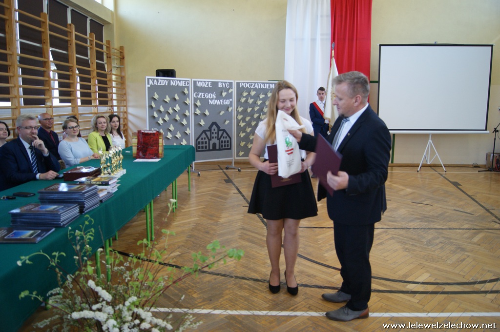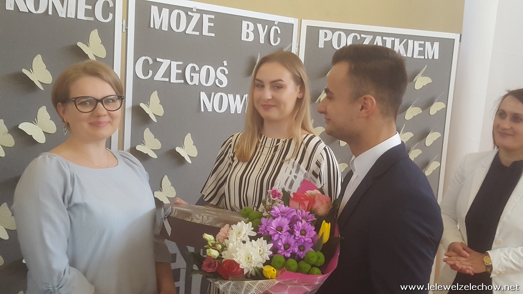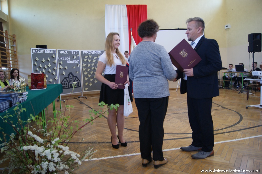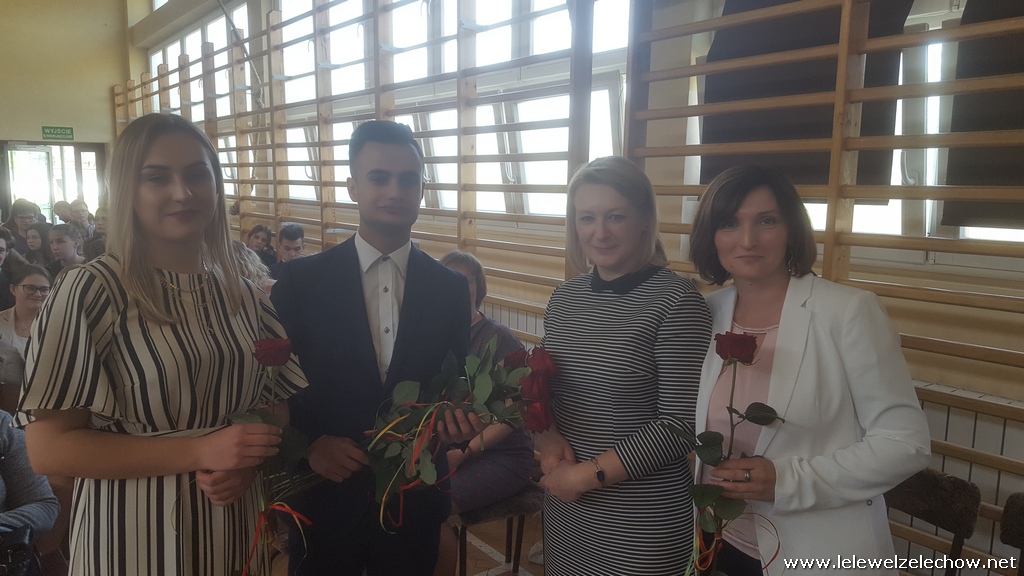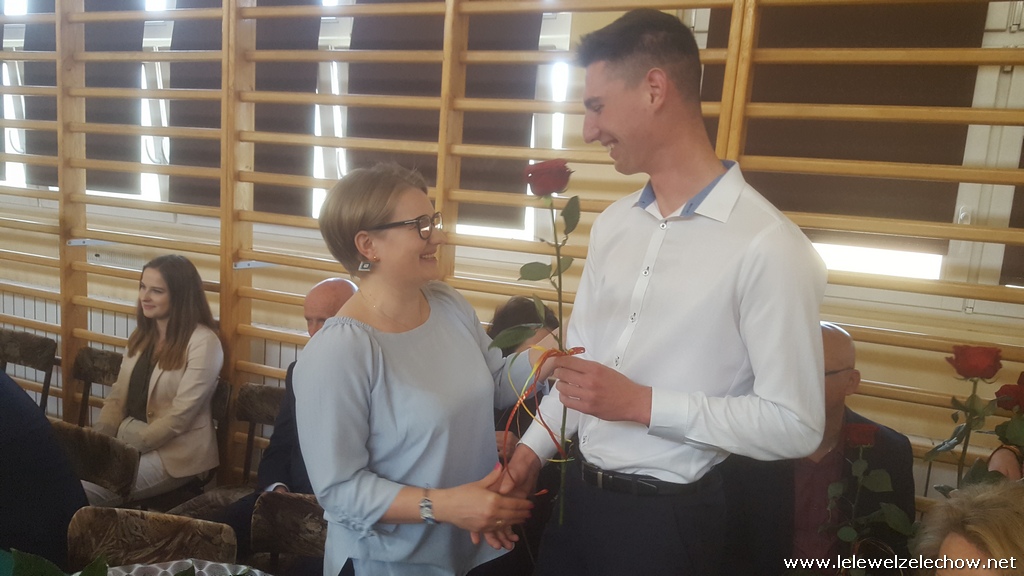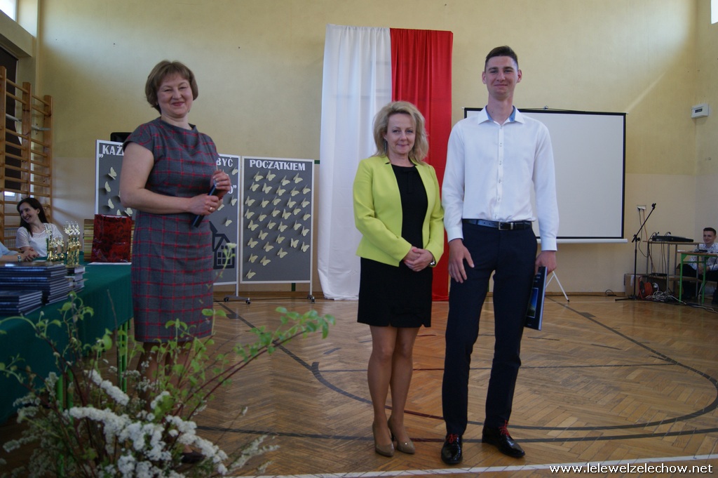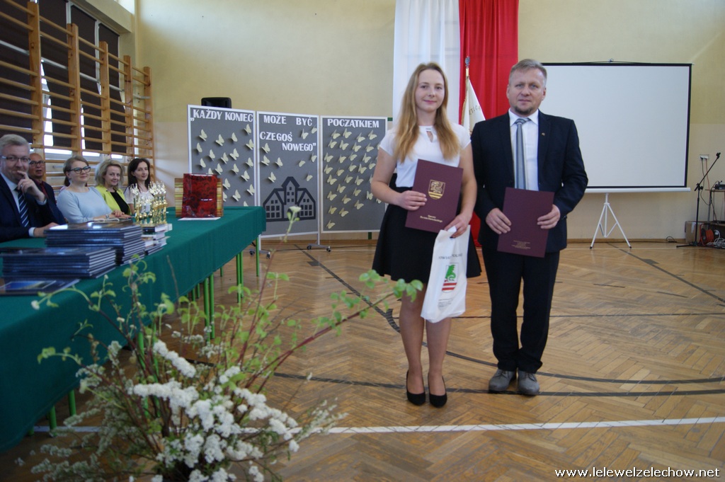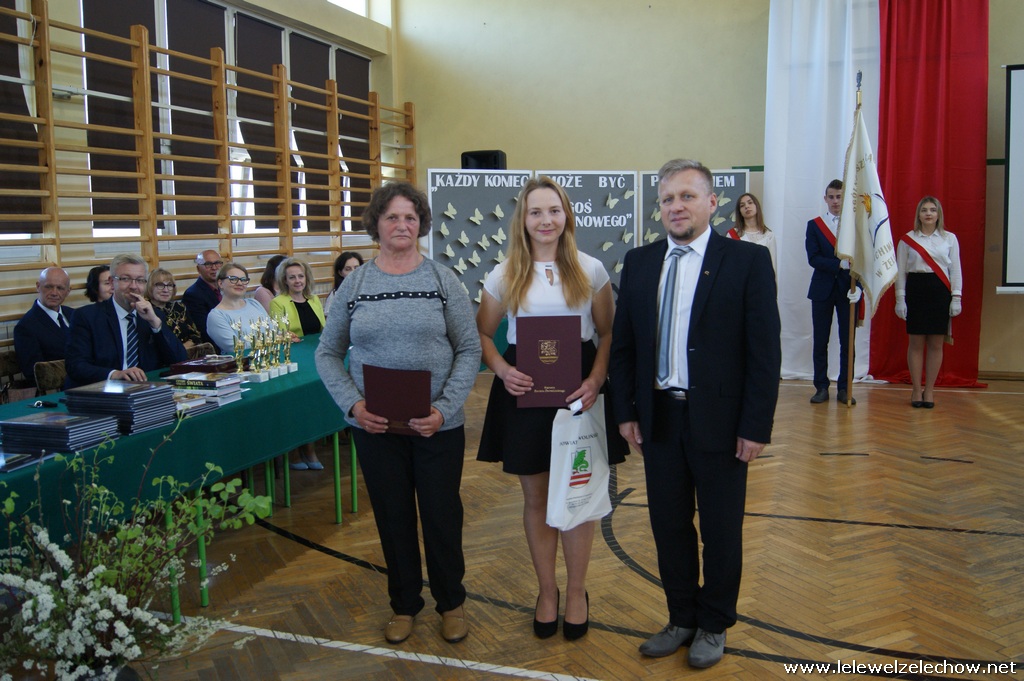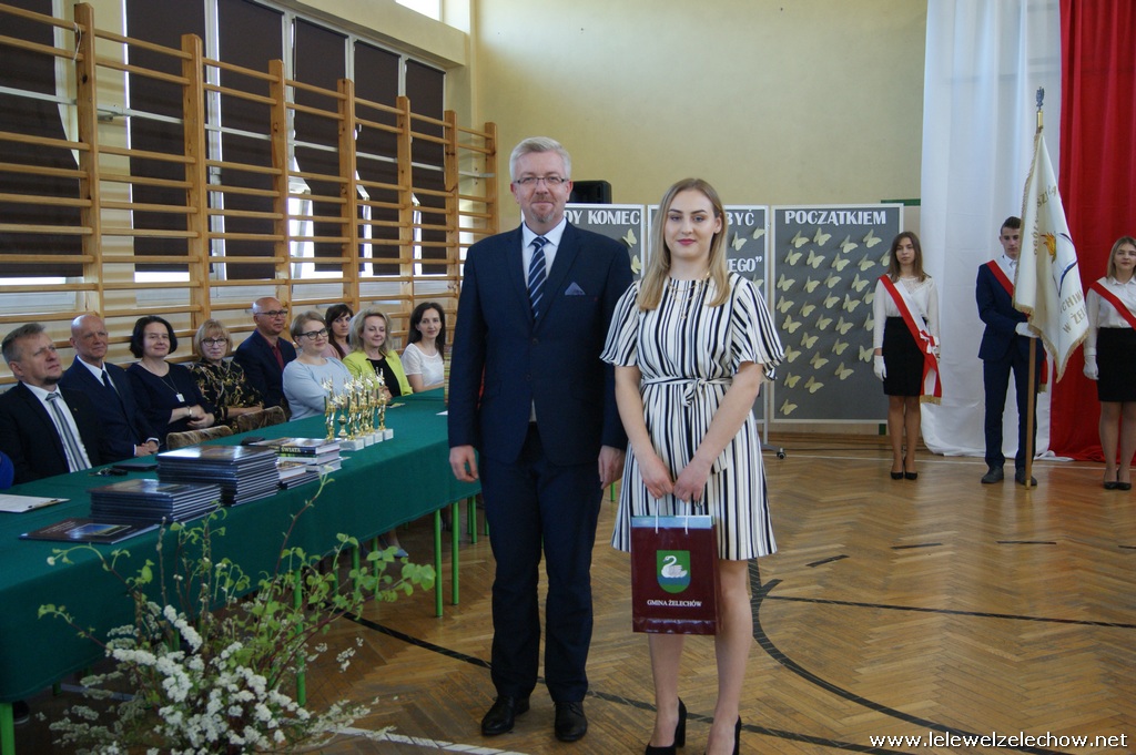 Za wysokie wyniki w nauce oraz szczególne zaangażowanie w promocję gminy Żelechów Alicji Gendek nagrodę wręczył Burmistrz Żelechowa pan Łukasz Bogusz. Pan Łukasz Bogusz z sentymentem wspomniał swoje zakończenie szkoły w liceum ,,Lelewela” i życzył aby uczniowie, tak jak on do tej pory, miło wspominali ten czas spędzony w murach tej szkoły.