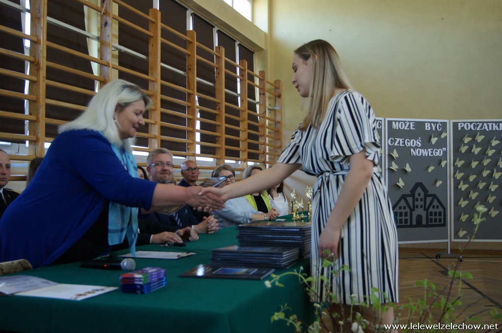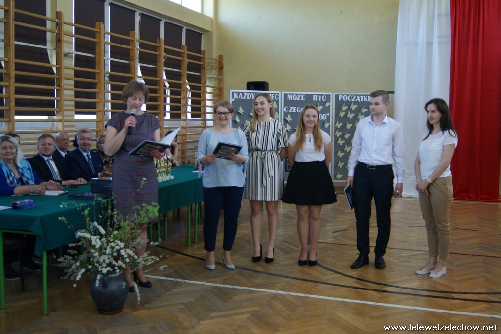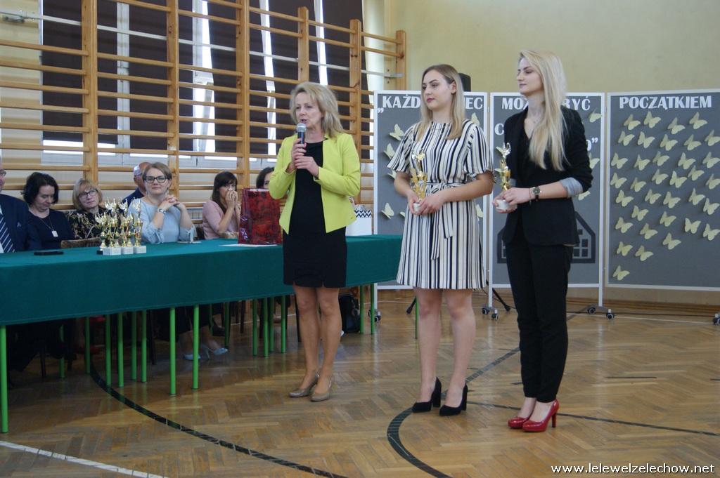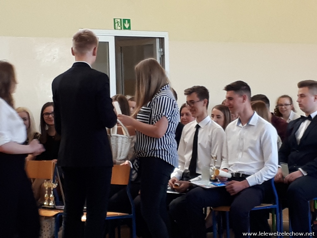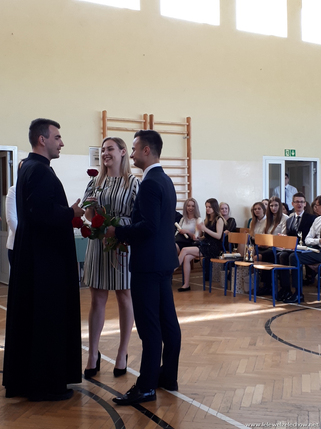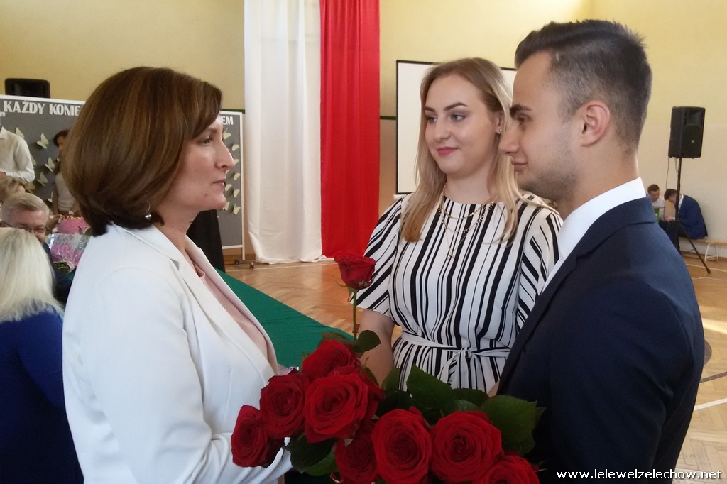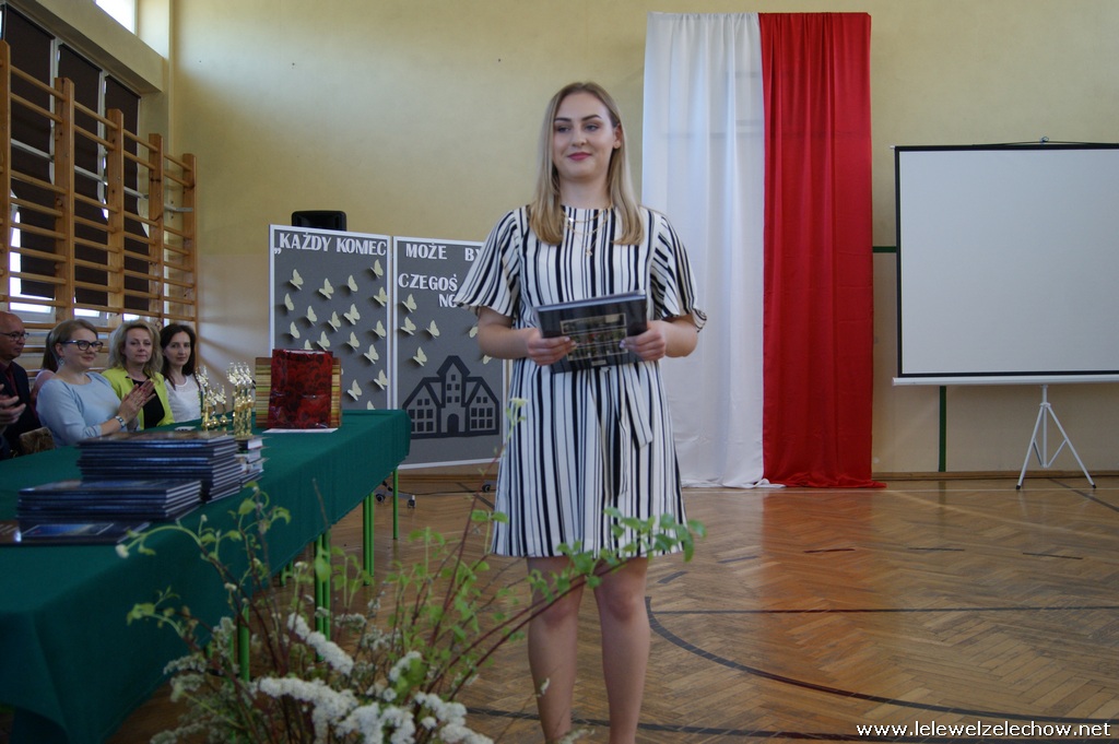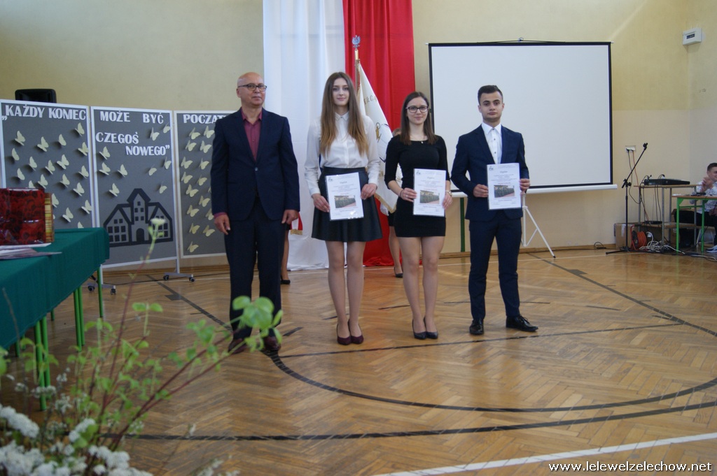 Za wysokie wyniki w nauce oraz szczególne zaangażowanie w promocję gminy Żelechów Alicji Gendek nagrodę wręczył Burmistrz Żelechowa pan Łukasz Bogusz. Pan Łukasz Bogusz z sentymentem wspomniał swoje zakończenie szkoły w liceum ,,Lelewela” i życzył aby uczniowie, tak jak on do tej pory, miło wspominali ten czas spędzony w murach tej szkoły.