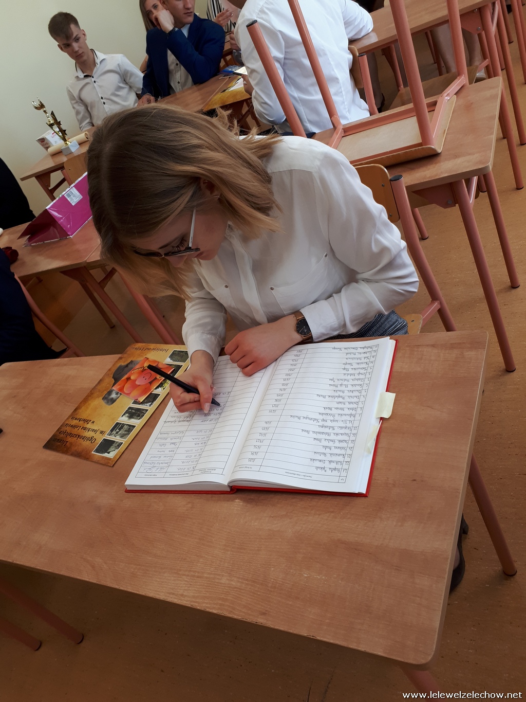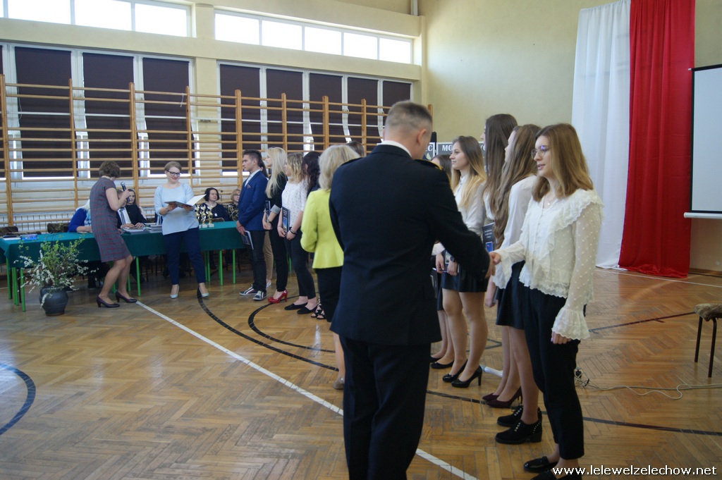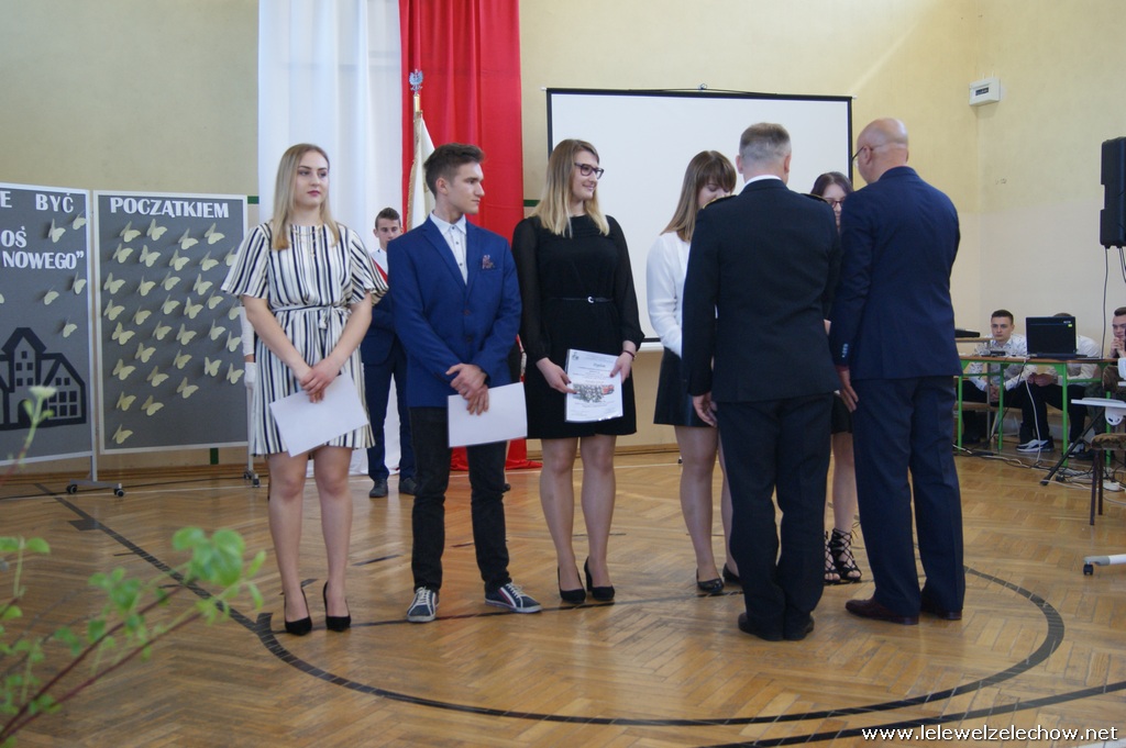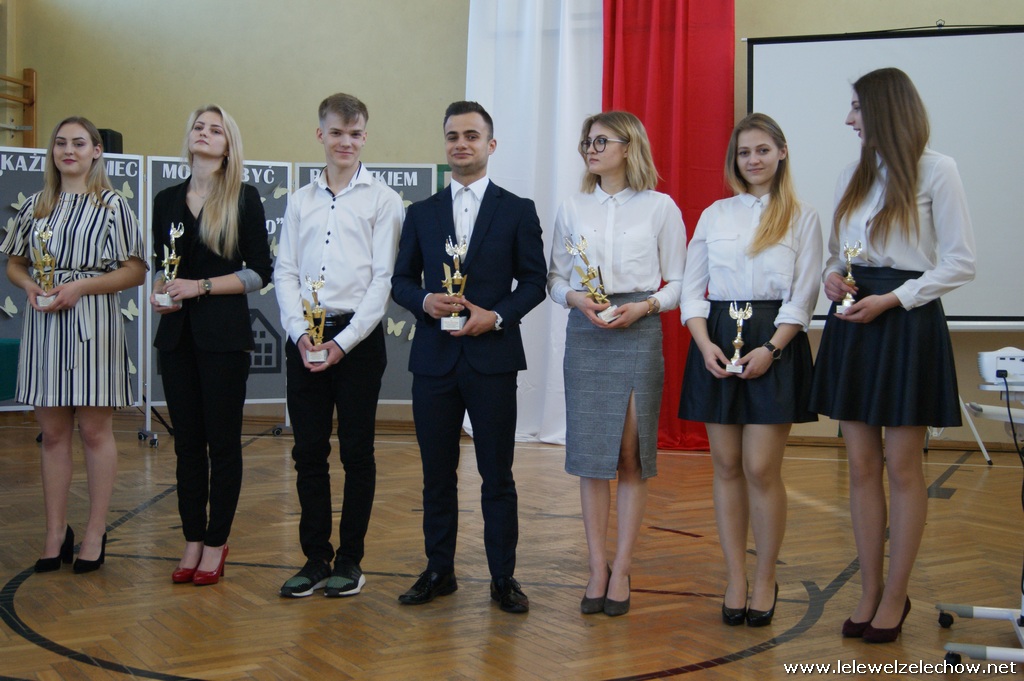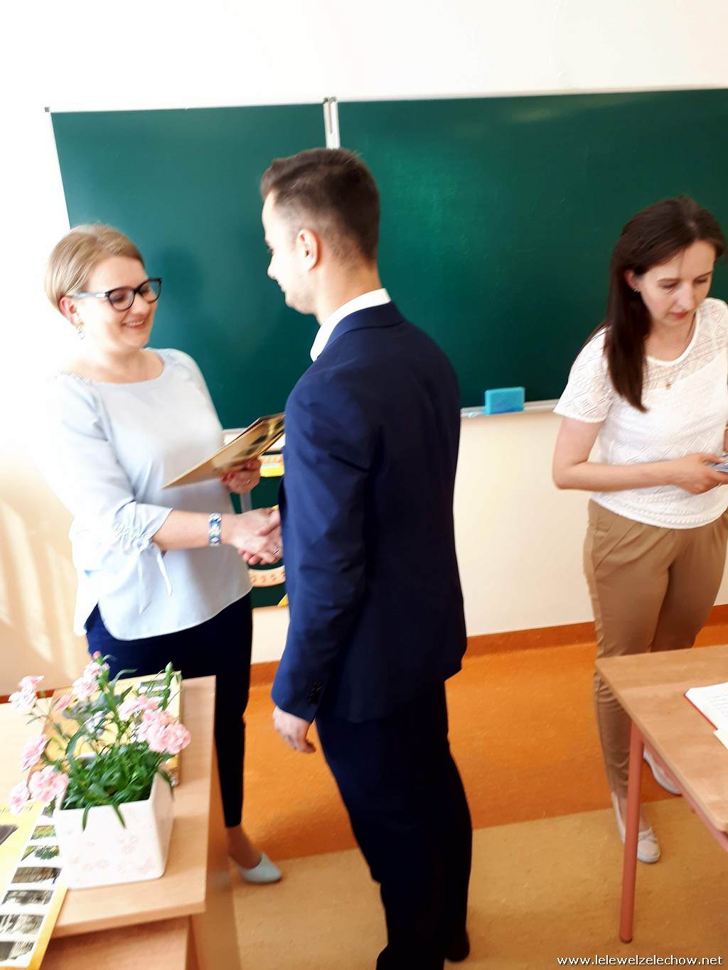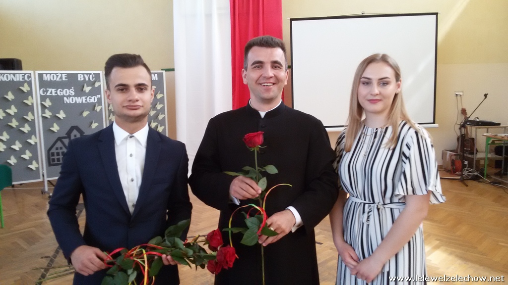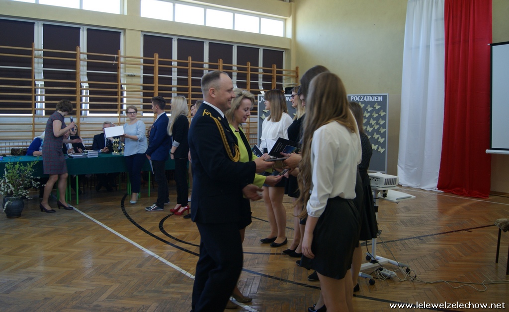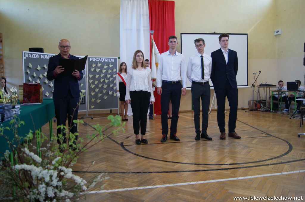 Za wysokie wyniki w nauce oraz szczególne zaangażowanie w promocję gminy Żelechów Alicji Gendek nagrodę wręczył Burmistrz Żelechowa pan Łukasz Bogusz. Pan Łukasz Bogusz z sentymentem wspomniał swoje zakończenie szkoły w liceum ,,Lelewela” i życzył aby uczniowie, tak jak on do tej pory, miło wspominali ten czas spędzony w murach tej szkoły.