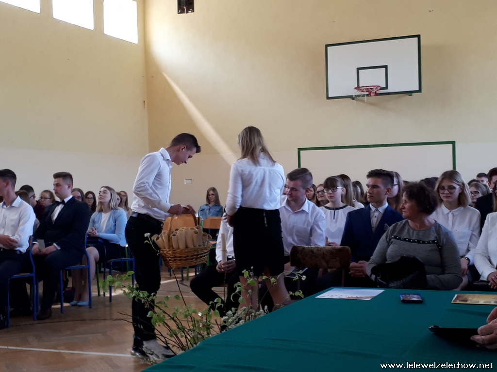 Po części oficjalnej rozpoczęła się część artystyczna przygotowana przez uczniów klas II. Młodzież przypomniała swoim programem miłe chwile spędzone przez maturzystów w liceum i złożyła życzenia powodzenia na maturze i w dalszym życiu.Nieodzownym elementem tej części uroczystości są tradycyjne już ,,Lelewele”, nagrody wręczane przez uczniów uczniom. Wyróżnienia za niebanalną działalność czy zachowanie co roku wzbudzają wiele radości. Na zakończenie uczniowie klas II wręczyli swoim starszym koleżankom i kolegom pamiątkowe listy gratulacyjne oraz długopisy ,,Matura 2019”.