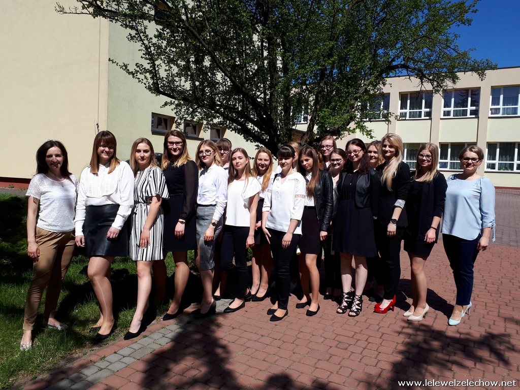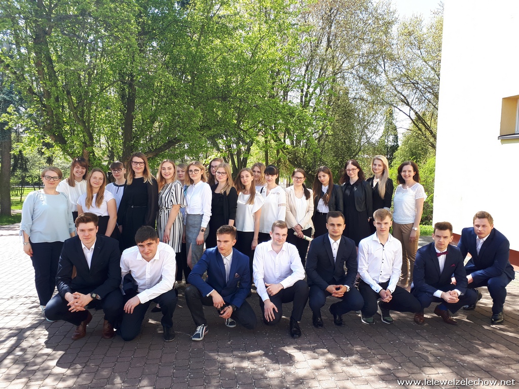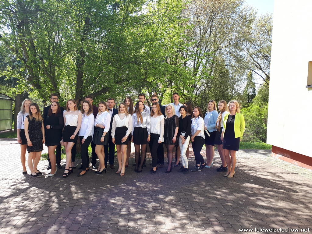 Uczniowie klas trzecich podziękowali Dyrekcji, nauczycielom i wychowawcom za trzyletnią pracę i wsparcie wręczając im kwiaty. Zwieńczeniem uroczystości były tradycyjne już- ostatnie zdjęcia klasowe, na tle budynku szkoły otoczeniu rozkwitającej pięknej wiosny …