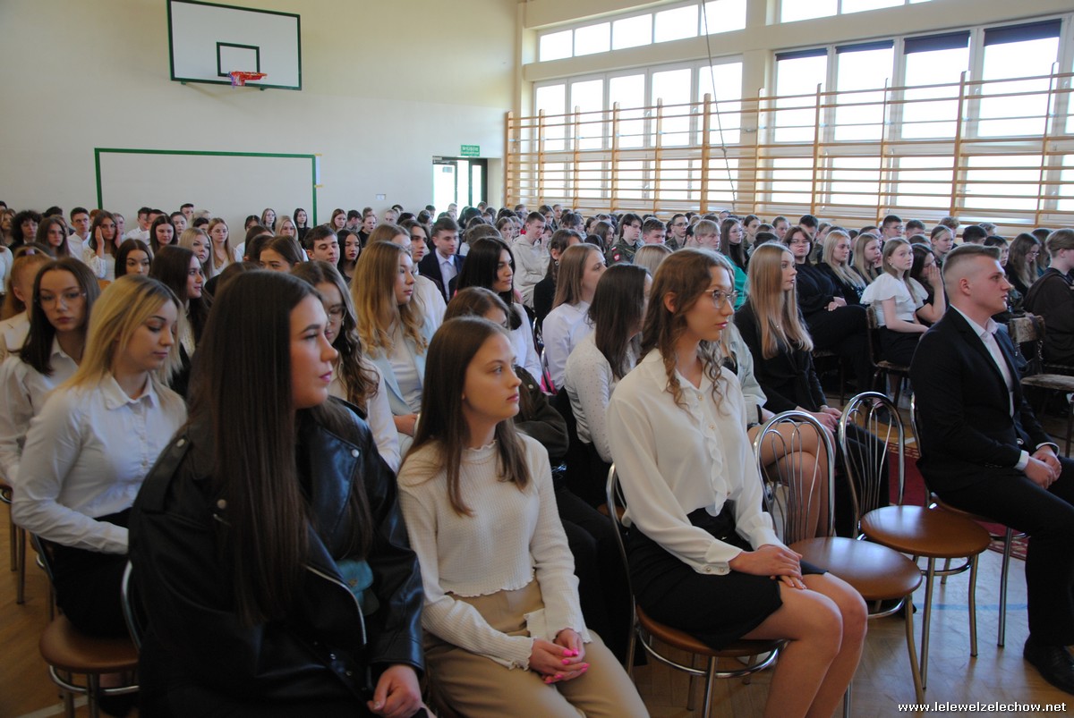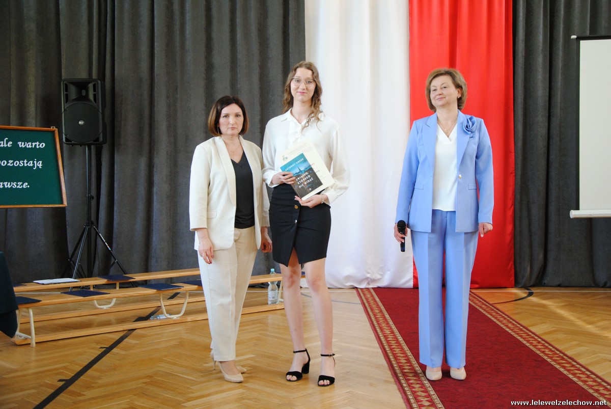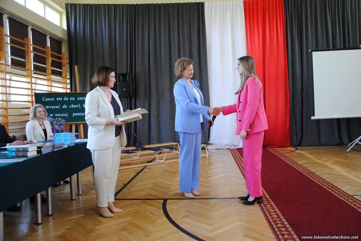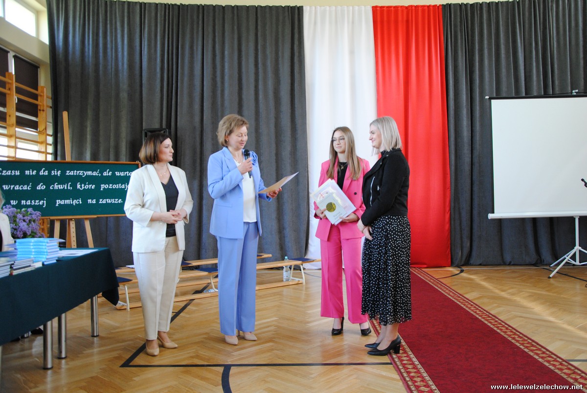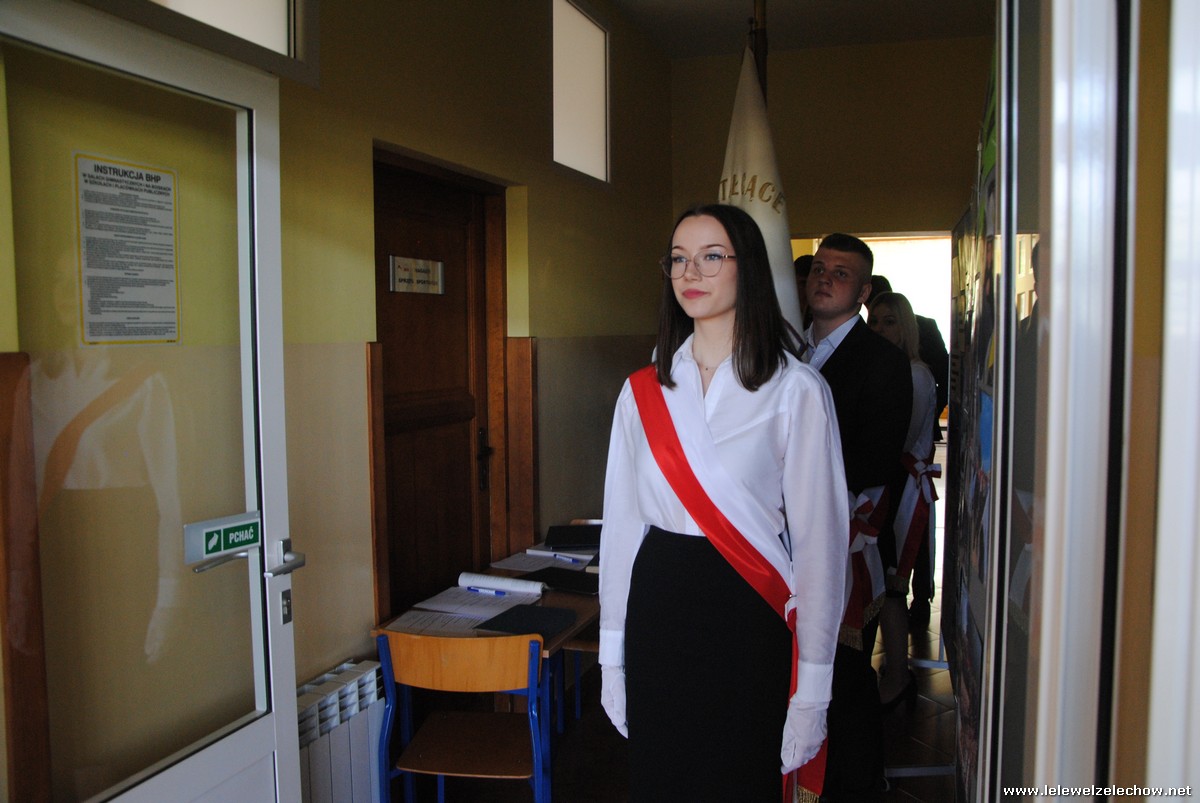 Głos zabrali również zaproszeni goście. Pan Krzysztof Ośka – członek zarządu Powiatu Garwolińskiego odczytał list pana Mirosława Walickiego - Starosty Powiatu Garwolińskiego, skierował do uczniów ciepłe słowa oraz wręczył nagrodę dla najlepszej uczennicy – Oliwii Długaszek. Pan Łukasz Bogusz – Burmistrz Żelechowa w swoim wystąpieniu podkreślił, że też jest absolwentem Lelewela i z sentymentem wspomina czas spędzony w tej szkole. Życzył maturzystom wielu sukcesów w dorosłym życiu oraz powodzenia na egzaminach maturalnych. Z rąk Pana Burmistrza nagrodę otrzymała Maria Majek za udział w uroczystościach lokalnych i godne reprezentowanie Gminy Żelechów.