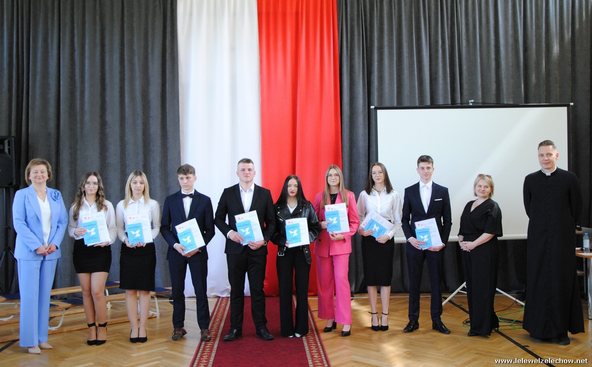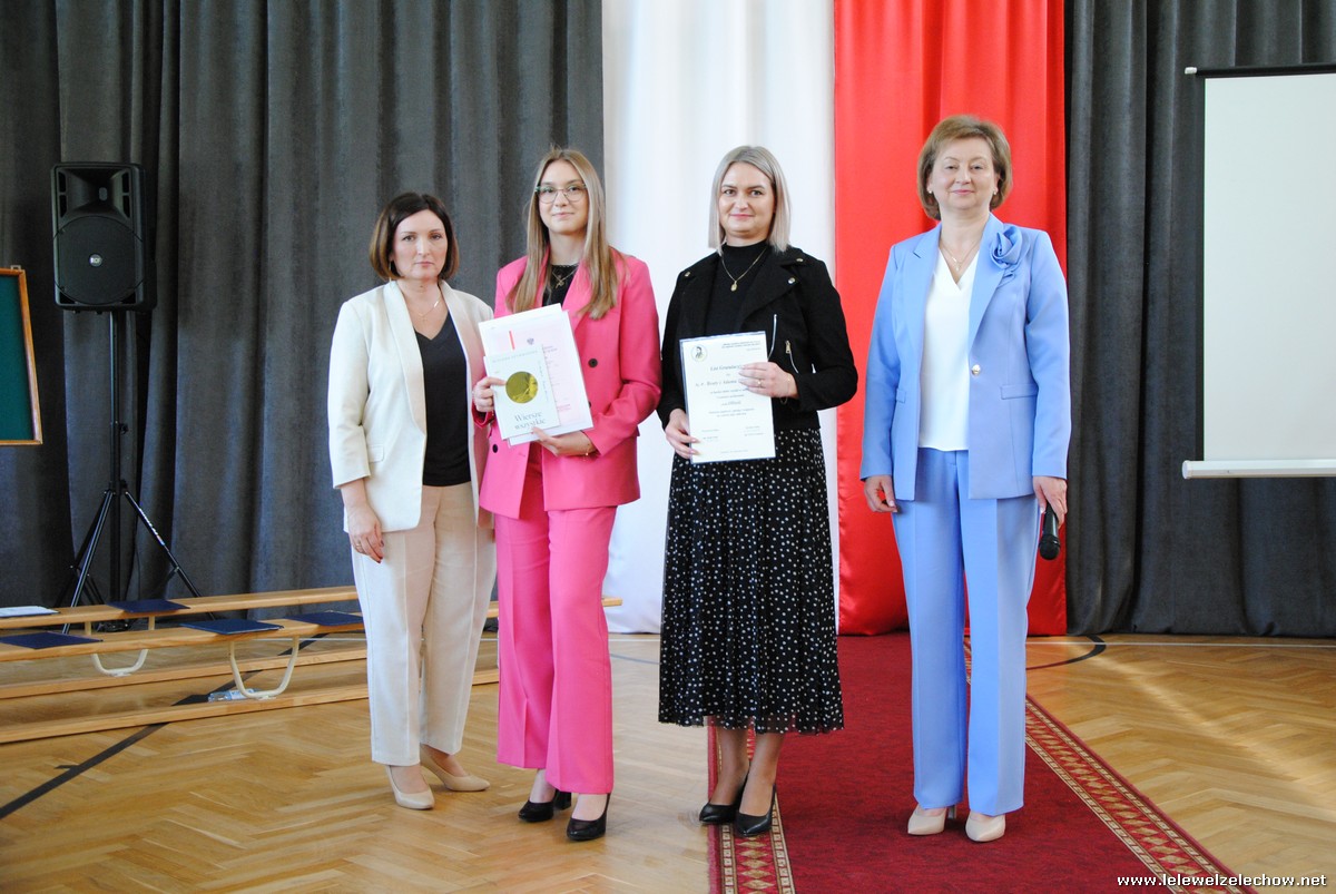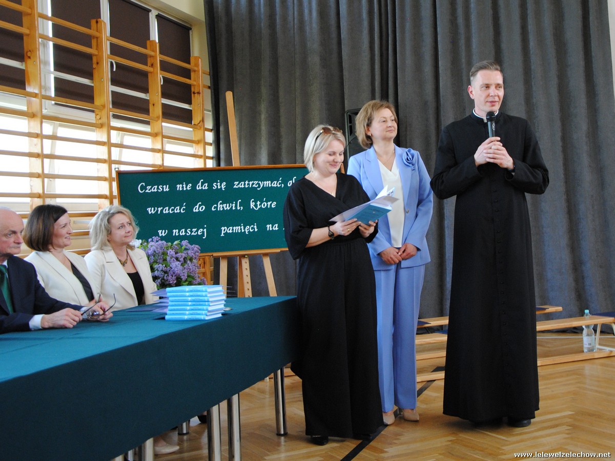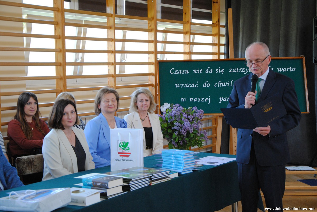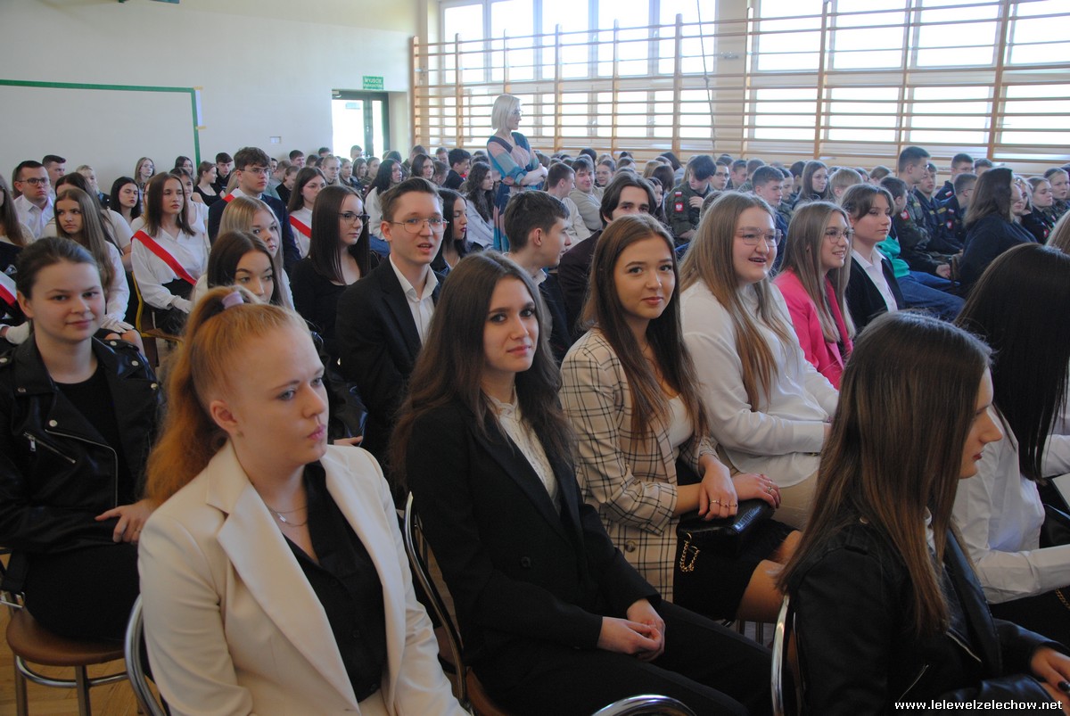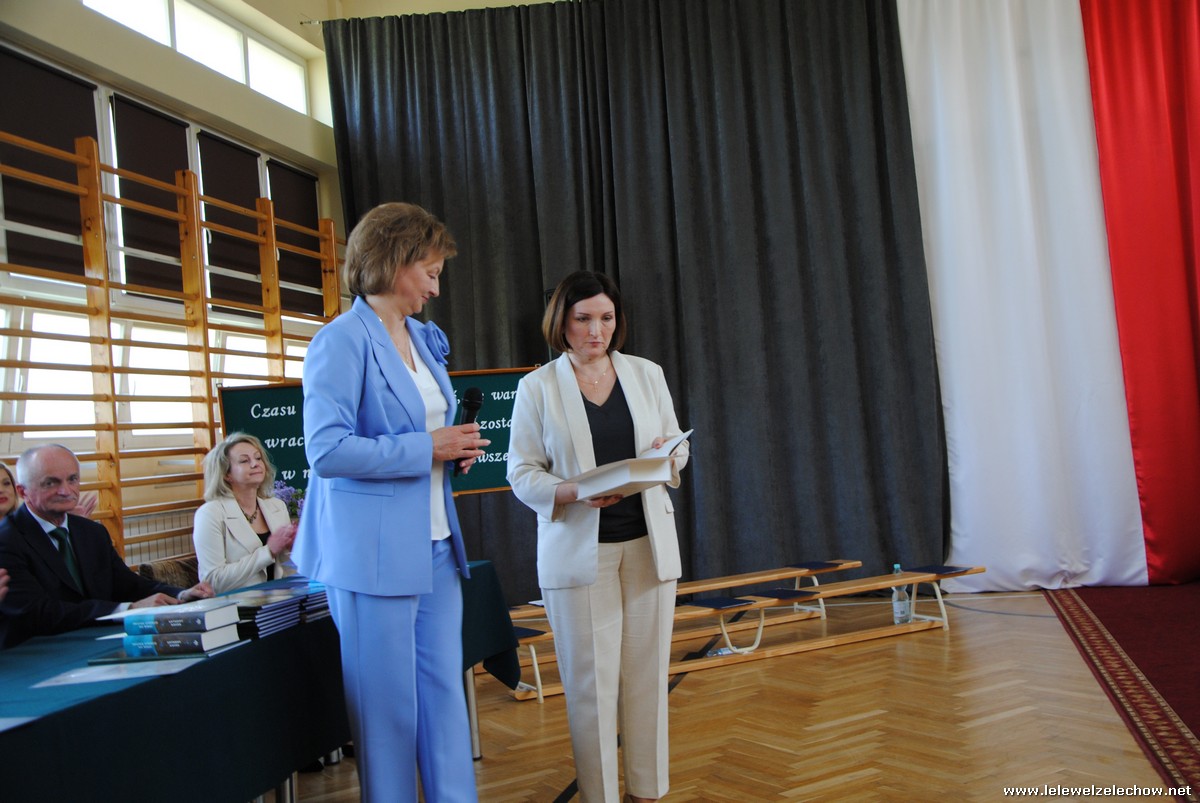 Głos zabrali również zaproszeni goście. Pan Krzysztof Ośka – członek zarządu Powiatu Garwolińskiego odczytał list pana Mirosława Walickiego - Starosty Powiatu Garwolińskiego, skierował do uczniów ciepłe słowa oraz wręczył nagrodę dla najlepszej uczennicy – Oliwii Długaszek. Pan Łukasz Bogusz – Burmistrz Żelechowa w swoim wystąpieniu podkreślił, że też jest absolwentem Lelewela i z sentymentem wspomina czas spędzony w tej szkole. Życzył maturzystom wielu sukcesów w dorosłym życiu oraz powodzenia na egzaminach maturalnych. Z rąk Pana Burmistrza nagrodę otrzymała Maria Majek za udział w uroczystościach lokalnych i godne reprezentowanie Gminy Żelechów.