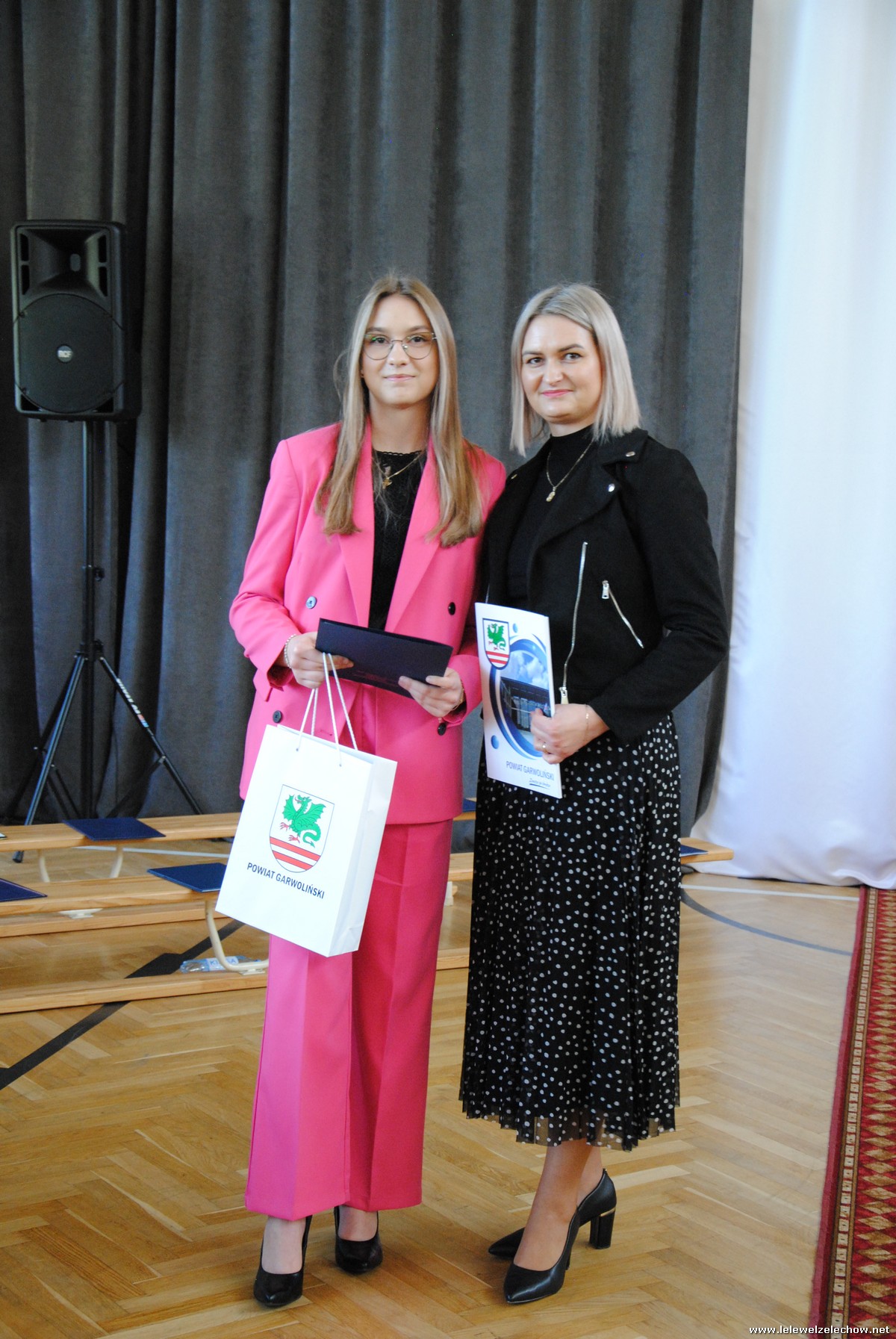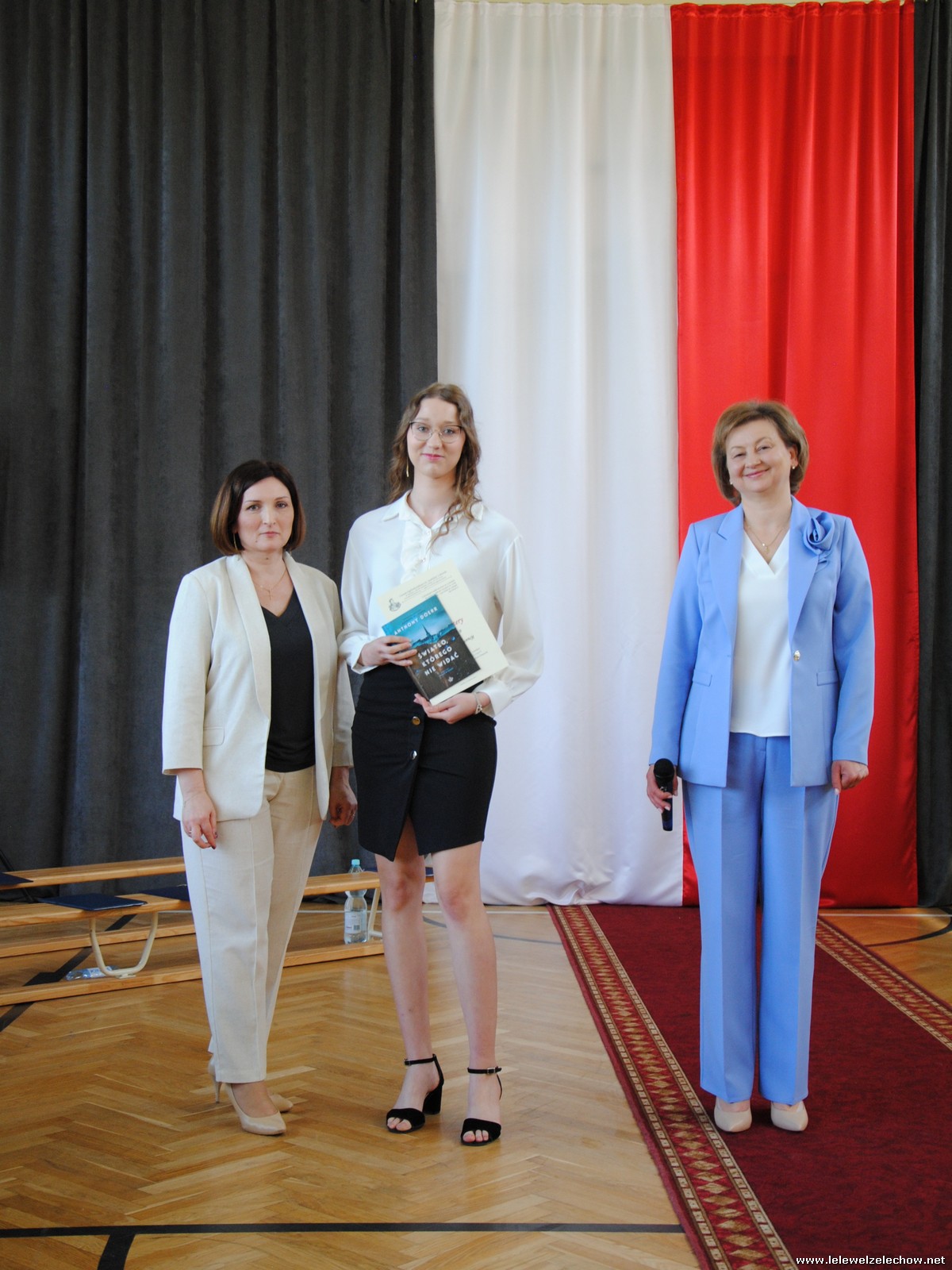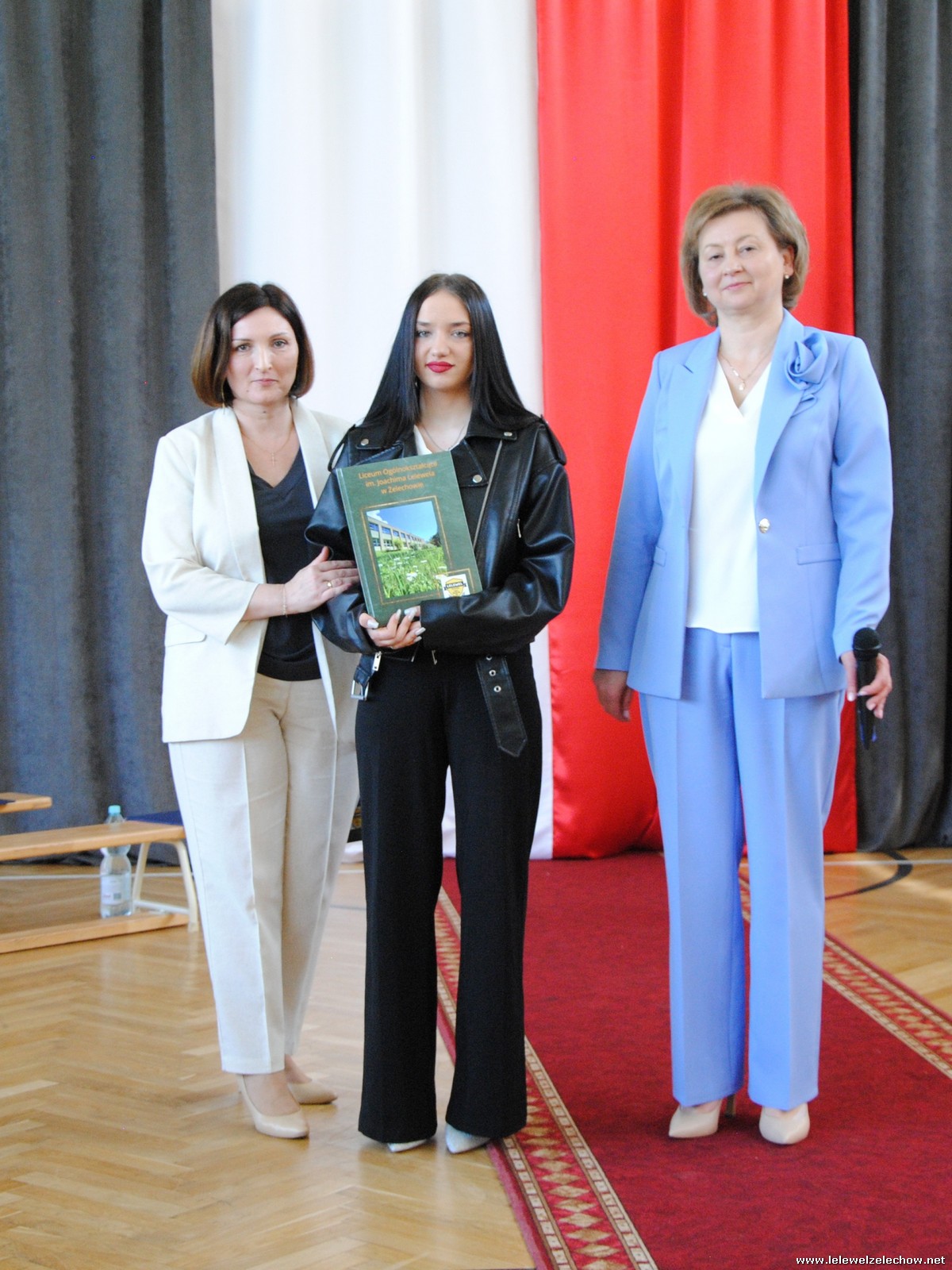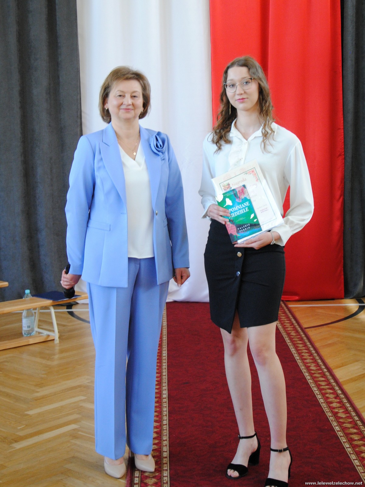 Głos zabrali również zaproszeni goście. Pan Krzysztof Ośka – członek zarządu Powiatu Garwolińskiego odczytał list pana Mirosława Walickiego - Starosty Powiatu Garwolińskiego, skierował do uczniów ciepłe słowa oraz wręczył nagrodę dla najlepszej uczennicy – Oliwii Długaszek. Pan Łukasz Bogusz – Burmistrz Żelechowa w swoim wystąpieniu podkreślił, że też jest absolwentem Lelewela i z sentymentem wspomina czas spędzony w tej szkole. Życzył maturzystom wielu sukcesów w dorosłym życiu oraz powodzenia na egzaminach maturalnych. Z rąk Pana Burmistrza nagrodę otrzymała Maria Majek za udział w uroczystościach lokalnych i godne reprezentowanie Gminy Żelechów.