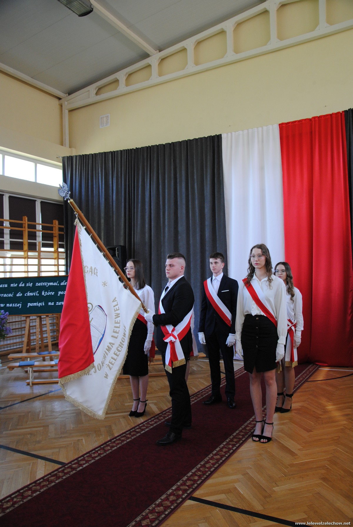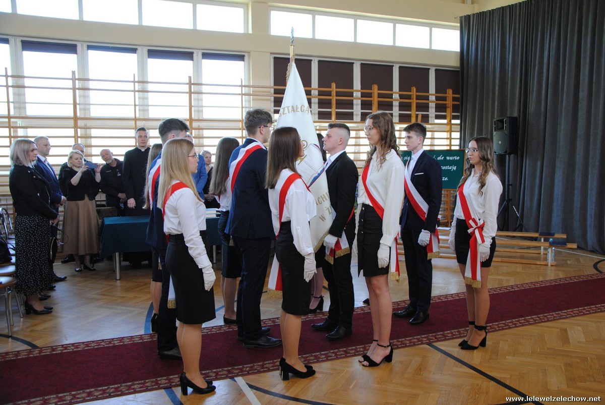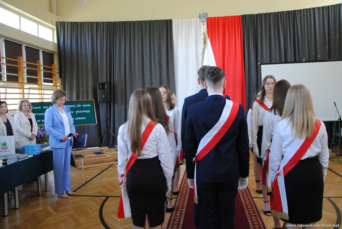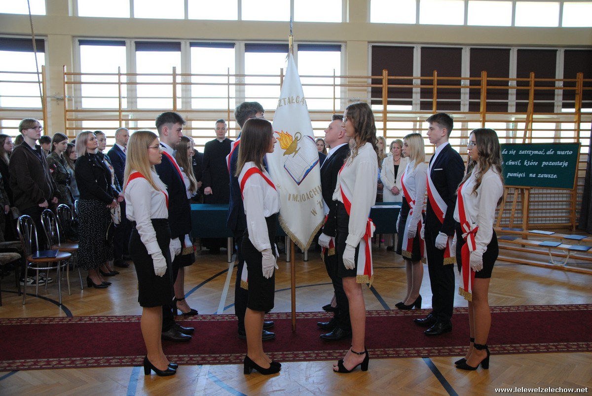 Po odśpiewaniu hymnu czwartoklasiści przekazali sztandar trzecioklasistom, którzy wypowiadając słowa przysięgi zobowiązali się do godnego reprezentowania szkoły i dbania o jej dobre imię.