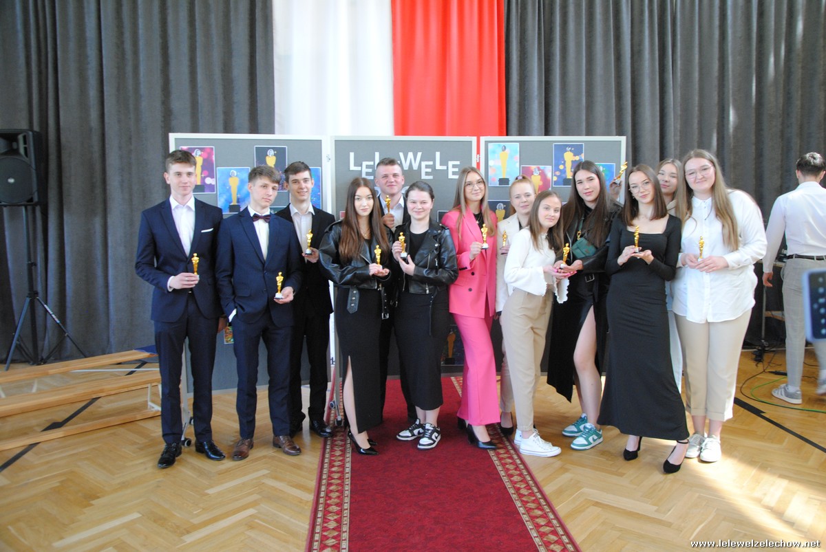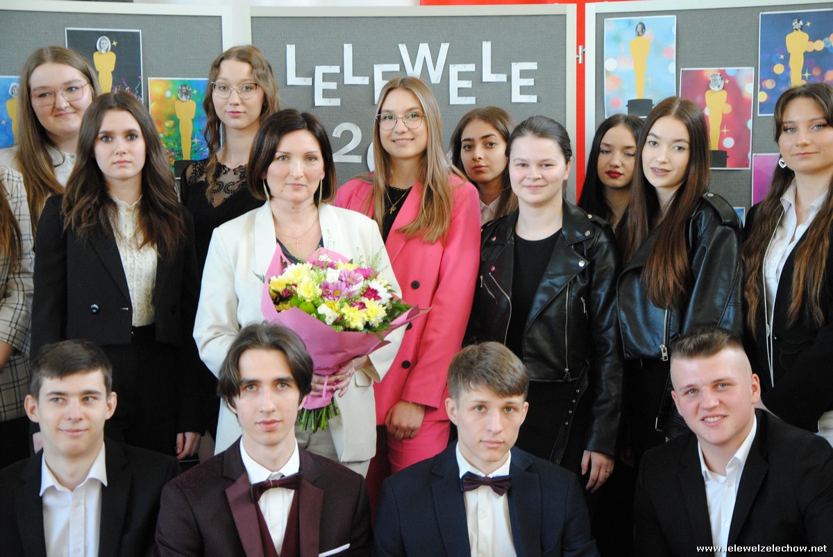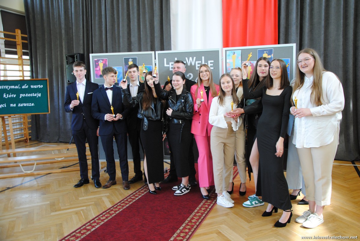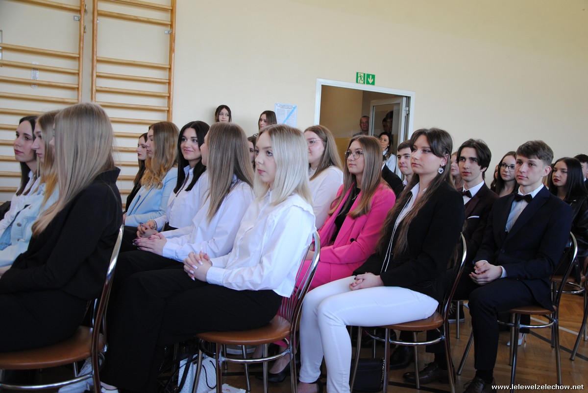 Następnie oddano głos klasom trzecim, które pożegnały Koleżanki i Kolegów pięknym programem artystycznym. Prezentacja, scenka kabaretowa, piosenki z ważnym przesłaniem sprawiły, że maturzyści na przemian wzruszali się i śmiali. Nie mogło również zabraknąć tradycyjnej Gali Leleweli, która zawsze wzbudza wiele pozytywnych emocji i jest jednym z najbardziej wyczekiwanych punktów programu artystycznego. Podczas gali doceniono tych, którzy swoim zachowaniem, postawą czy wyglądem wyróżniali się spośród grona uczniów. Cały program zakończyły życzenia, jakie trzecioklasiści złożyli absolwentom, oraz wręczenie upominków.