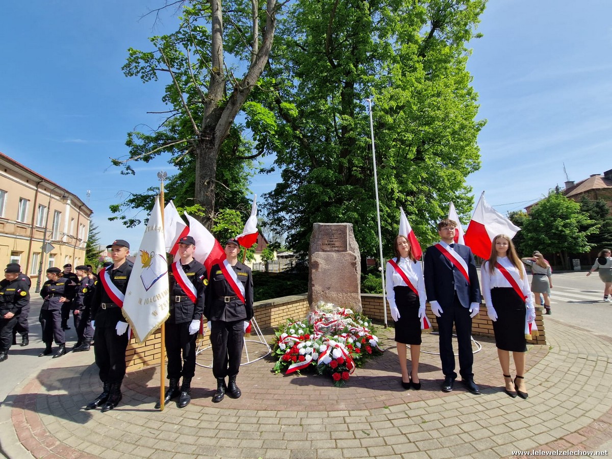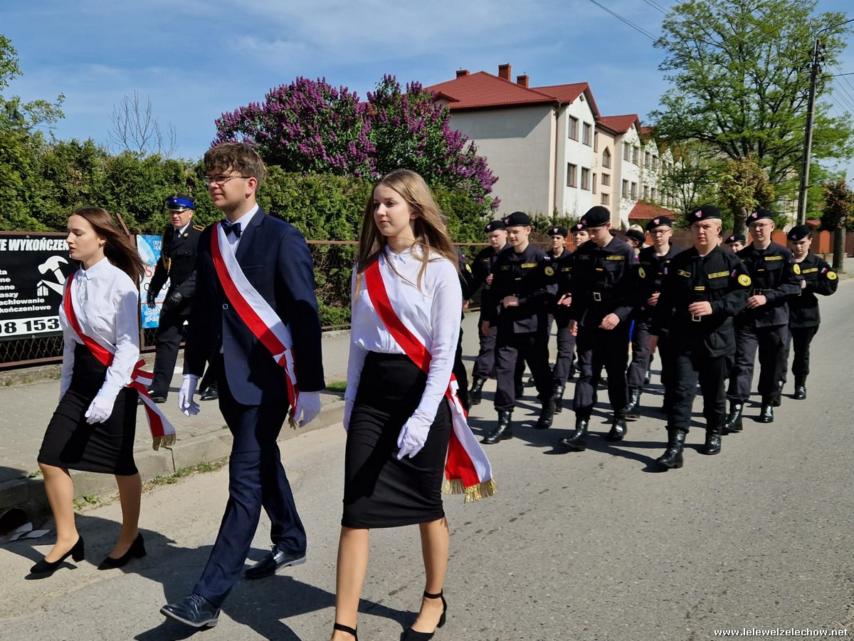Poczet sznanarowy oraz kadeci grupy strażackiej uczestniczyli w Mszy św. a następnie przemaszerowali pod pomnik Konstytucji, gdzie delegacja mundurowych złożyła kwiaty. Wraz z zebranymi uczestniczyli również w uroczystości poświęcenia Izby Pamięci.
