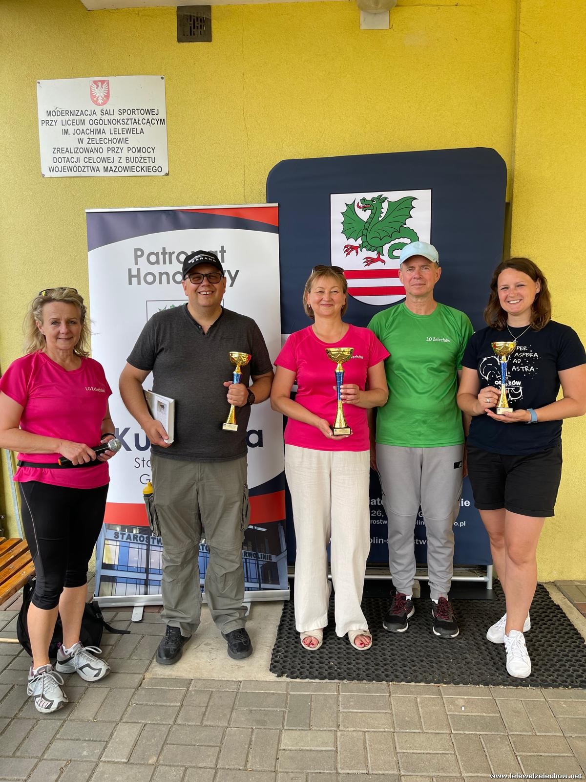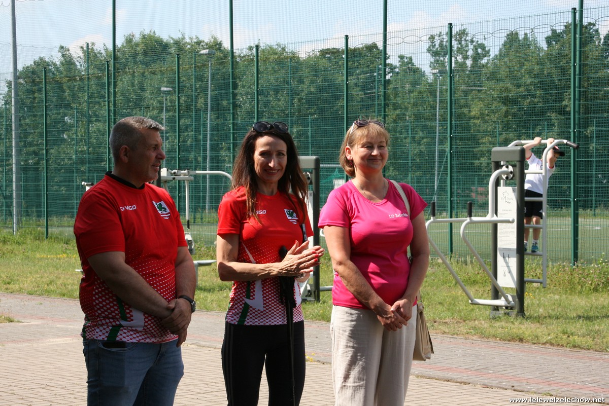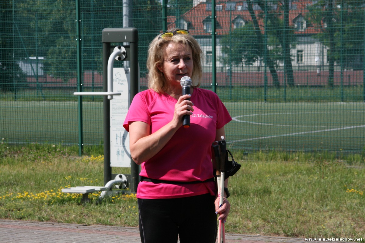 Uczestników rajdu powitali i poprowadzili na trasę : Starosta Powiatu Garwolińskiego - Pani Iwona Kurowska, Wicestarosta Powiatu Garwolińskiego – Pan Mirosław Walicki oraz dyrektor Liceum Ogólnokształcącego w Żelechowie - Pani Sylwia Tomaszek. Przed marszem odbył się również krótki pokaz prawidłowej techniki marszu z kijami przeprowadzony przez instruktorkę nordic walkingu – Panią Joannę Włodarczyk.