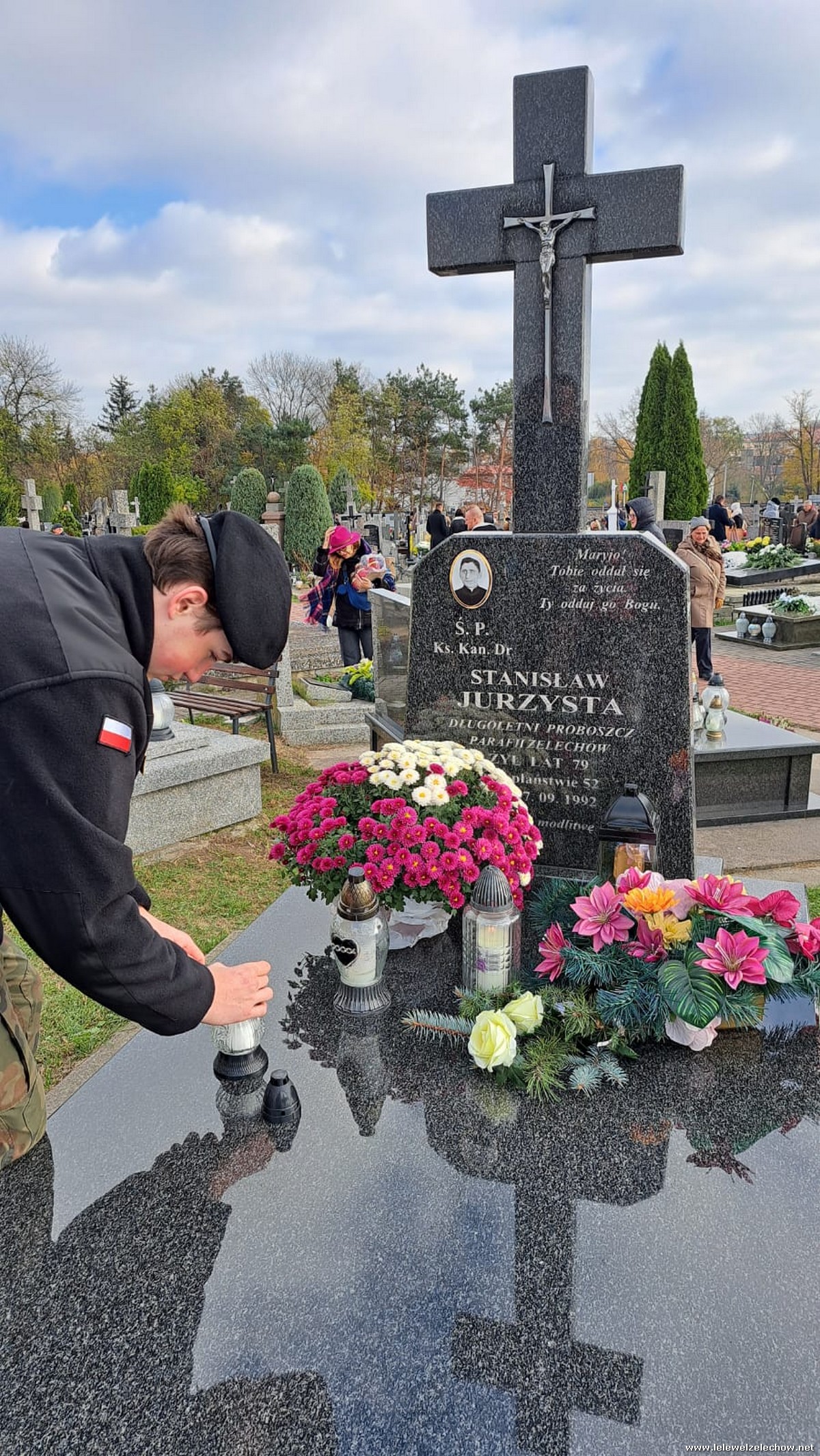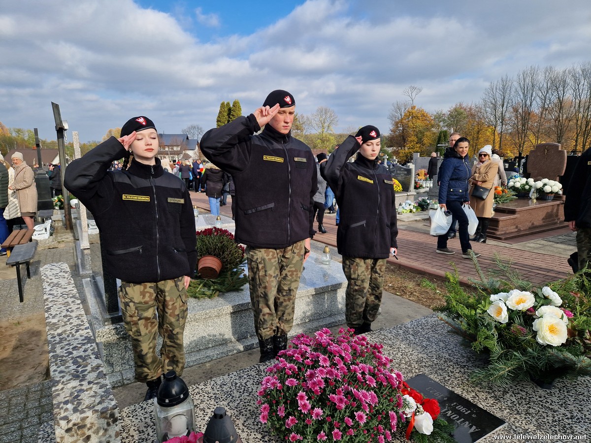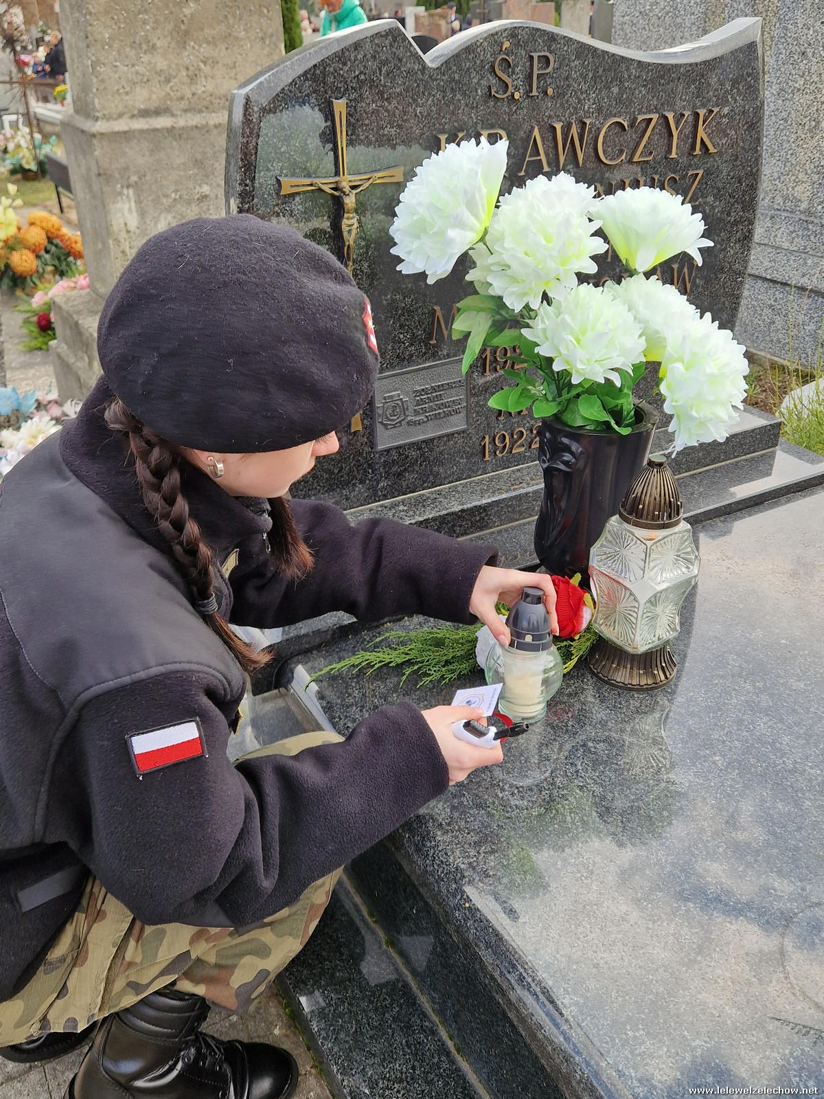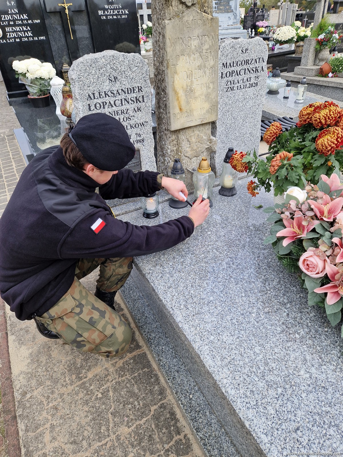 1 listopada tradycyjnie już nasi mundurowi z grupy policyjno-wojskowej klas drugich pełnili honorową wartę przy tablicy AK na miejscowym cmentarzu. Kadeci złożyli biało - czerwone wiązanki przed tablicą AK, a także na grobach naszych Dyrektorów - pani Antoniny Salwy oraz Władysława Opali. Zapalili również znicze. Młodzieży towarzyszyły - pani Dyrektor Sylwia Tomaszek oraz Urszula Kobielus, nauczyciel historii. Wartę mundurowych przygotował mjr Piotr Władziński.