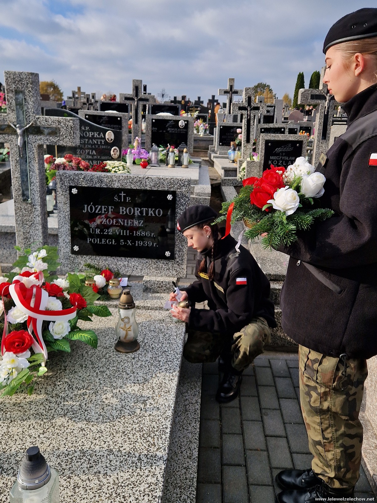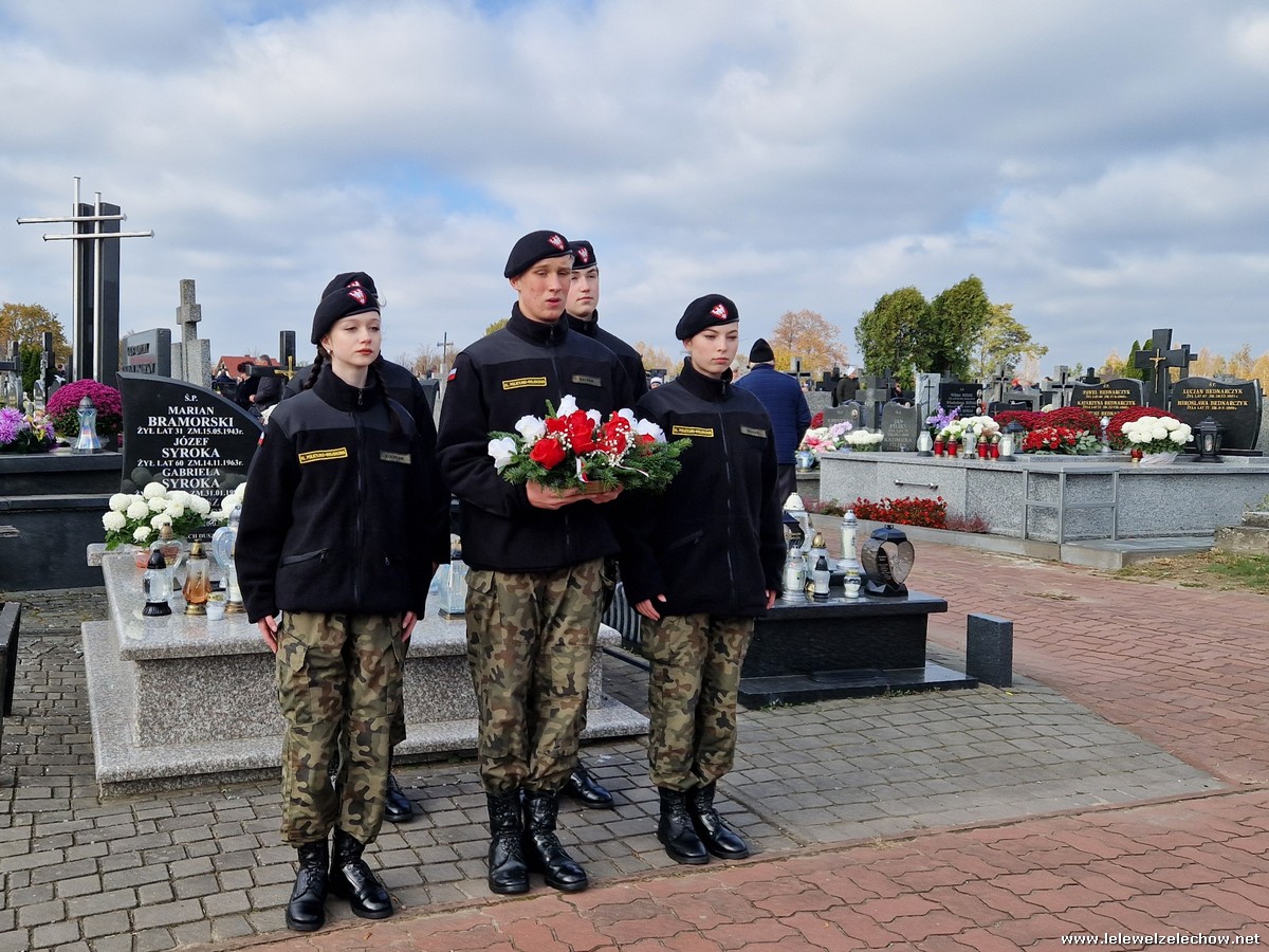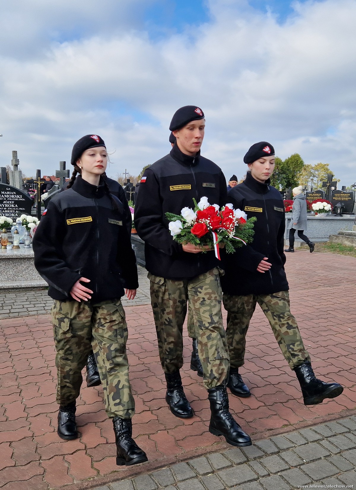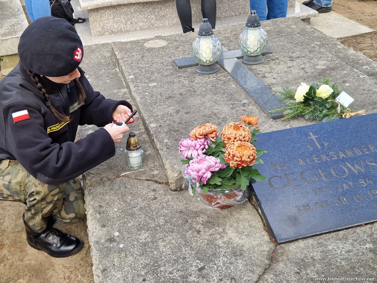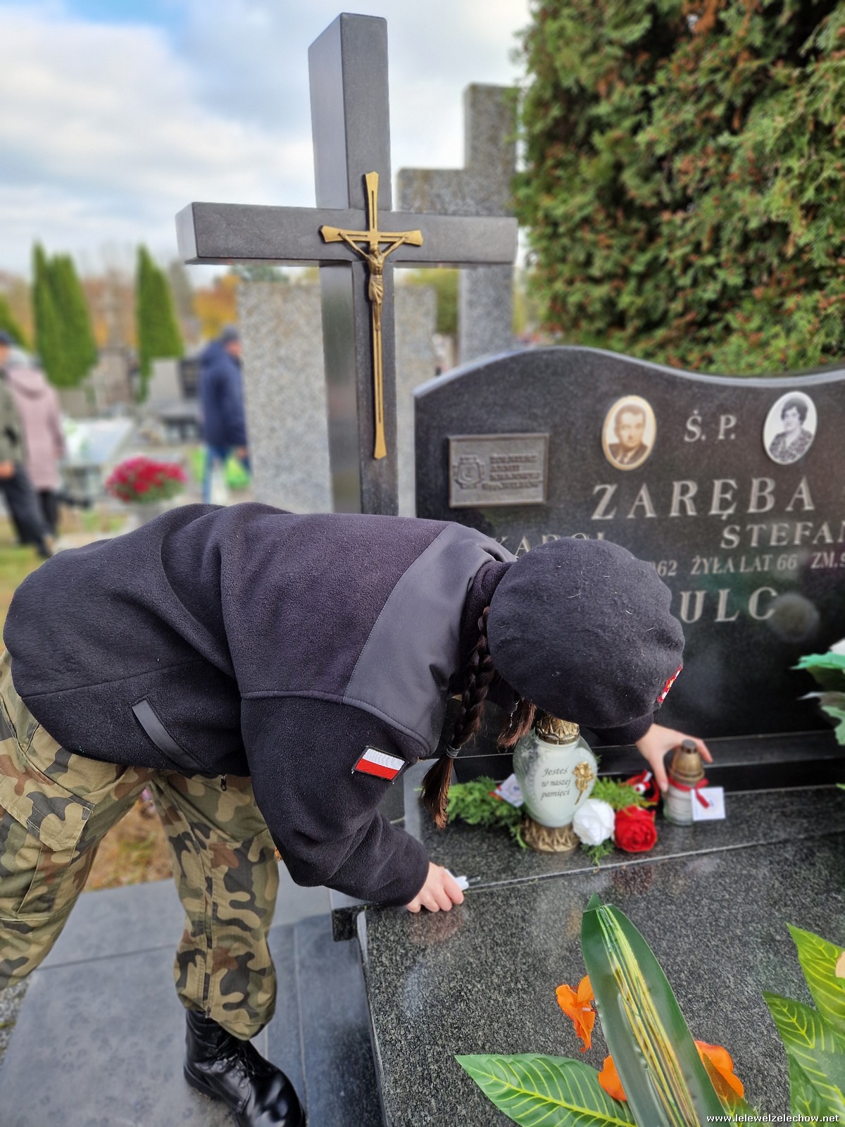 1 listopada tradycyjnie już nasi mundurowi z grupy policyjno-wojskowej klas drugich pełnili honorową wartę przy tablicy AK na miejscowym cmentarzu. Kadeci złożyli biało - czerwone wiązanki przed tablicą AK, a także na grobach naszych Dyrektorów - pani Antoniny Salwy oraz Władysława Opali. Zapalili również znicze. Młodzieży towarzyszyły - pani Dyrektor Sylwia Tomaszek oraz Urszula Kobielus, nauczyciel historii. Wartę mundurowych przygotował mjr Piotr Władziński.